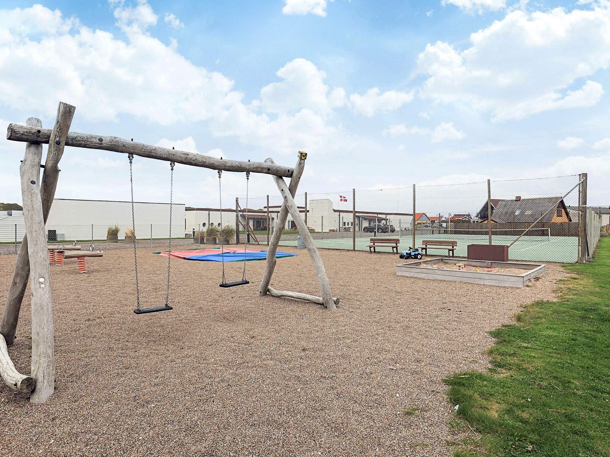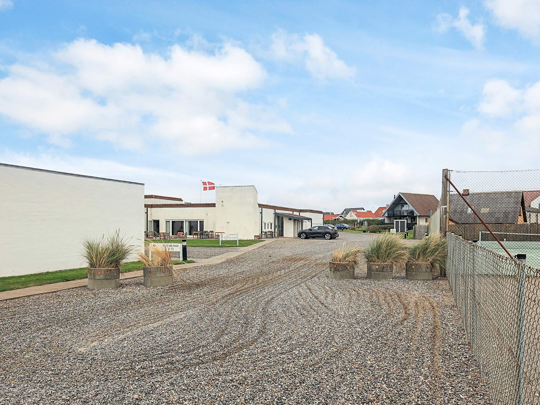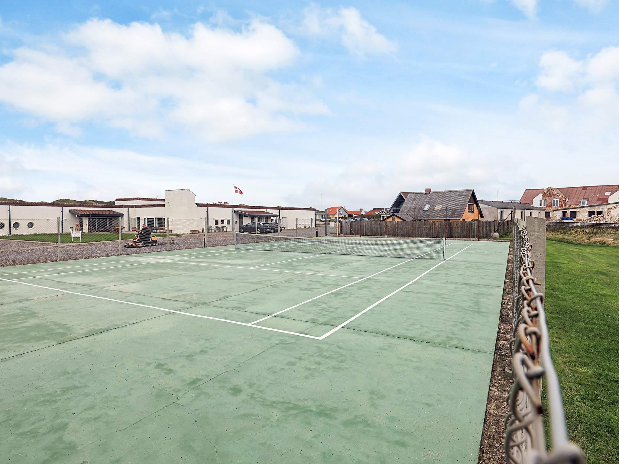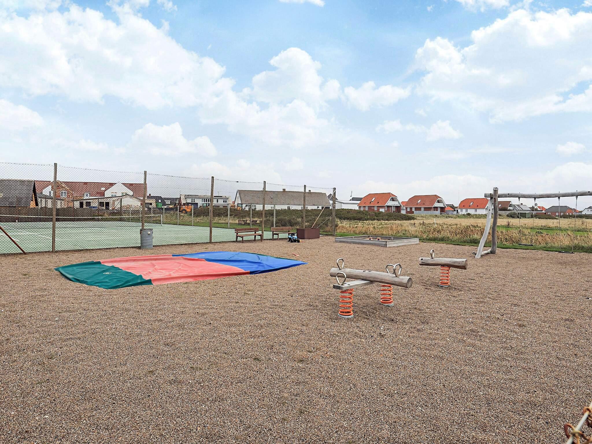Terrassen har et havebord, havestole og en grill. Fra terrassen er der udsigt over de naturlige omgivelser. Der er mange fælles aktiviteter på feriecentret, herunder gratis adgang til feriecentrets indendørs swimmingpool med separat børnebassin og sauna. Åbent fra 1. april til 22. oktober. Udendørs er der tennis, legeplads, minigolf og bålplads. Der er et fælles møntvaskeri. Der er en offentlig ladestander til elbiler på Agger Tange Feriecenter.