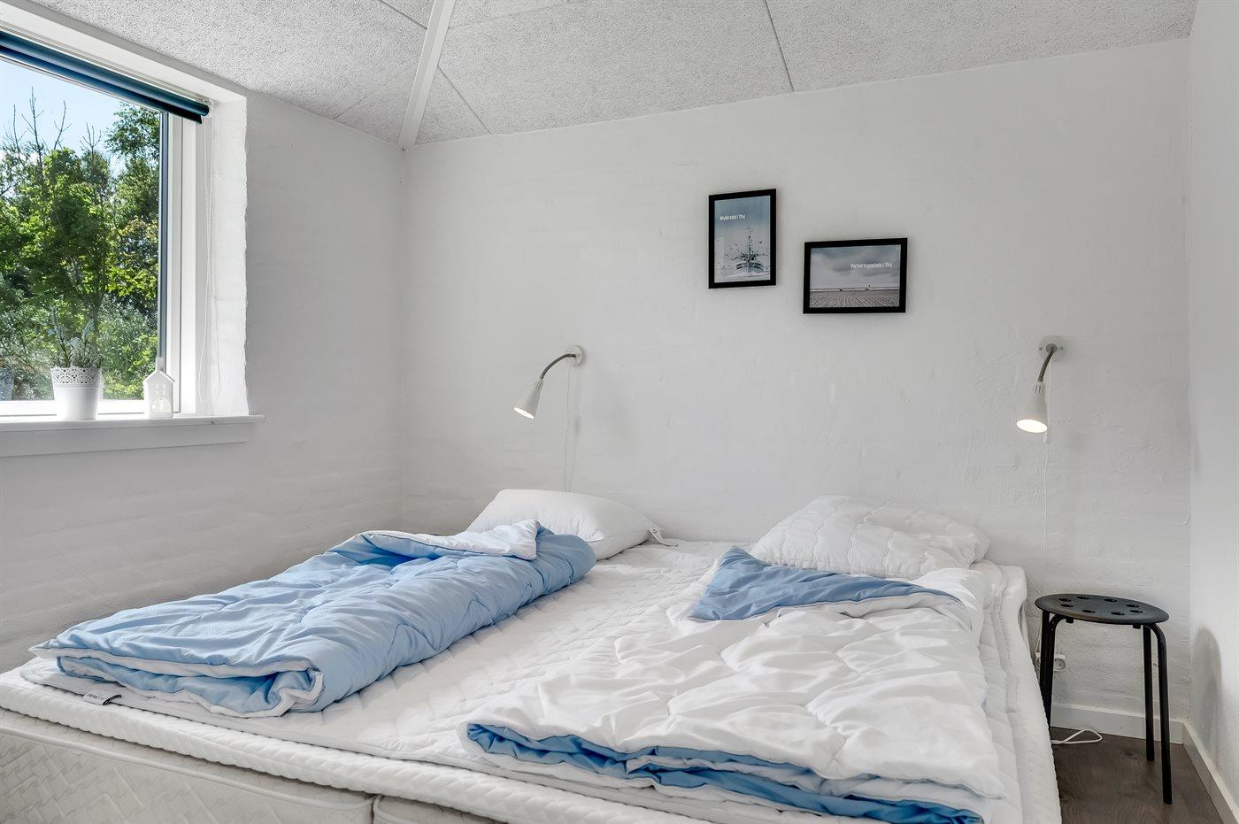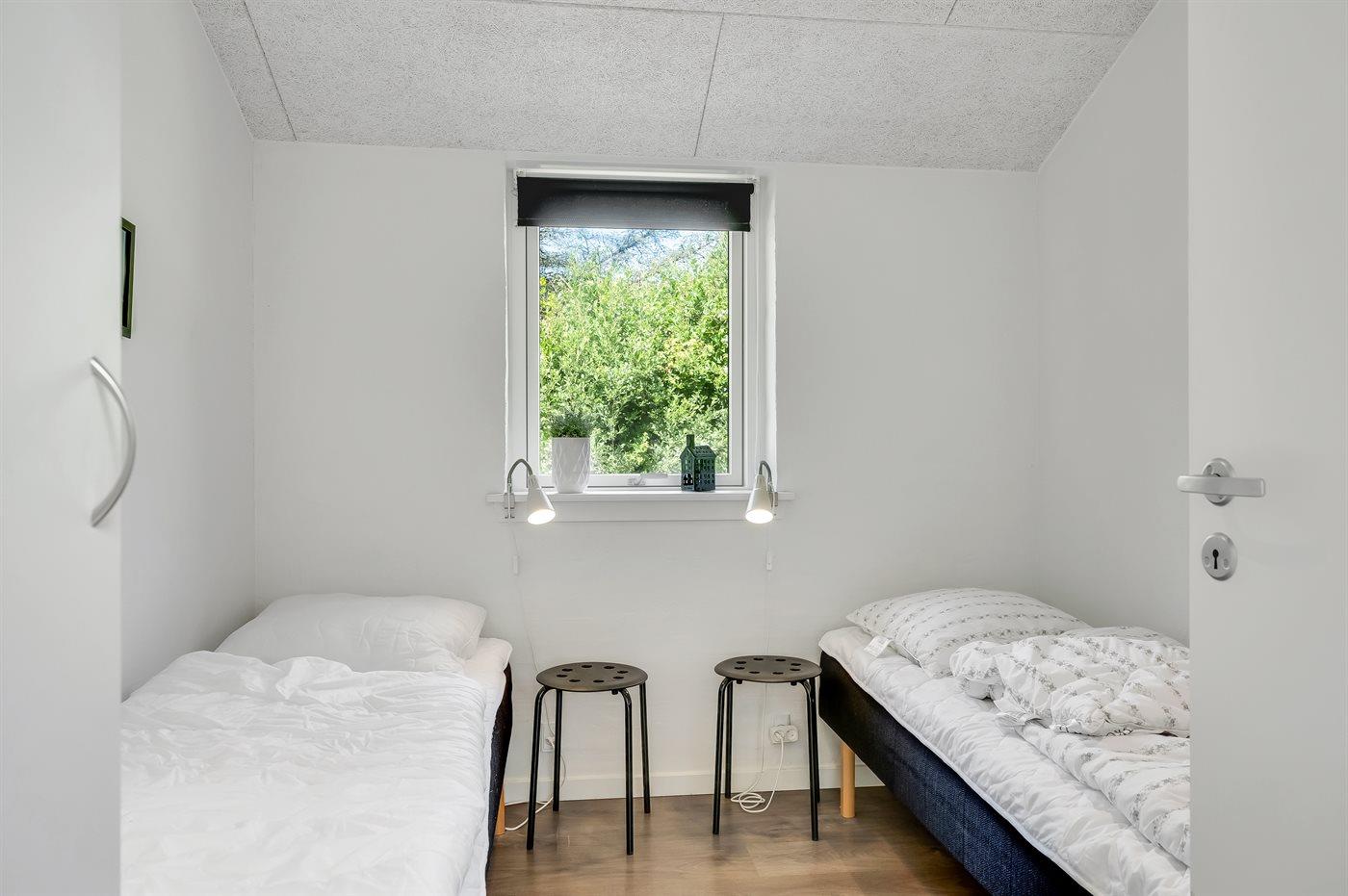 Der er i alt 5 soveværelser. Sovepladserne fordeler sig på: 4 sovepladser i dobbeltsenge. 6 sovepladser i enkeltsenge. Derudover er der 1 stk. barneseng.