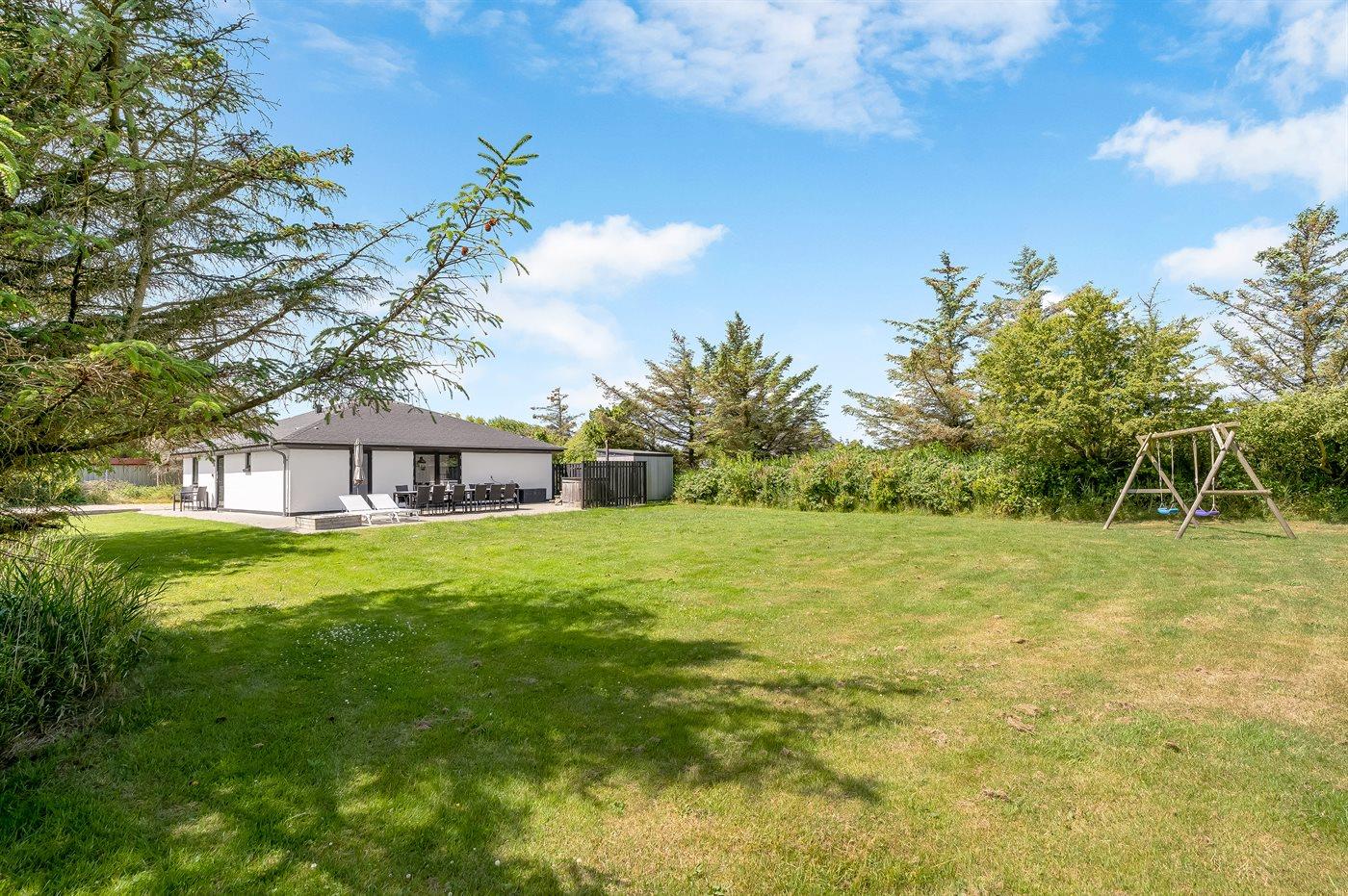 Ferieboligen er beliggende på en 1250 m² stor naturgrund. Der er 800 m til havet. Der er 500 m til fjorden. Der er en sø i en afstand af 40 m. Nærmeste forretning er beliggende i en afstand af 800 m. Der er en golfbane i en afstand af 12000 m. Til ferieboligen hører åbent terrasseareal. Gynge. Sandkasse. Grill til rådighed. Der er installeret stik til opladning af elbil. Parkering ved ferieboligen.
