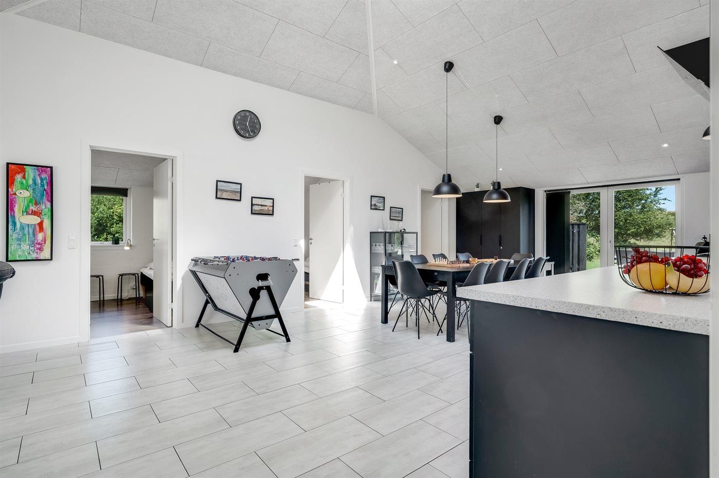 Nyere sommerhus i Agger med spa, vildmarksbad og stort køkken-alrum nær hav og fjord.