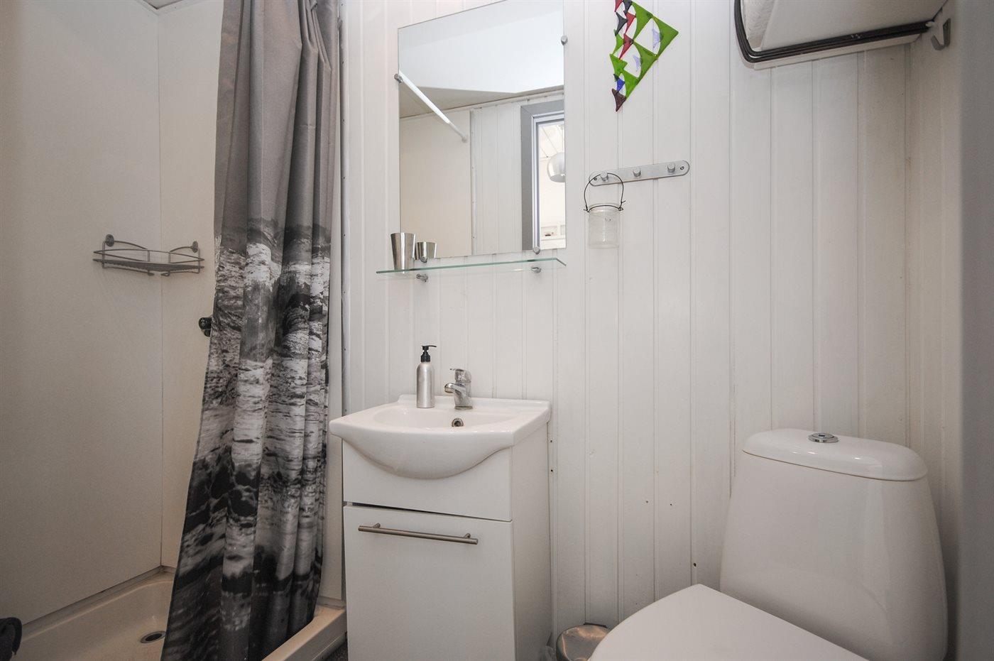 Der er 1 badeværelse med bruseniche og 1 toilet.