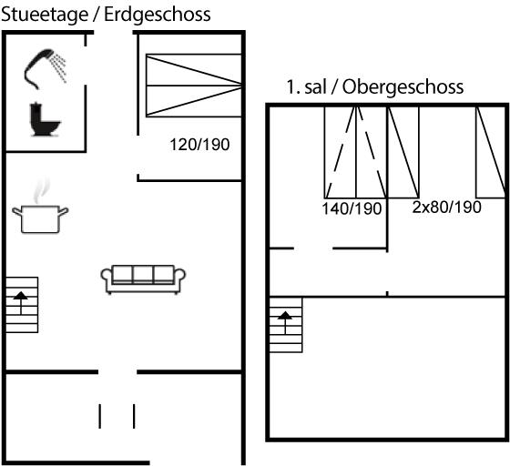 Der er i alt 3 soveværelser. Sovepladserne fordeler sig på: 2 sovepladser i dobbeltseng. 2 sovepladser i enkeltsenge. 2 sovepladser i sovesofa (dobbelt).