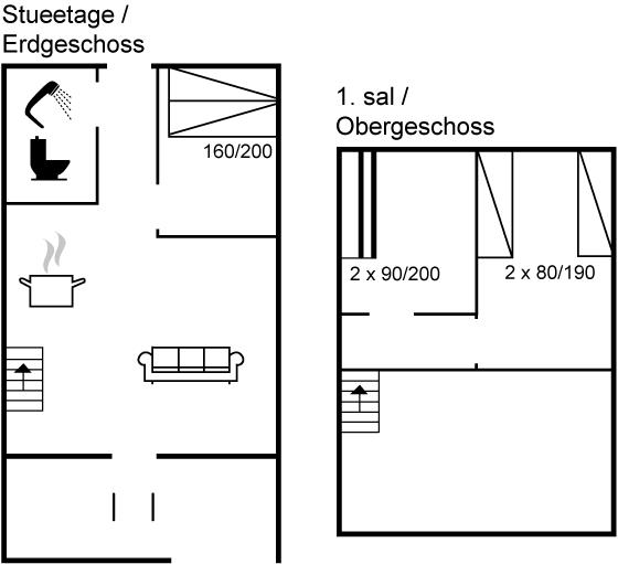 Der er i alt 3 soveværelser. Sovepladserne fordeler sig på: 2 sovepladser i dobbeltseng. 2 sovepladser i enkeltsenge. 2 sovepladser i køjeseng. Derudover er der 1 stk. barneseng.
