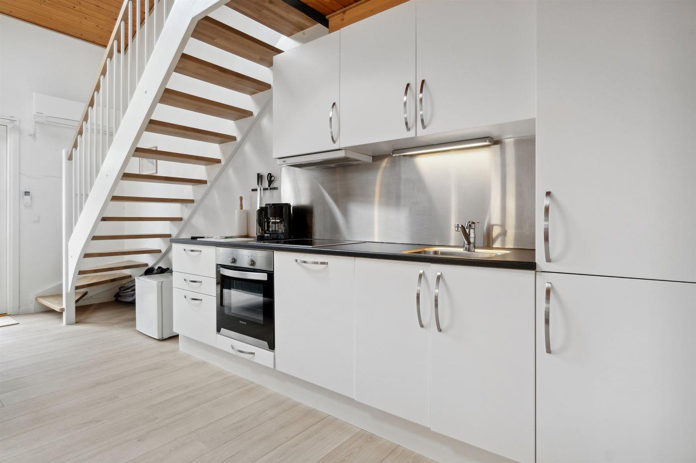 Køkkenet er udstyret med 1 køleskab. Der er 4 keramiske kogeplader, varmluftovn samt opvaskemaskine.