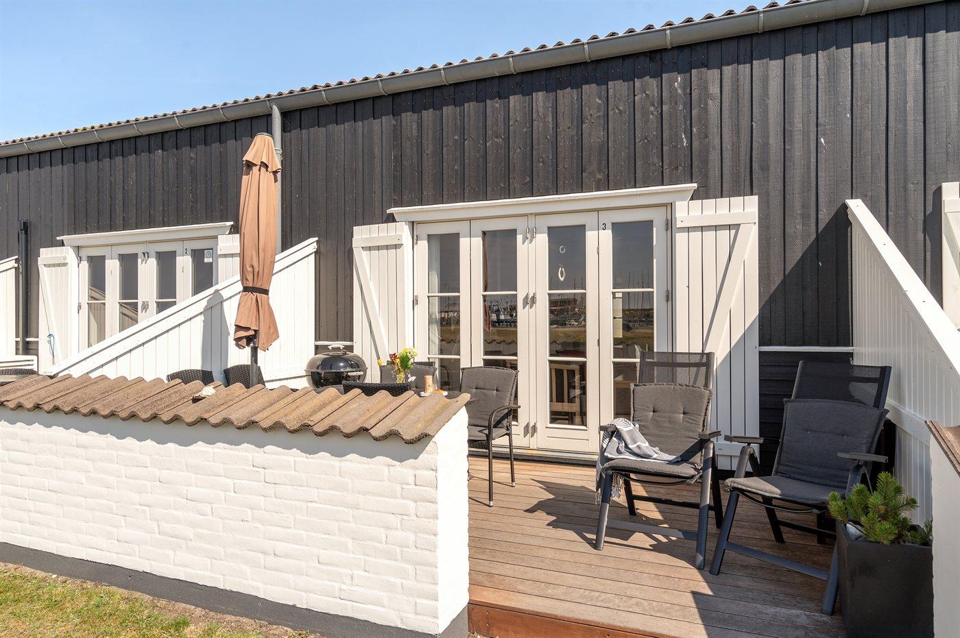 Moderne ferielejlighed i Agger Havn Feriecenter med pool og fjordudsigt.