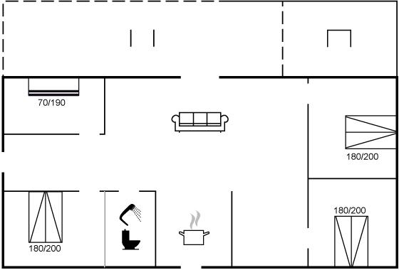 Der er i alt 4 soveværelser. Sovepladserne fordeler sig på: 6 sovepladser i dobbeltsenge. 2 sovepladser i køjeseng.