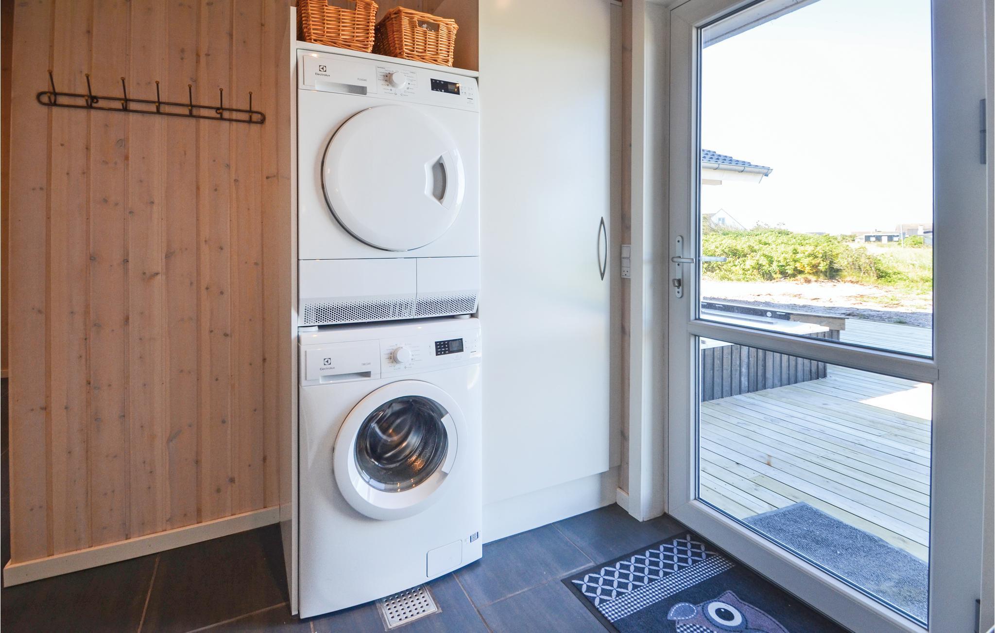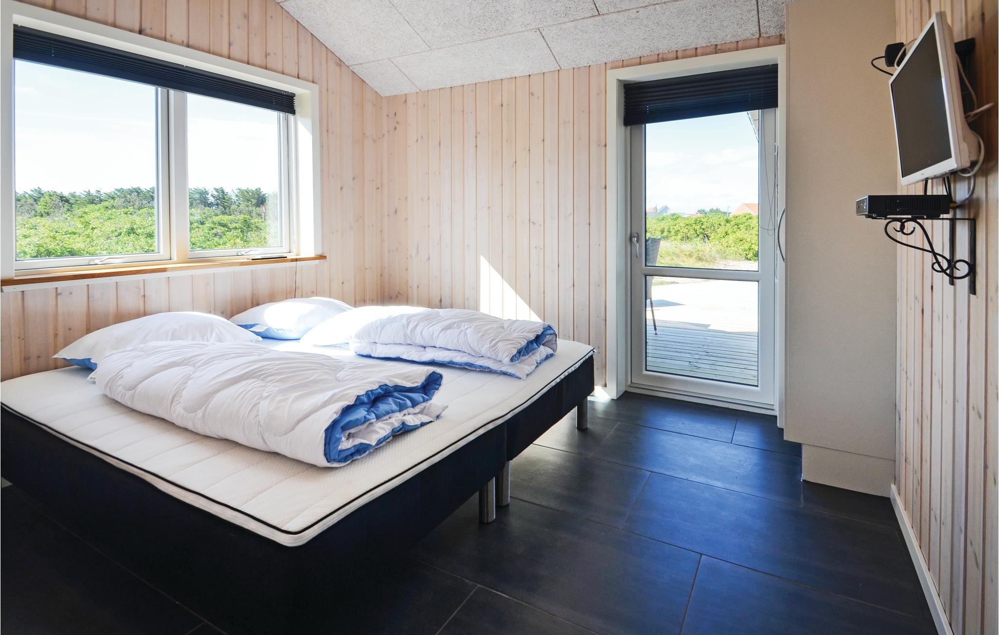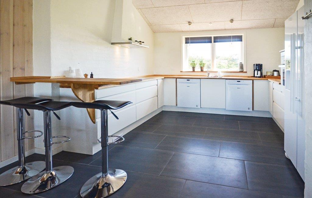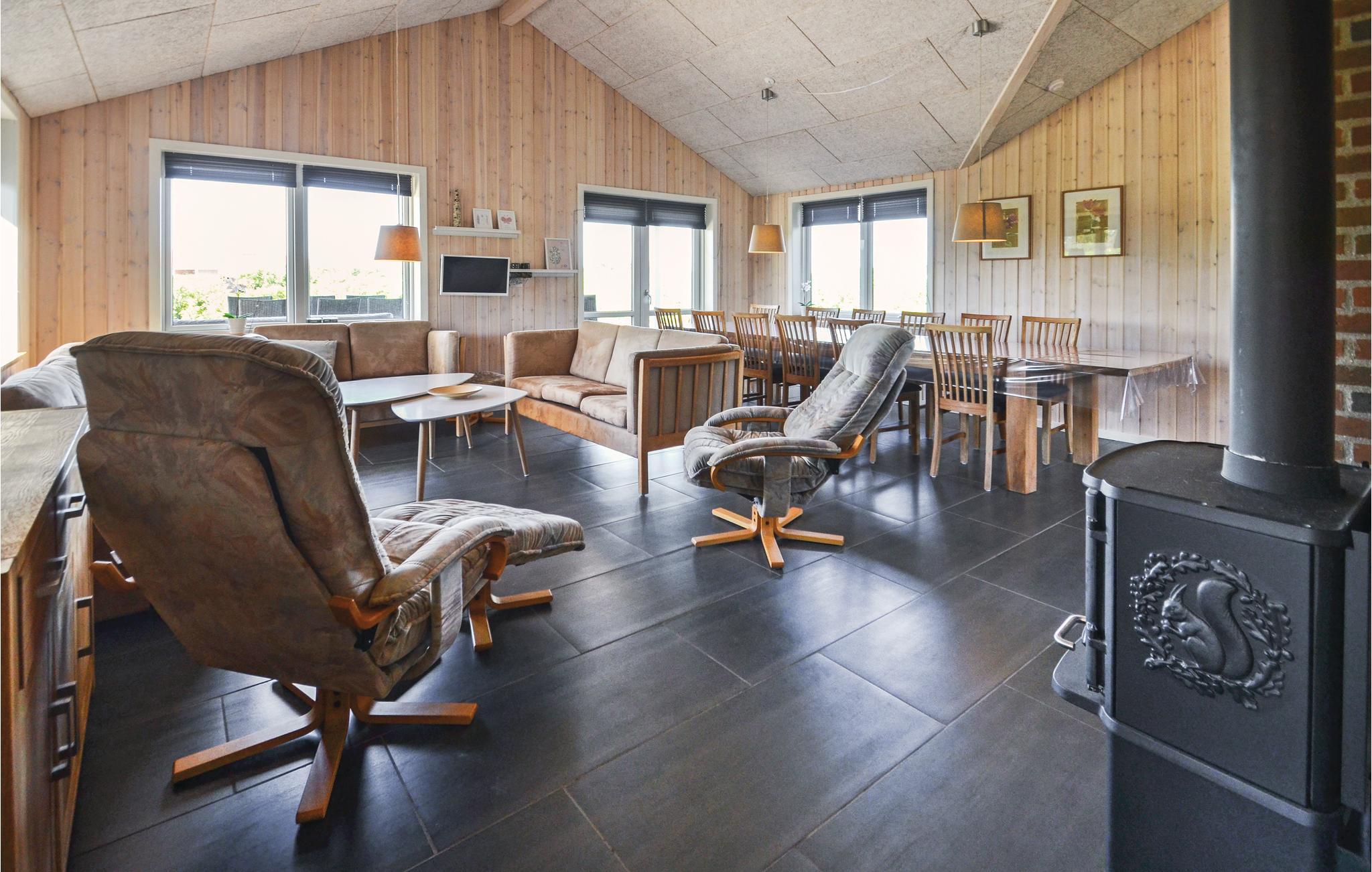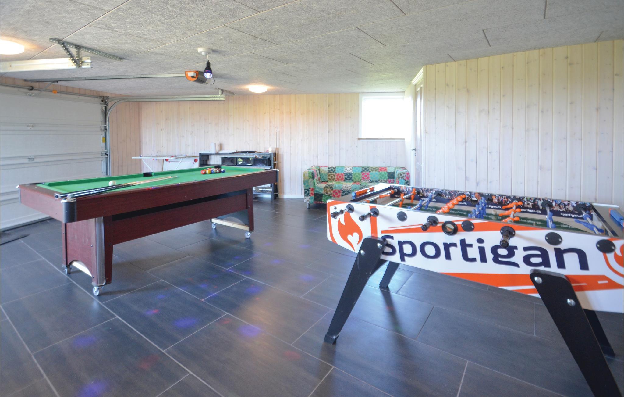 Dette feriehus er ideelt til flere familier eller en stor gruppe venner, der ønsker at opleve den jyske vestkyst sammen. Den rummelige stue og spisestue med store vinduer, lyse træpaneler og moderne klinkegulve skaber en indbydende atmosfære. Læn jer tilbage i de komfortable sofaer og nyd udsigten over det omkringliggende landskab. Tilbered jeres måltider i det åbne køkken, som tilbyder rigelig plads til at lave mad sammen takket være de store arbejdsflader, moderne apparater og morgenmadsbar. Læn jer tilbage i den hyggelige opholdsstue foran brændeovnen eller brug det store spisebord til aftener med hele familien. Nyd sjove timer i spillerummet med poolbord og bordfodboldbord. Læn jer tilbage i det veludstyrede badeværelse med spabad efter en lang dag på stranden.