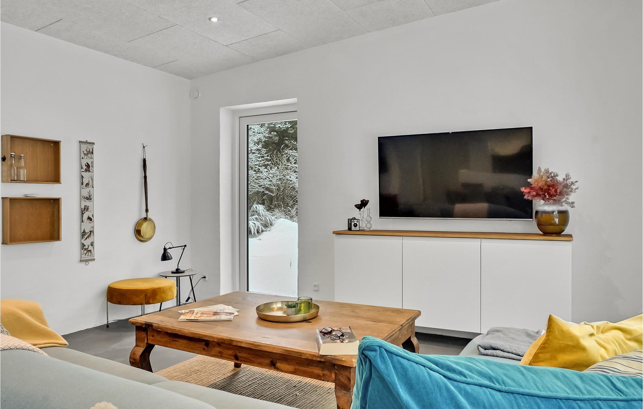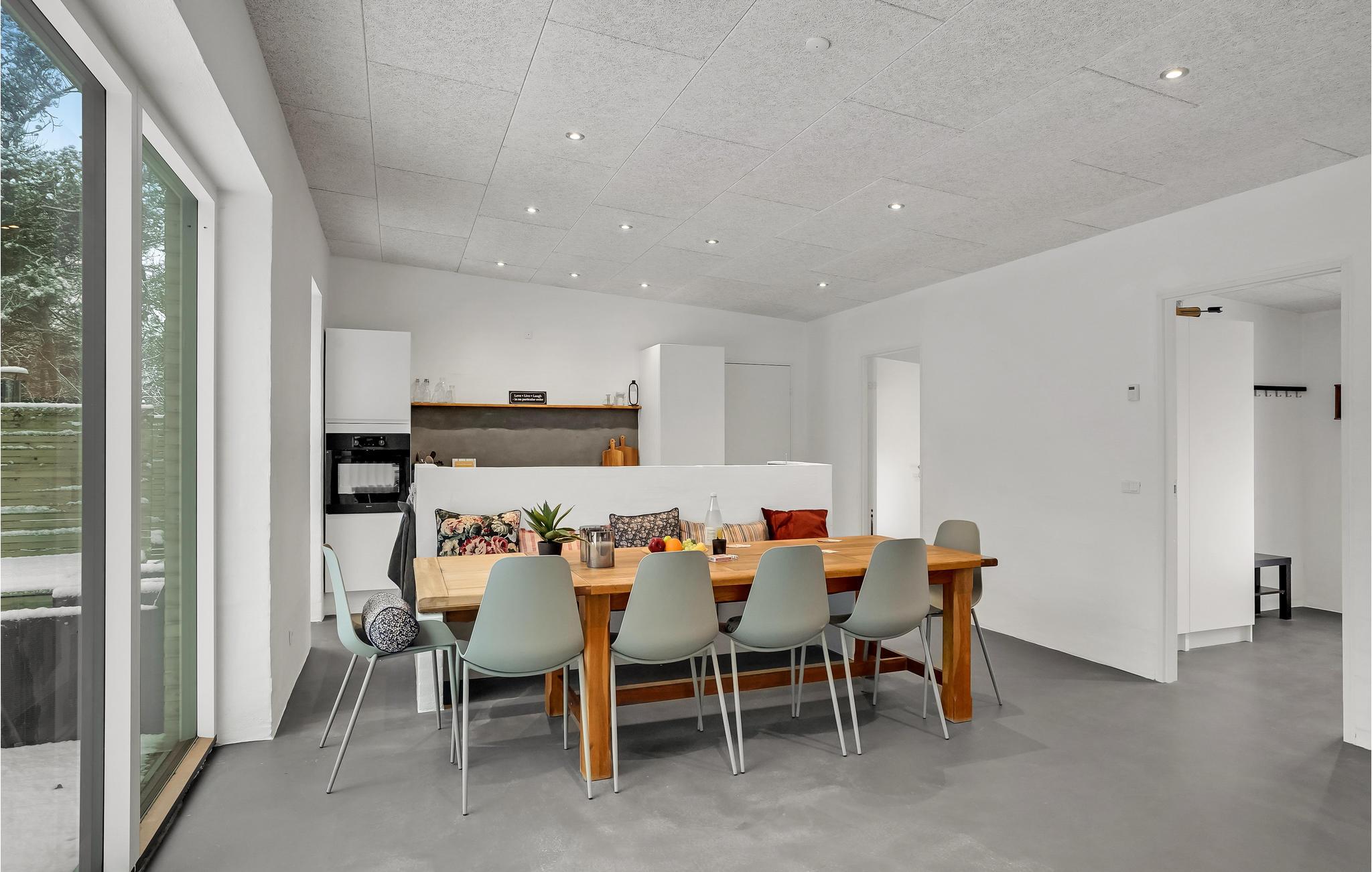 Velkommen til dette familievenlige og hjemlige sommerhus, der tilbyder jeres store familie et afslappende ophold. I den skønne stue, som er fyldt med naturligt lys fra de store vinduespartier, kan I nyde hinandens selskab fuldt ud. Efter aktive dage i Nationalpark Thy kan I svinge grydeskeerne sammen om aftenen, spille kort ved spisebordet eller lægge fødderne op i sofaen og se en god film. Både om sommeren og om vinteren kan I nyde terrassen og haven. I de varmere måneder kan I indtage jeres måltider på træterrassen og derefter se jeres børn spille volleyball. I kan også nyde ren afslapning og idyl i vildmarksbadet under stjernehimlen. Om vinteren er det skønt at bygge snemænd med børnene i løbet af dagen og nyde den friske luft.