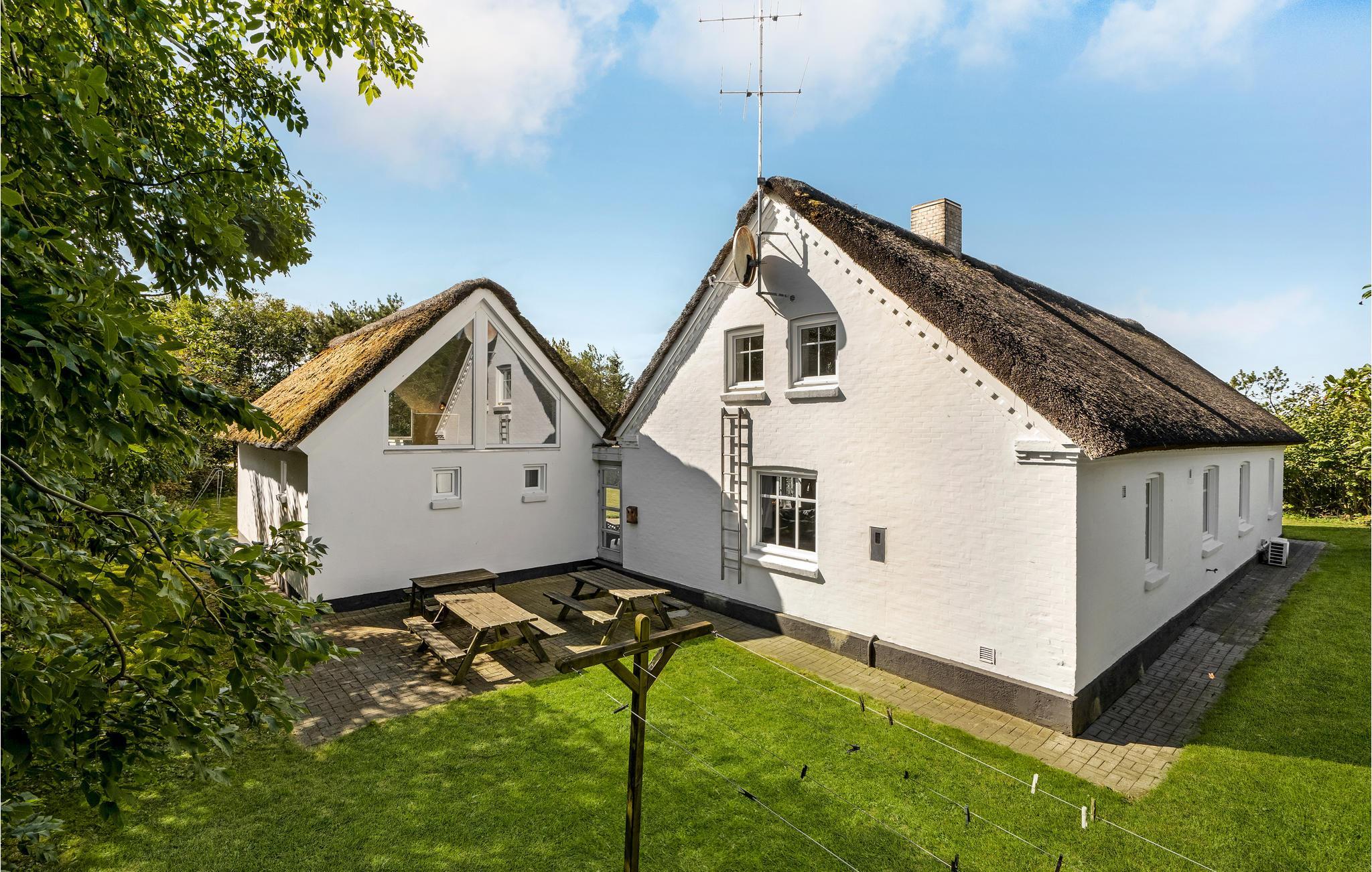 Velkommen til dette skønne stråtækte landhus i Agger. Det rummelige hus har masser af plads til en stor familie eller to vennefamilier, der holder ferie sammen. Her er der noget til alle aldre. Nyd tiden sammen i den store stue, hvor I kan lave mad, spise, lade børnene lege og slappe af sammen efter en lang dag på farten. Der er også et stort udvalg af aktiviteter, ikke mindst det flotte poolhus med et spabad, hvor de voksne kan læne sig tilbage, mens børnene boltrer sig i det store bassin. På kølige dage kan I få varmen i saunaen, og på 1. sal kan man sætte sig til rette i alkoven.