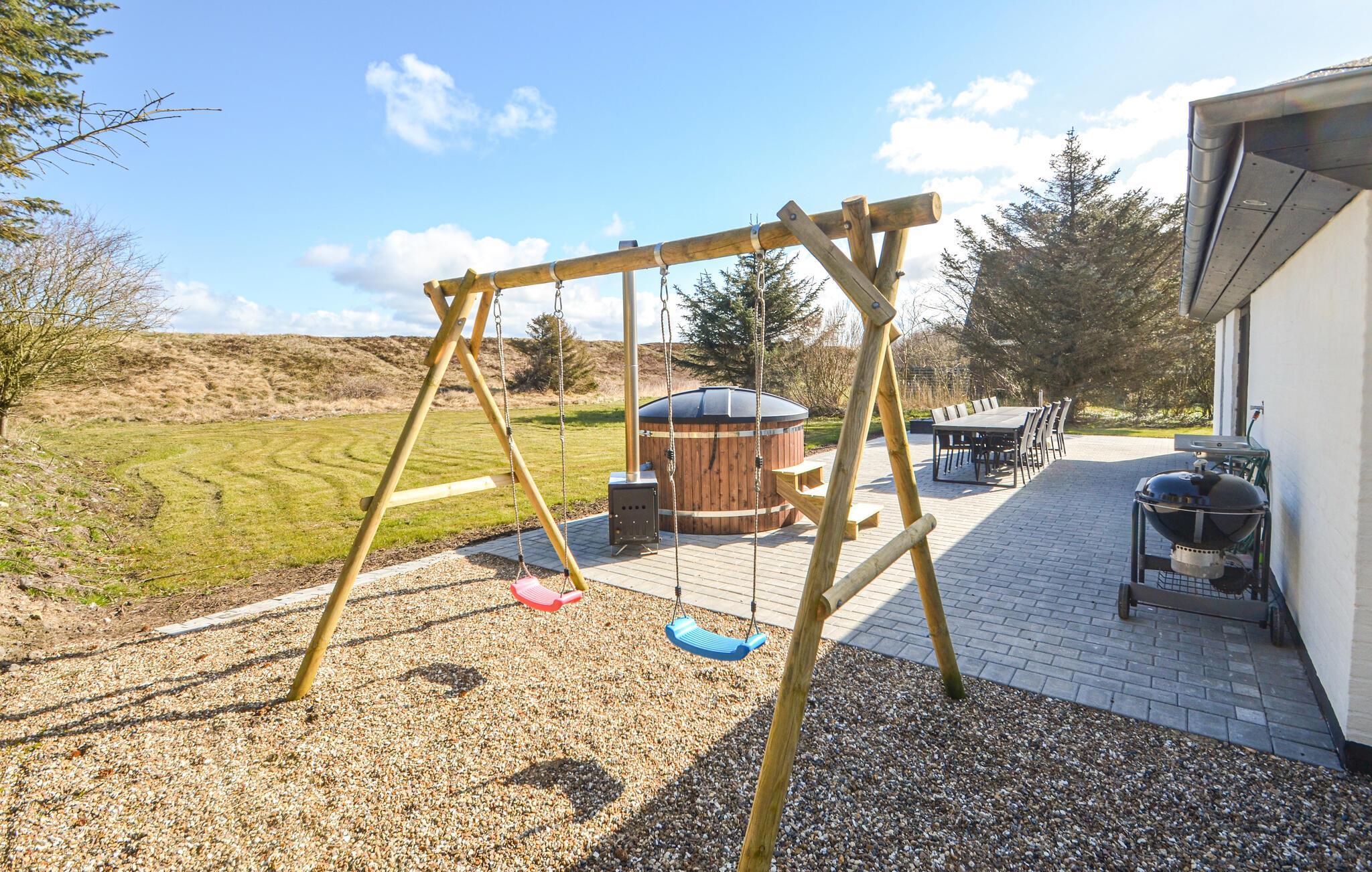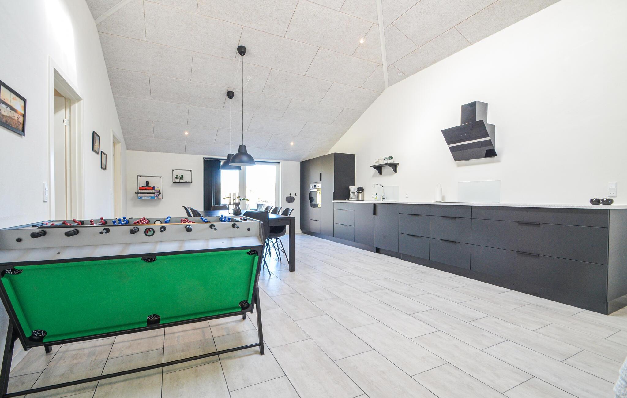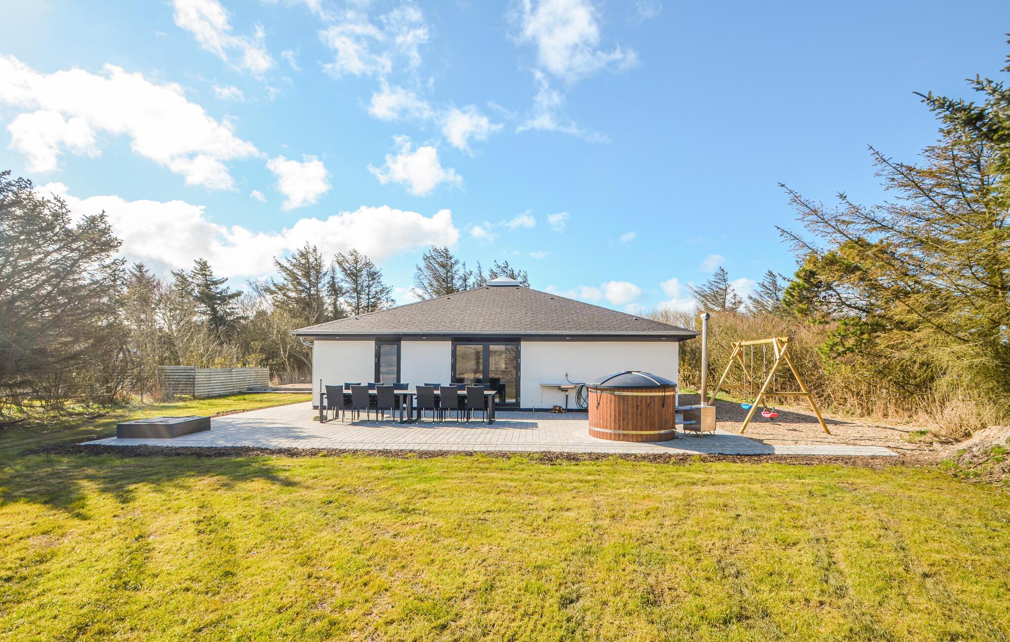 I kommer bestemt ikke til at kede jer her, huset er nemlig udstyret med bordfodbold, billard, TV og WiFi, så der er underholdning nok til mange timer. I haven er der gyngestativ og sandkasse, som familiens yngste vil elske. På terrassen kan I nemt tilberede måltiderne, der er nemlig udekøkken og grill samt havemøbler med plads til alle. På terrassen finder I også et vildmarksbad med plads til 5 personer.