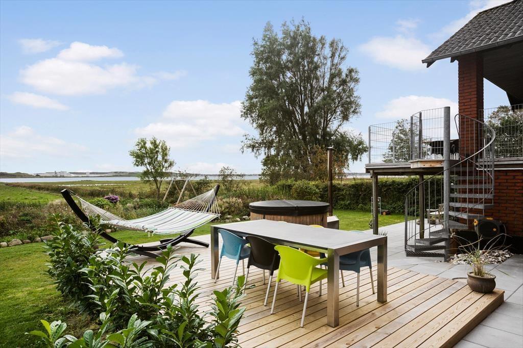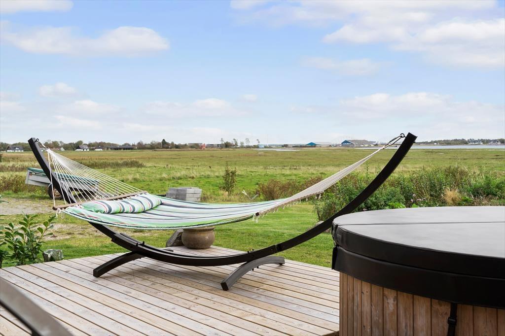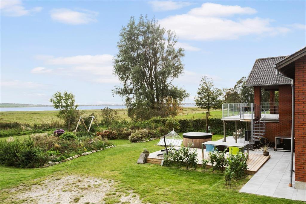 Sommerhusets udemiljø er en sand perle, hvor du kan koble af og nyde roen i naturskønne omgivelser. De rummelige terrasser giver dig mulighed for at nyde morgenkaffen, mens solen står op over fjorden, og dagen kan afsluttes med en smuk solnedgang i godt selskab. Det luksuriøse vildmarksbad er en særlig oplevelse, hvor du kan slappe af i det varme vand og lade blikket vandre over Limfjordens stille vande.