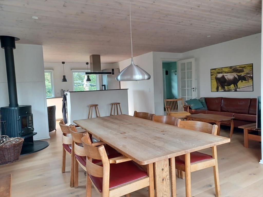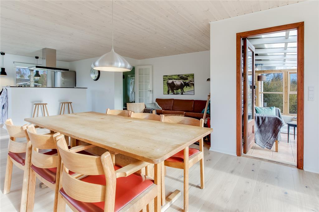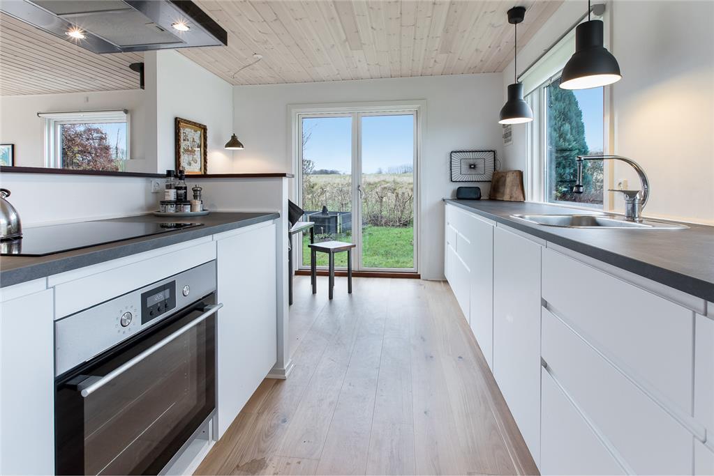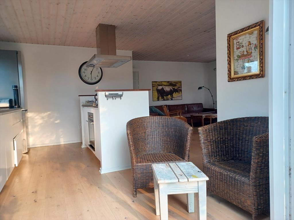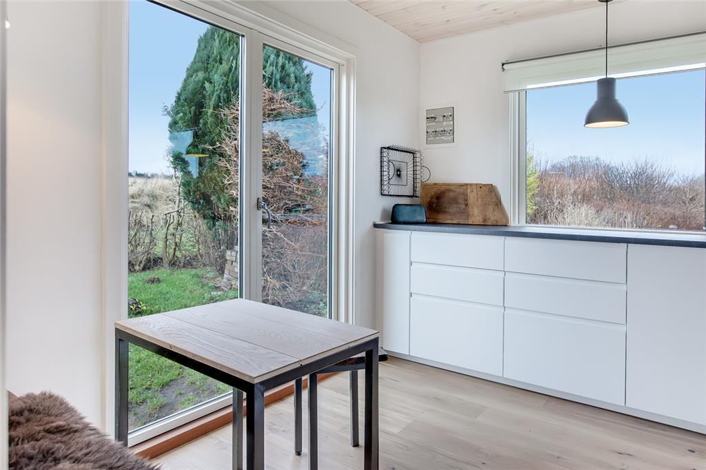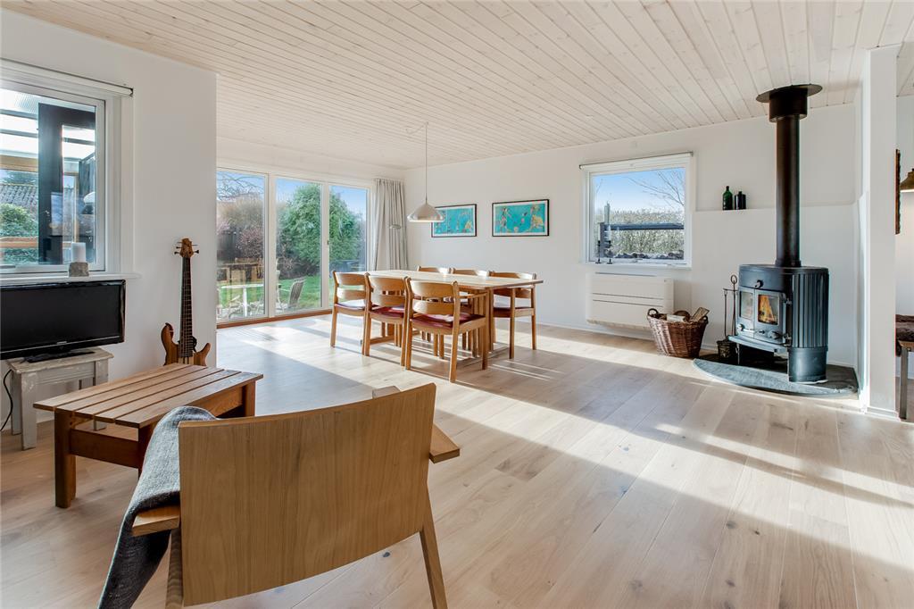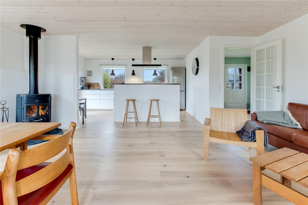 Dejligt lyst og moderne indrettet bjælkehus med skøn beliggenhed med udsigt over marker mod vest. Sommerhuset er nyrenoveret i 2017. Stuen ligger i direkte forbindelse med køkkenet og har et flot egeplankegulv. Både fra stuen og køkkenet er der direkte udgang til haven. Derudover er der stor udestue. Tre gode soverum, stor entre og badeværelse.