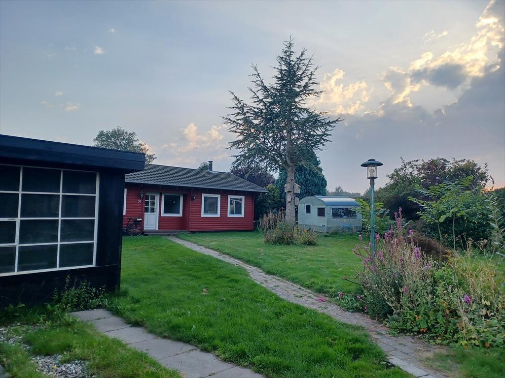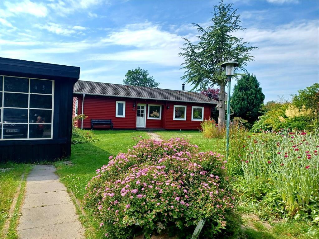 Sommerhuset ligger for enden af vejen, hvilket giver et dejligt udsyn og udsigt over markerne. Der er nyanlagt terrasse mod syd - en rigtig skøn udeplads, hvor udelivet kan nydes.