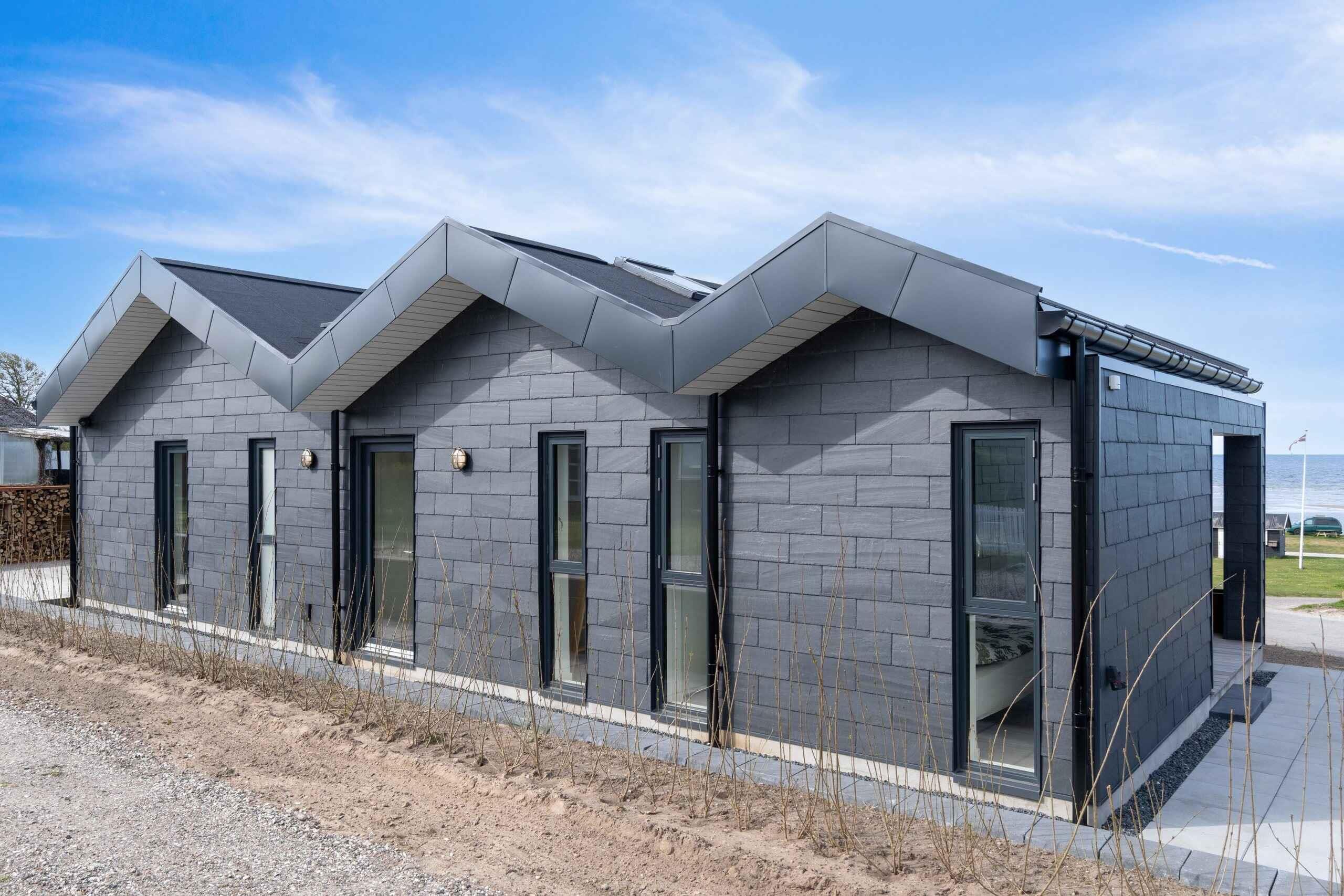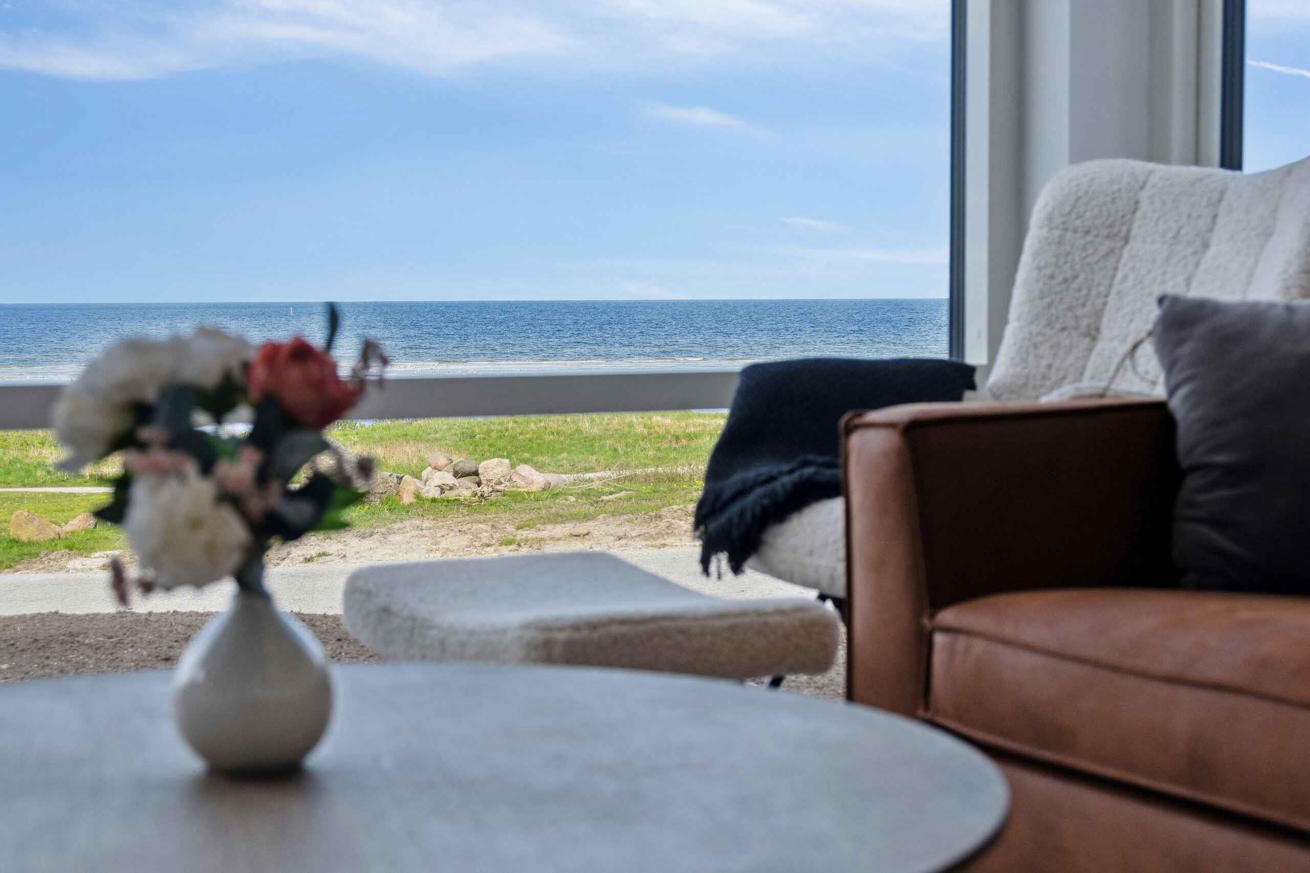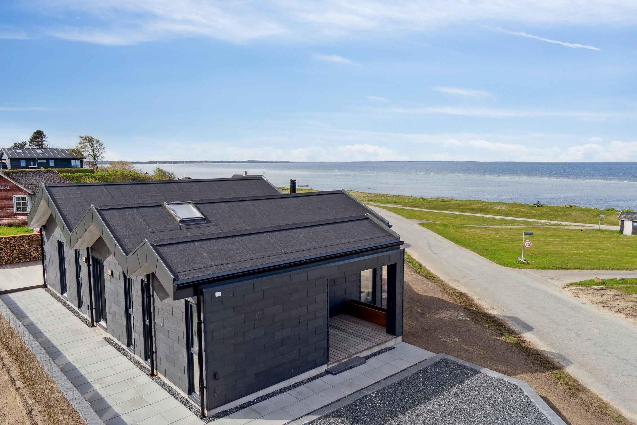 Moderne sommerhus fra 2023 med panoramaudsigt og direkte adgang til stranden ved Allingåbro.
