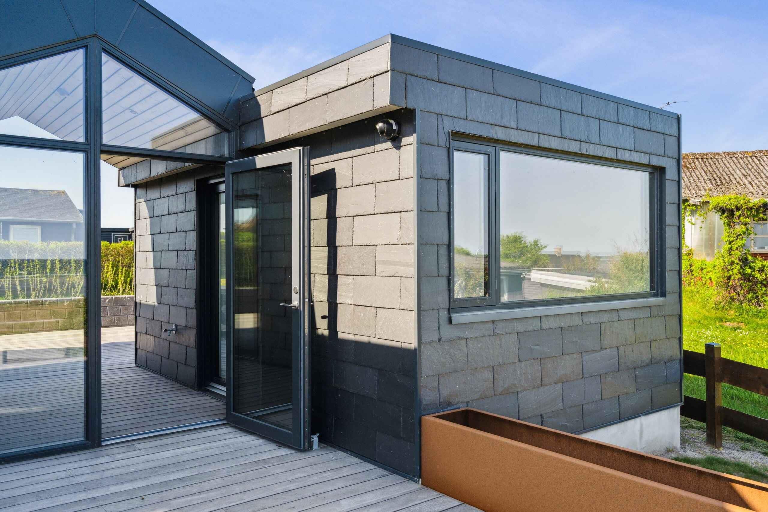 Helt ud til vandet ligger dette 120 m² sommerhus fra 2023, hvor udsigten er en del af hverdagen. Havet er det første, man ser, når man træder ind, og store vinduespartier trækker lyset og kystlandskabet helt ind i boligen. Indretningen er moderne og funktionel med tre soveværelser og en hems, der kan fungere som ekstra opholds- eller soveplads. Det åbne køkkenalrum er hjemmets naturlige samlingspunkt med god plads til fælles måltider og direkte udgang til terrassen. Den sænkede opholdsstue med brændeovn giver et roligt sted at slappe af med frit udsyn til havet. Badeværelset er praktisk indrettet med bruseniche, og et integreret anneks med eget badeværelse giver fleksibilitet til gæster eller større familier. Udelivet er centralt i oplevelsen. Flere terrasser, heraf to overdækkede, gør det muligt at finde læ hele dagen. Grunden er anlagt med god plads til afslapning og måltider under åben himmel – og stranden ligger lige foran huset. Området er ideelt for gæster, der ønsker ro og naturoplevelser i hverdagsafstand. Kysten indbyder til morgenbadning, gåture langs vandet og rolige timer med udsigt over havet. Fugleliv og skiftende vejr giver nye oplevelser året rundt. Allingåbro ligger i nærheden med indkøb, spisesteder og lokale tilbud. Djursland byder desuden på strandenge, skove og familievenlige aktiviteter inden for kort køreafstand. Samtidig er området stille og uden gennemkørende trafik. Som feriebolig fungerer huset både til korte ophold og længere perioder. Kombinationen af placeringen helt ved vandet, moderne komfort og enkel adgang til naturen giver en sjælden mulighed for et ophold med nærvær og afslapning.