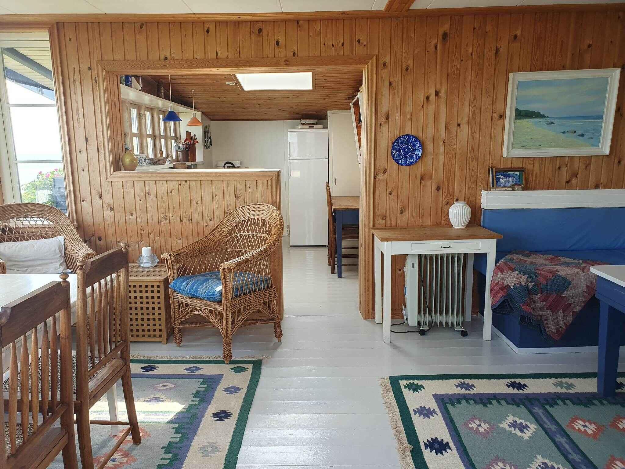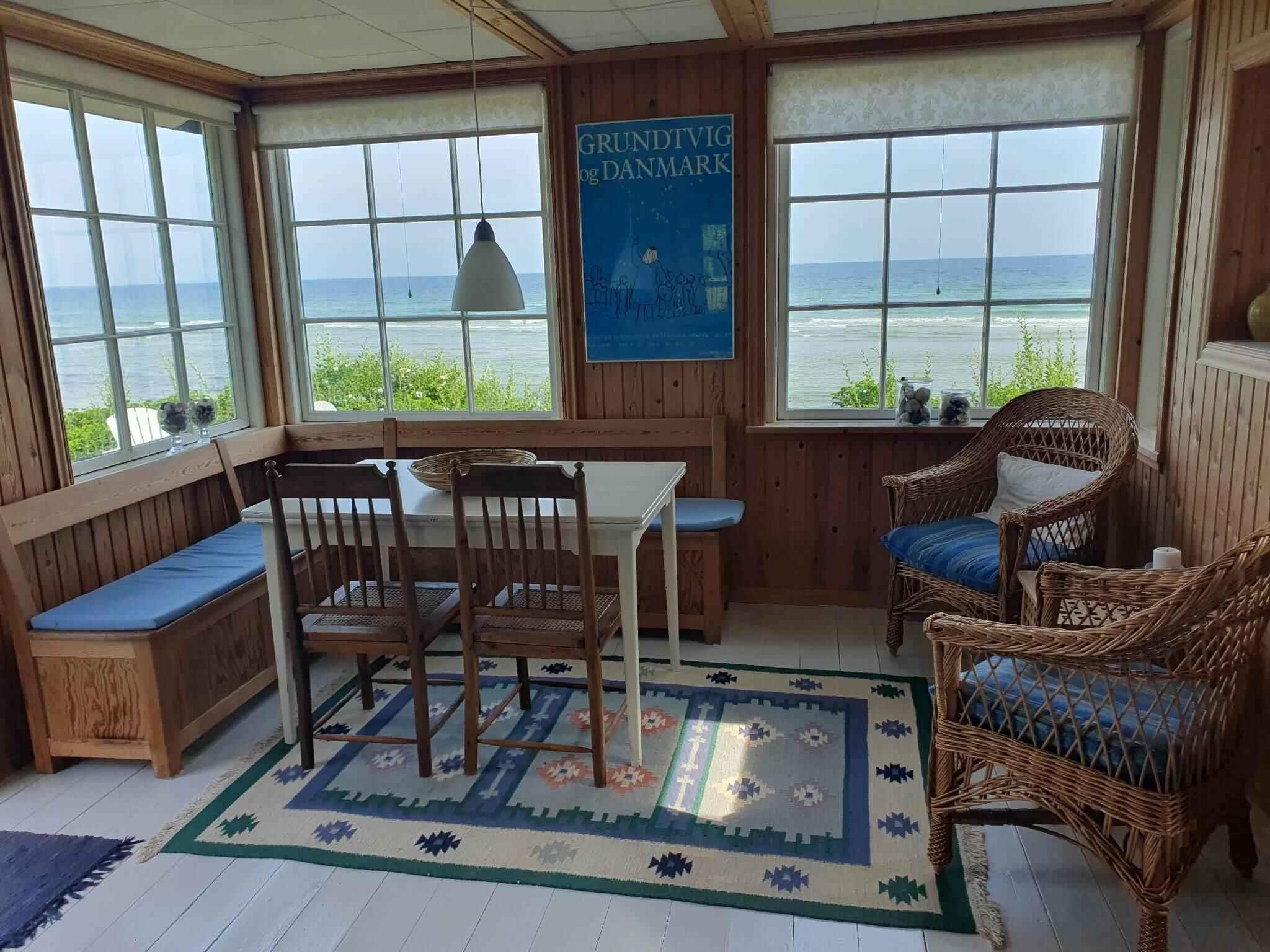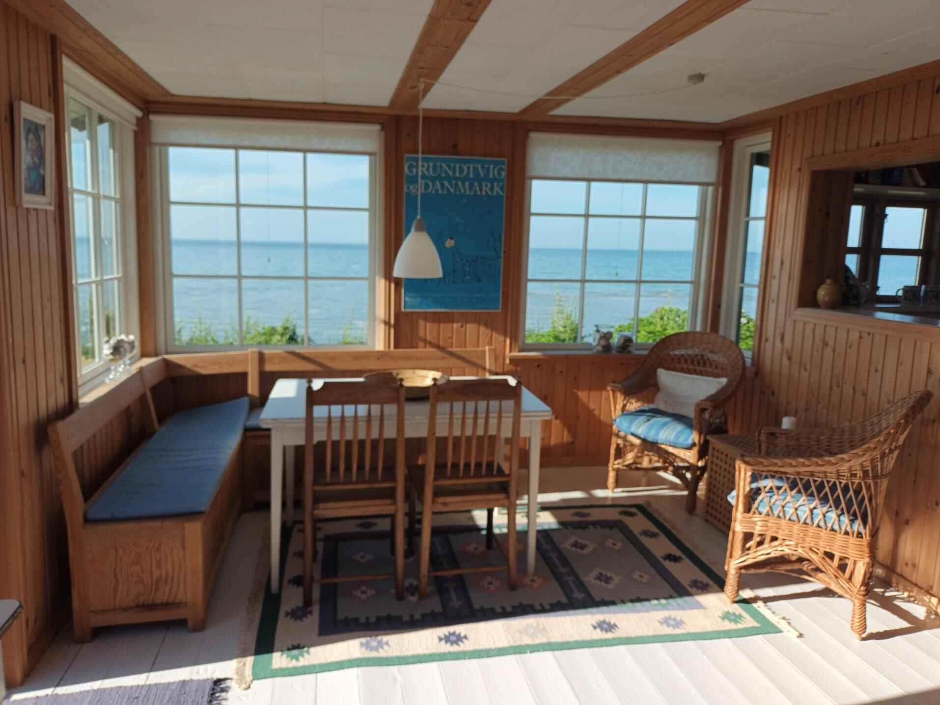 Unikt beliggende og charmerende familieferiehus, originalt men helt up-to-date, og hyggeligt indrettet med fine detaljer og en skøn panoramaudsigt over vandet. Gratis internet. Huset er indrettet i en stil og med møbler, der passer til dets oprindelse. Det er som at træde lidt tilbage i tiden til barndommens skønne somre, men alt er i orden og velfungerende. Hyggelig stue med en skøn spiseplads med vinduer ud mod vandet. Der er smart-TV, hvor man kan benytte streaming tjenester via egne abonnementer. Her kan man rigtig nyde morgenkaffen og udsigten. Der er også en dejlig hyggekrog, hvor familien kan spille spil sammen eller måske på mobilen. Køkkenet ligger i åben forbindelse med stuen og har også vinduer ud mod vandet. Huset har to soveværelser med dobbeltsenge. Det ene er helt separat med indgang fra terrassen (seng: 180x200 cm), og det andet ligger i huset med adgang til hhv wc/bad og køkken, men altså indrettet som alkove. Badeværelse med toilet og brusebad samt vaskemaskine. Udenfor er der en hyggelig overdækket terrasse og en åben terrasse – trukket lidt tilbage fra stranden, så der er læ. Der er flere hyggekroge på forskellige sider af huset. Huset ligger på Norddjurs – godt placeret i forhold til udflugter i mange retninger. Der er ca. 20 km til Randers og Randers Regnskov og ca. 40 km til Grenå og Kattegatcenteret - et stort, dansk akvarium med mere end 200 arter af havdyr - heriblandt hajer, pingviner, sæler og et hav af fisk. Der er knap 15 km fra huset til Djurs Sommerland, som måske især børn gerne vil besøge. Til Aarhus er der ca. 1 times kørsel. Aarhus byder bl.a. på Den gamle By, Kunstmuseet Aros, masser af caféer, restauranter og butikker i det hyggelige gå-gade område.