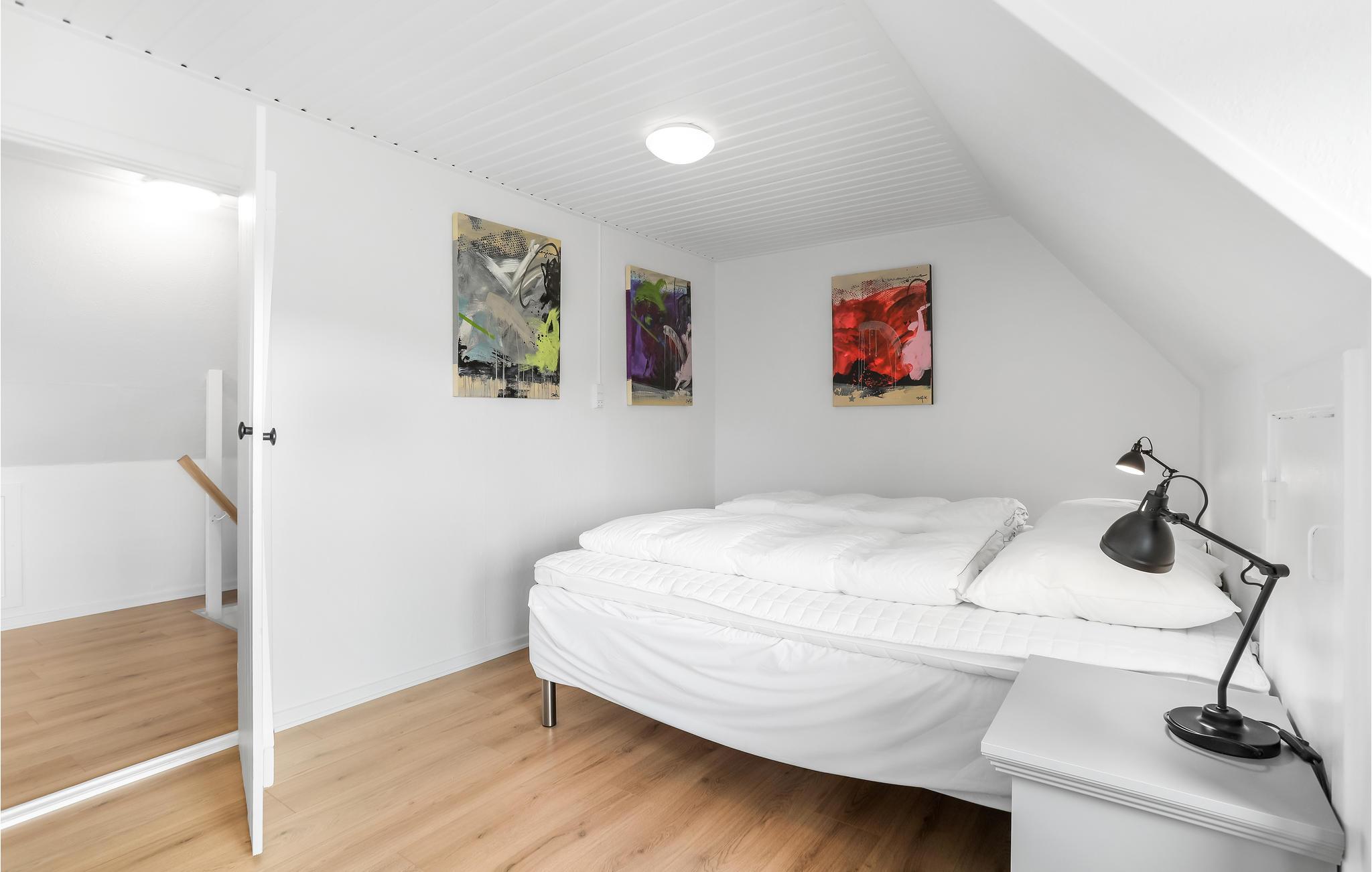 Sommerhuset har to etager og fremstår lyst og moderne. Husets hjerte er den kombinerede opholds- og spisestue i stueetagen med spiseplads, TV og stort, åbent køkken med b.la. amerikansk køleskab (inkl. stor fryser). Her er der behagelig gulvvarme, hvilket giver et behageligt indeklima. Derudover er der i stueetagen et skønt soveværelse med to enkeltsenge og havudsigt samt to gode badeværelser med gulvvarme, det ene også med badekar. På førstesalen er der tre gode soveværelser, det ene med havudsigt og de andre udsyn til grønne omgivelser. I finder en vaskemaskine og tørretumbler i bryggerset.