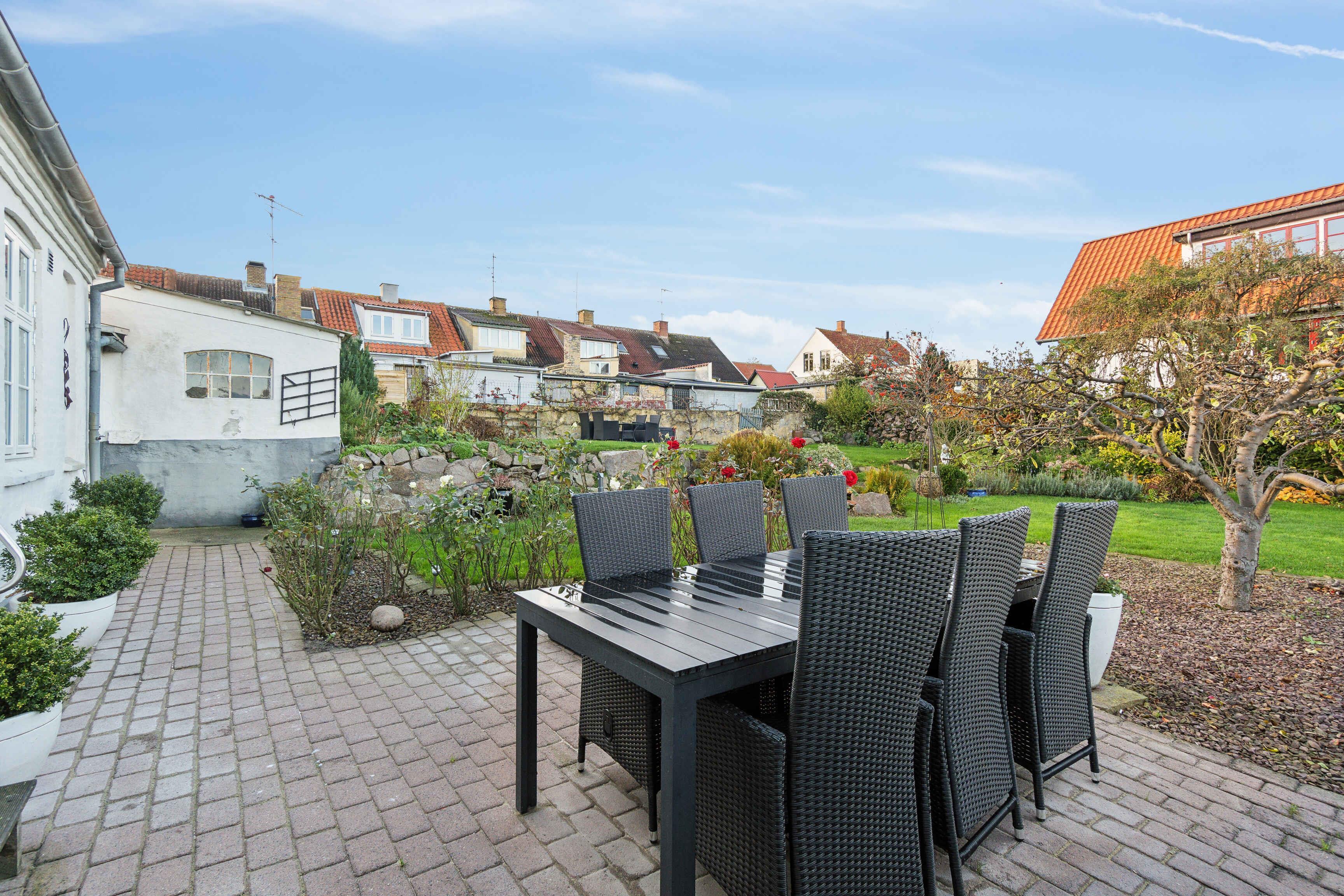 Hyggelig havnær lejlighed i Allinge-Sandvig med terrasse, have og cykelskur, perfekt til afslapning ved havet.