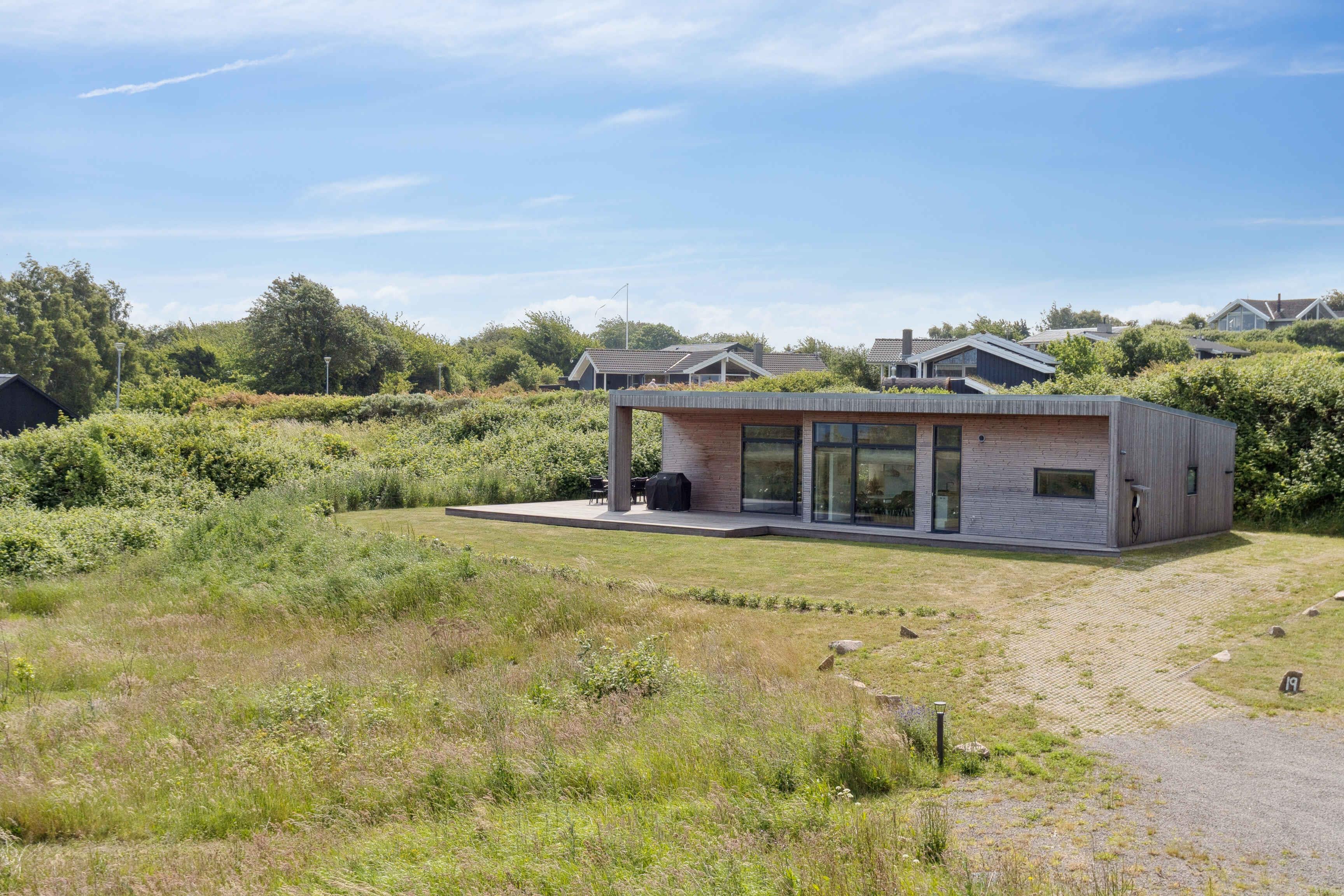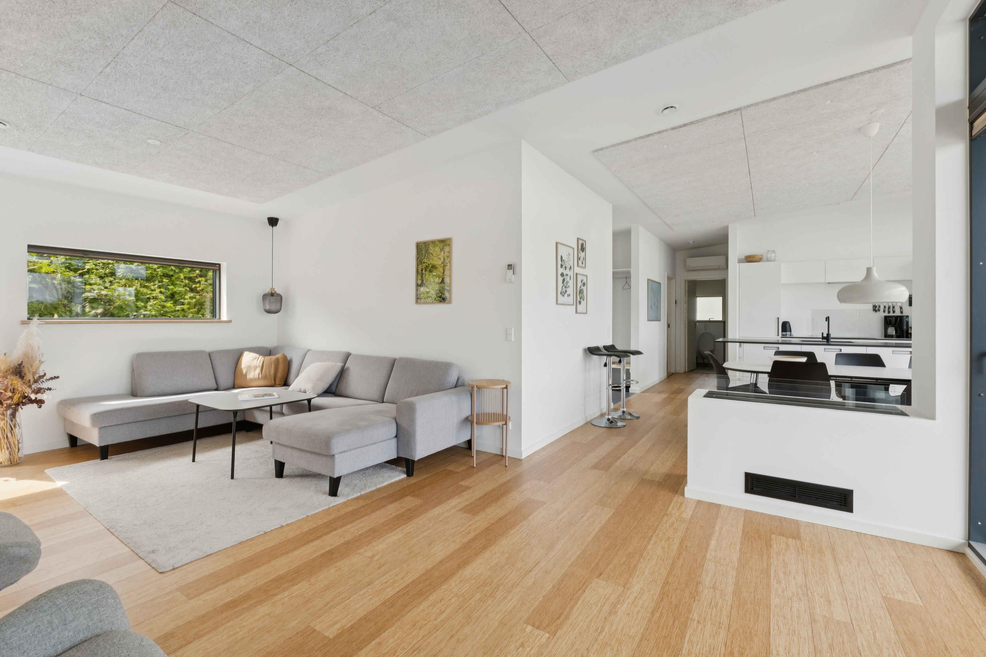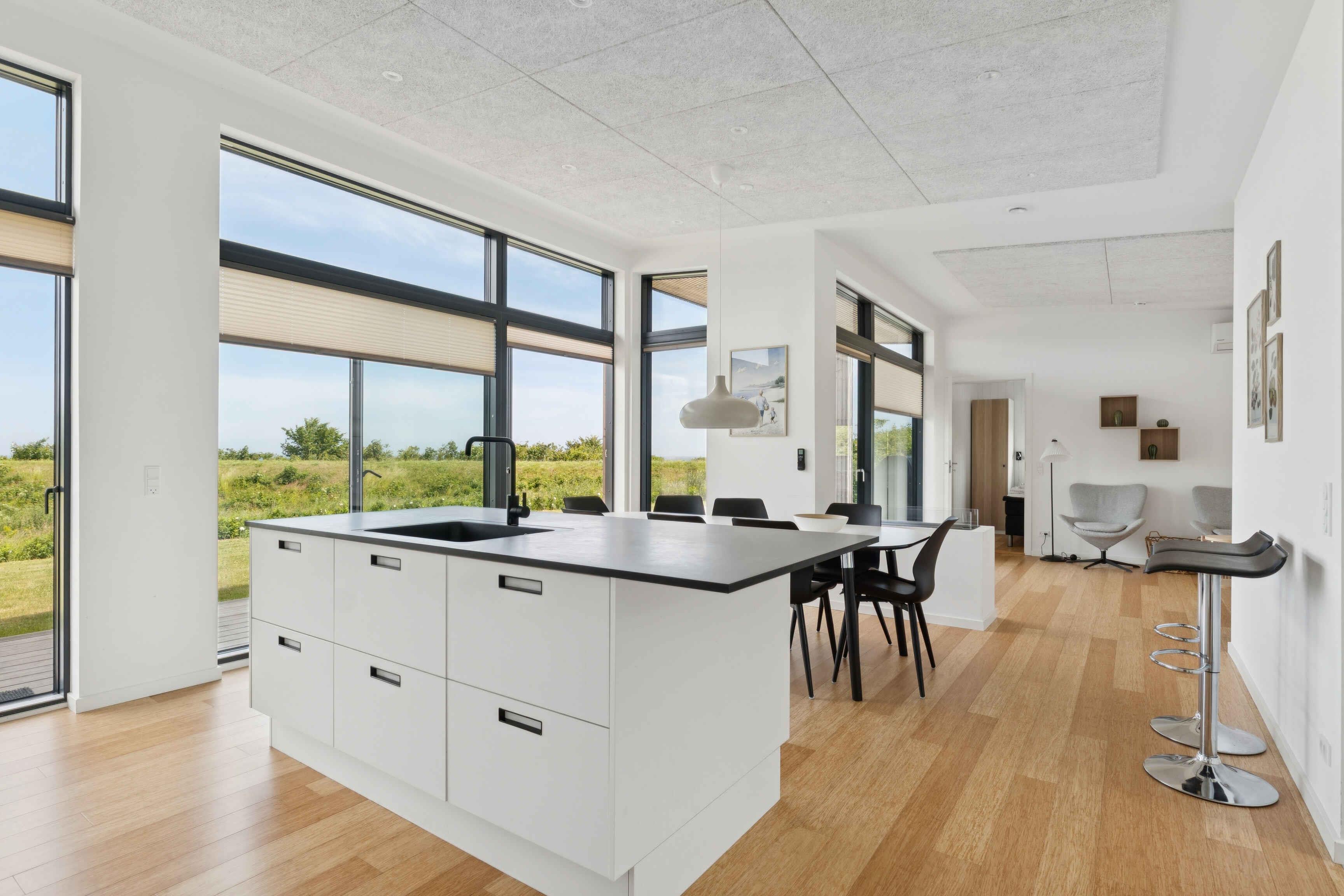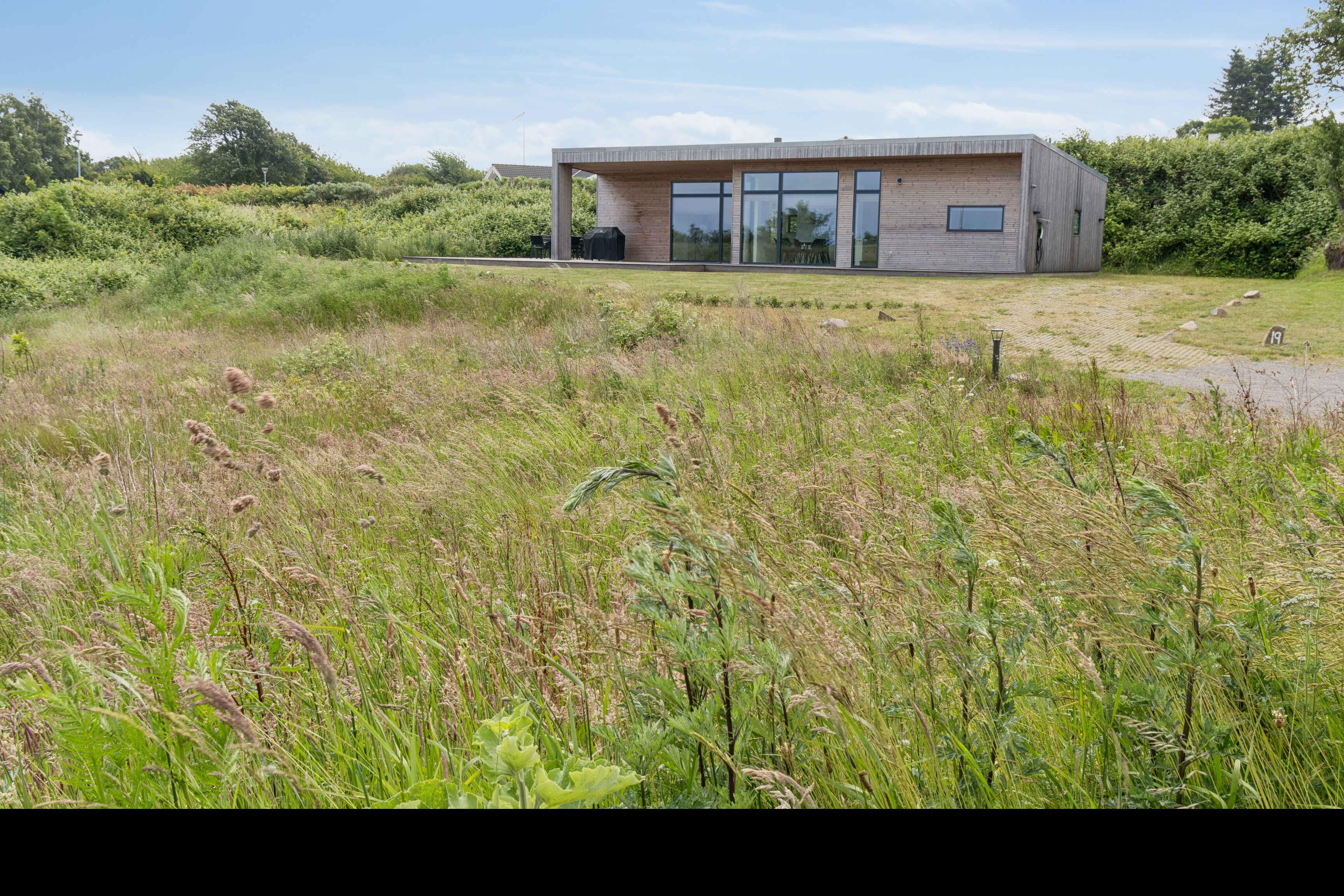 Arkitekttegnet feriehus med havudsigt, bæredygtige materialer, 4 soveværelser, 2 badeværelser, stor terrasse, gasgrill, udebruser og ladestander – tæt på strand og naturoplevelser.