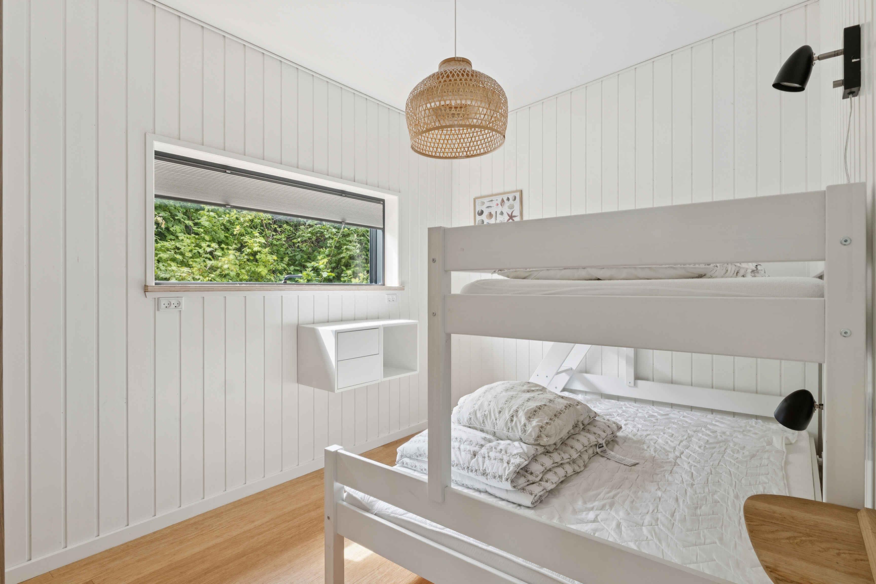 Flot, arkitekttegnet feriehus med havudsigt. Huset ligger nær det smukke naturområde ved Hammeren i charmerende Sandvig og kun 50 meter fra en cykelvej og gangsti, der fører direkte ned i det hyggelige Allinge-Sandvig-område. Huset er lyst og moderne indrettet og med kvalitet og bæredygtigt matriale og garanterer et kvalitetsophold på smukke Nordbornholm. I kommer til at tilbringe mange hyggelige og afslappende stunder i den rummelige opholdsstue med vanddamppejs, hvor I kan flade ud i gode møbler og se film, høre musik, spille spil eller bare hyggesnakke. I det åbne, veludstyrede køkken med tilhørende spiseplads er det en fornøjelse at tilberede lækre feriemåltider. Alle husets fire gode soveværelser og to flotte badeværelser har behagelig gulvvarme. Det samme har bryggerset, hvor I finder en vaskemaskine. Til huset hører en stor, delvist overdækket træterrasse med havemøbler, hvor I kan slappe godt af og nyde solen og den friske luft til et glas vin. I har også en gasgrill til rådighed, så I kan afslutte en eller flere feriedage med en hyggelige grillaften. Derudover har huset en udebruser, som er perfekt til at skylle sandet af sig efter en strandtur. Har I elbil, så har huset en ladeboks med 7 m kabel med type-2-stik. Huset er et glimrende udgangspunkt for strandture, og I har også mange flotte vandrestier tæt på, blandt andet langs den smukke klippekyst, hvor I kan opleve fortryllende solnedgange. Nordbornholm er spækket med attraktioner. I kan tage til Hammershus Slotsruiner, Jons Kapel, Helligdomsklipperne, Olsker Rundkirke og Bornholms Kunstmuseum. Et fantastisk lækkert kvalitetshus med bæredygtighed for øje, som byder på havudsigt, flot natur, ro, og en dejlig sandstrand kun 500 meter væk. Obs, udlejes ikke til erhversmæssigt brug.