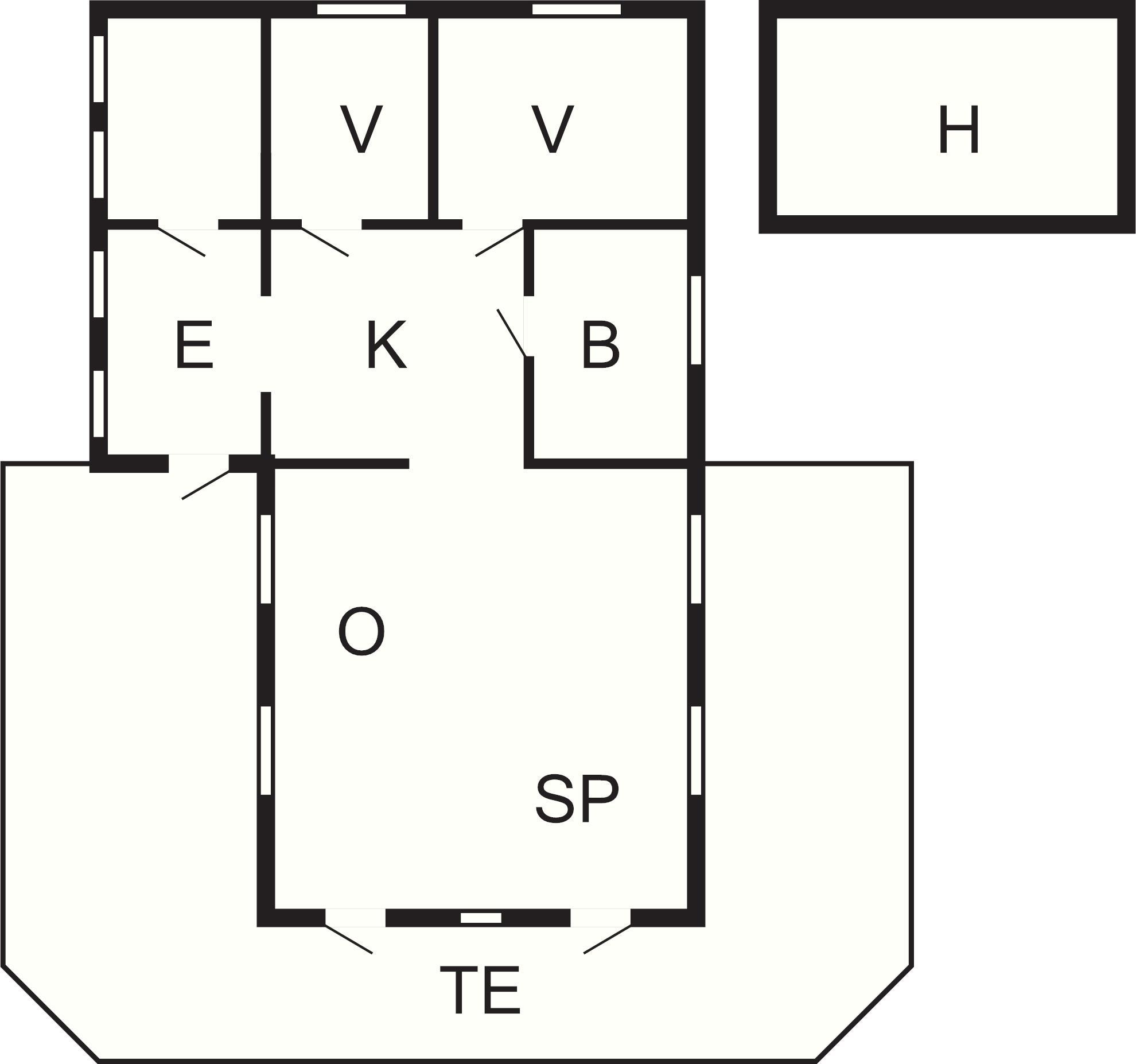 Køkkenafd.: El-komfur, køleskab, mikroovn, emhætte, kaffemaskine, opvaskemask.