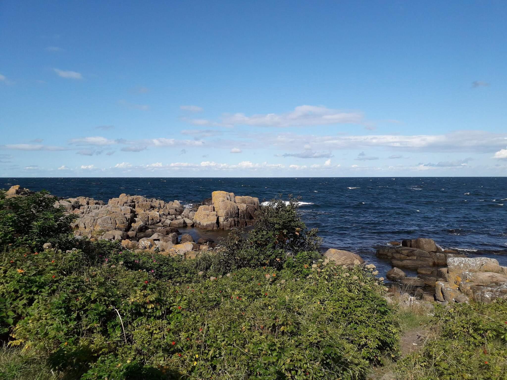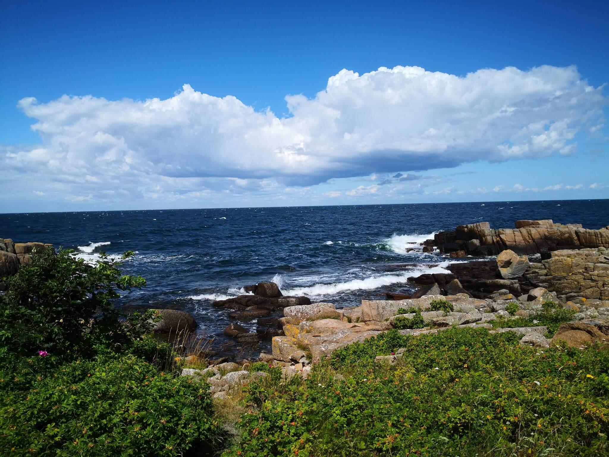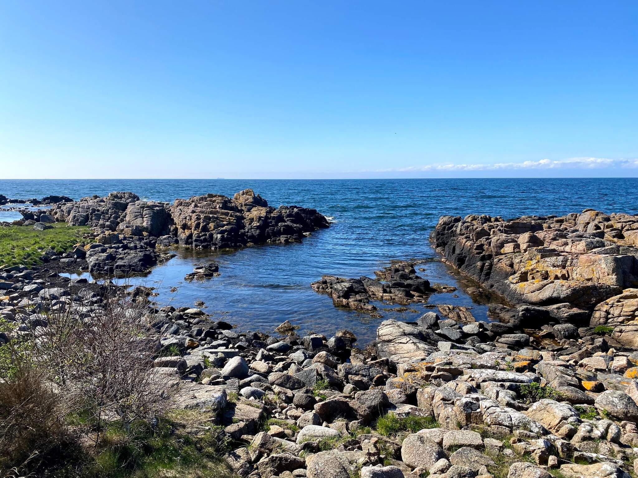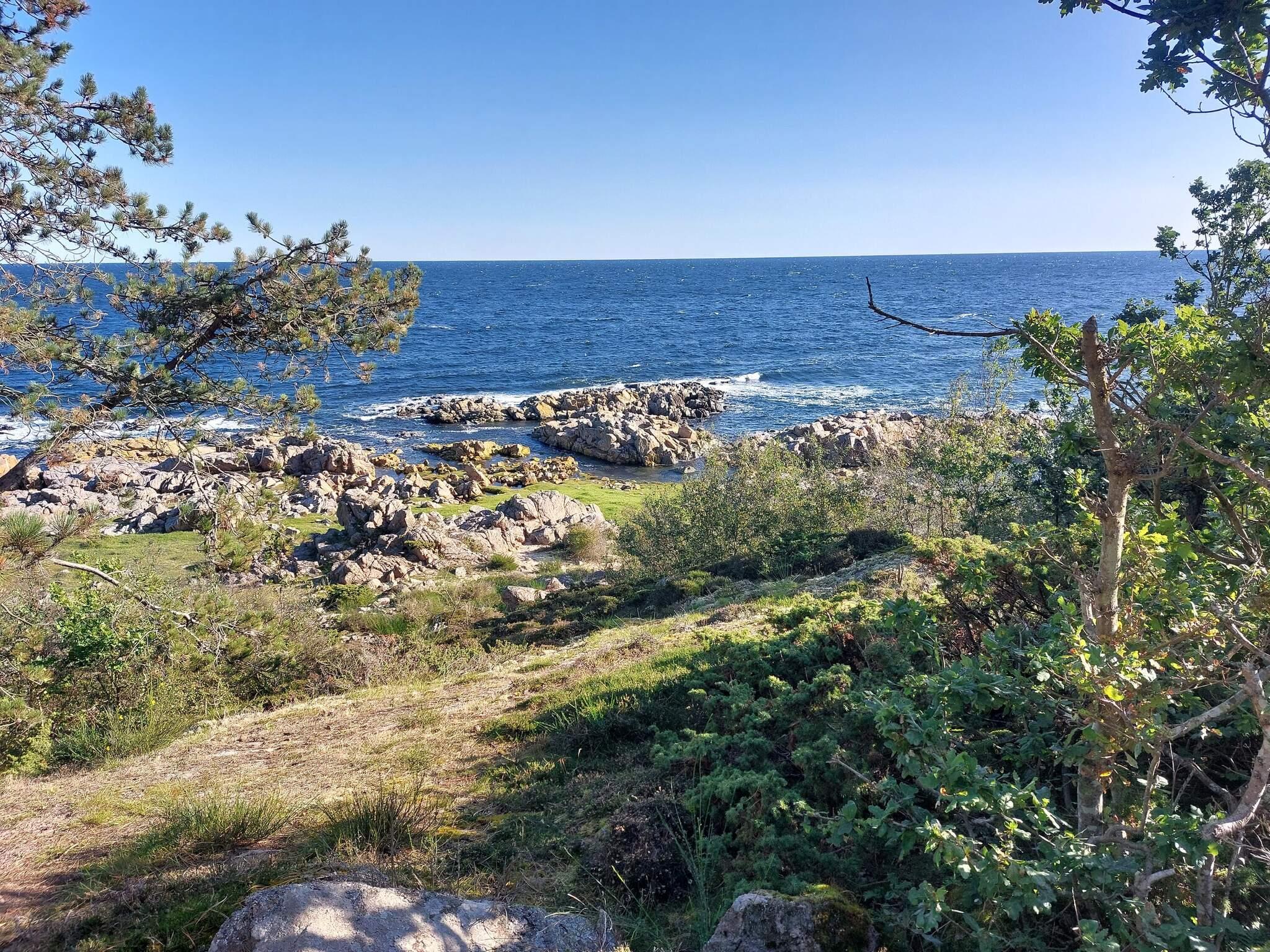 Pragtfuldt beliggende sommerhus i periferien af den idylliske by Allinge. Stort badeværelse med spabad. Huset har desuden gæstetoilet med vaskemaskine. Huset er beliggende på en skrånende grund med en lille bæk, der løber gennem haven. Terrasse med havemøbler og grill. Huset er indrettet i lys og moderne skandinavisk stil med loft til kip.
