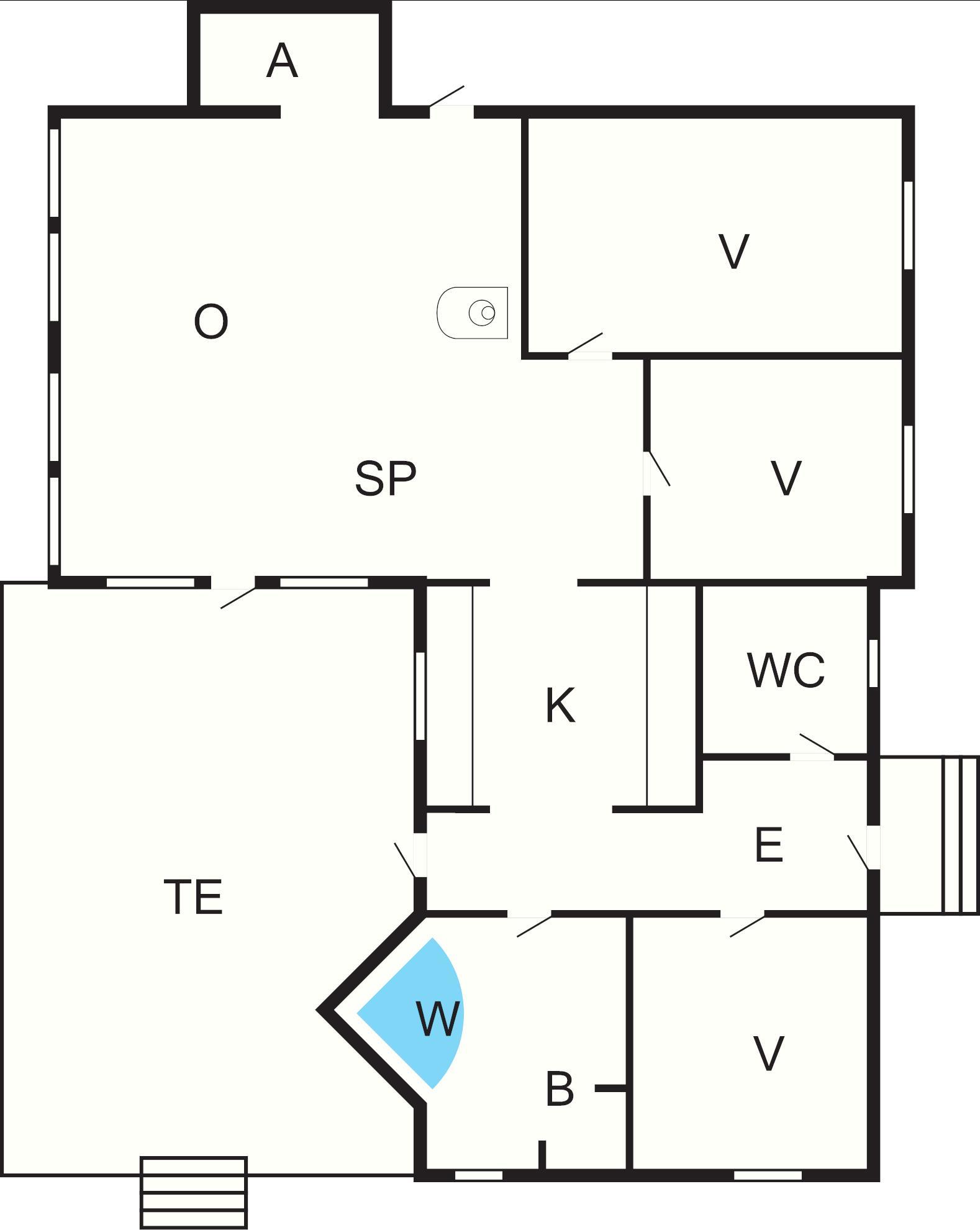 1 Opholdsstue: Brændeovn, dvd-afspiller, tv, parabol