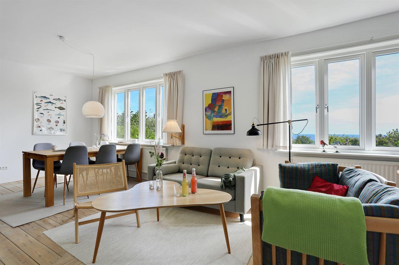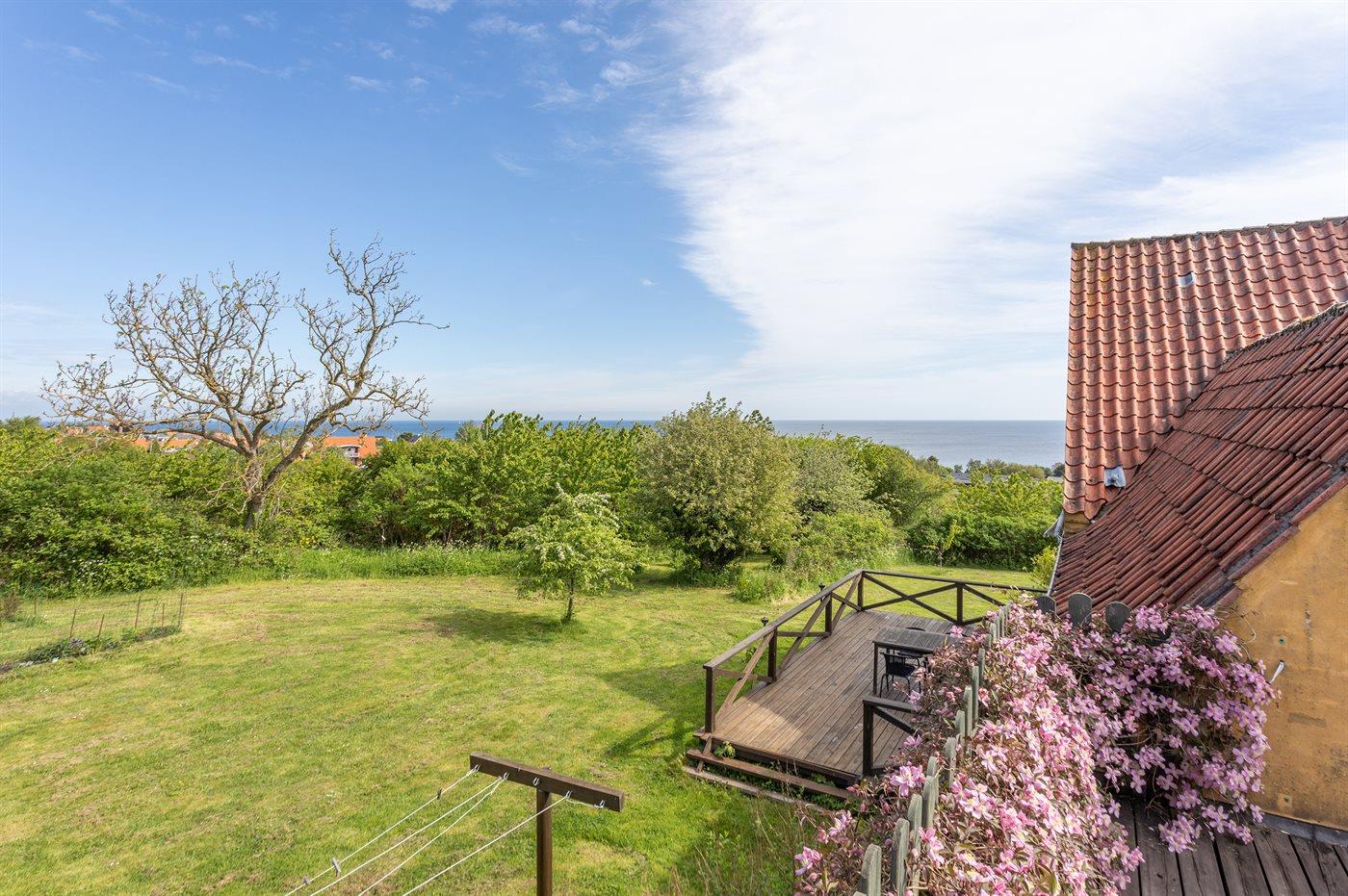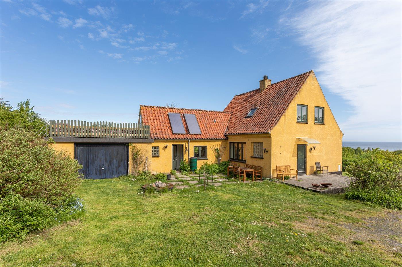 Smukt og rummeligt feriehus med havudsigt, store terrasser og en rolig naturgrund på Bornholm.