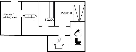 Der er i alt 2 soveværelser. Sovepladserne fordeler sig på: 2 sovepladser i enkeltsenge. 2 sovepladser i køjeseng.