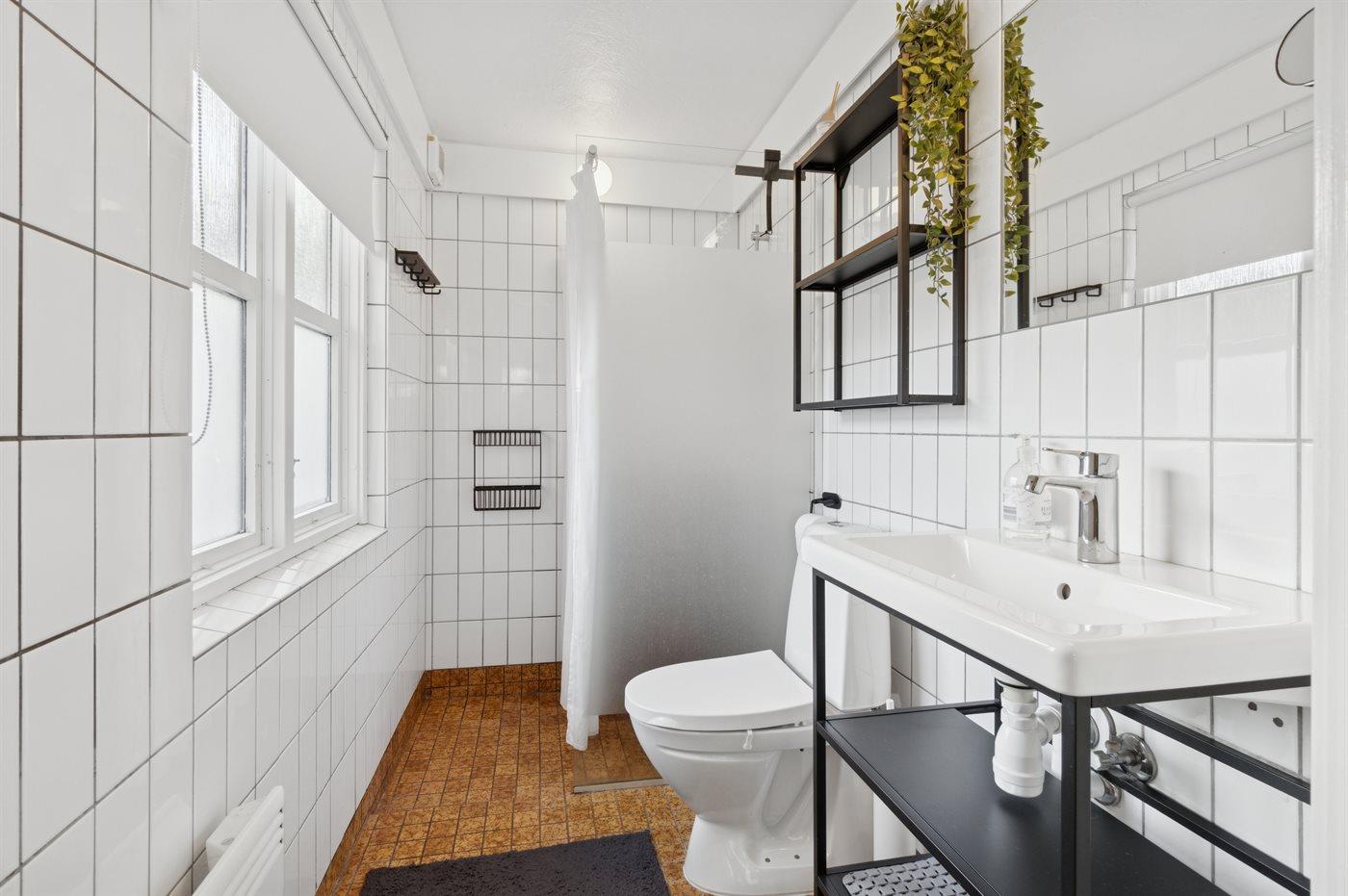 Der er 1 badeværelse med bruseniche og 1 toilet.