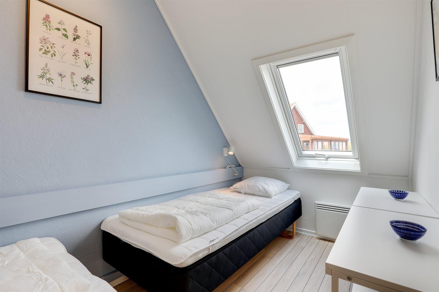 Der er i alt 2 soveværelser. Sovepladserne fordeler sig på: 2 sovepladser i dobbeltseng. 2 sovepladser i enkeltsenge. 2 sovepladser i sovesofa (dobbelt).