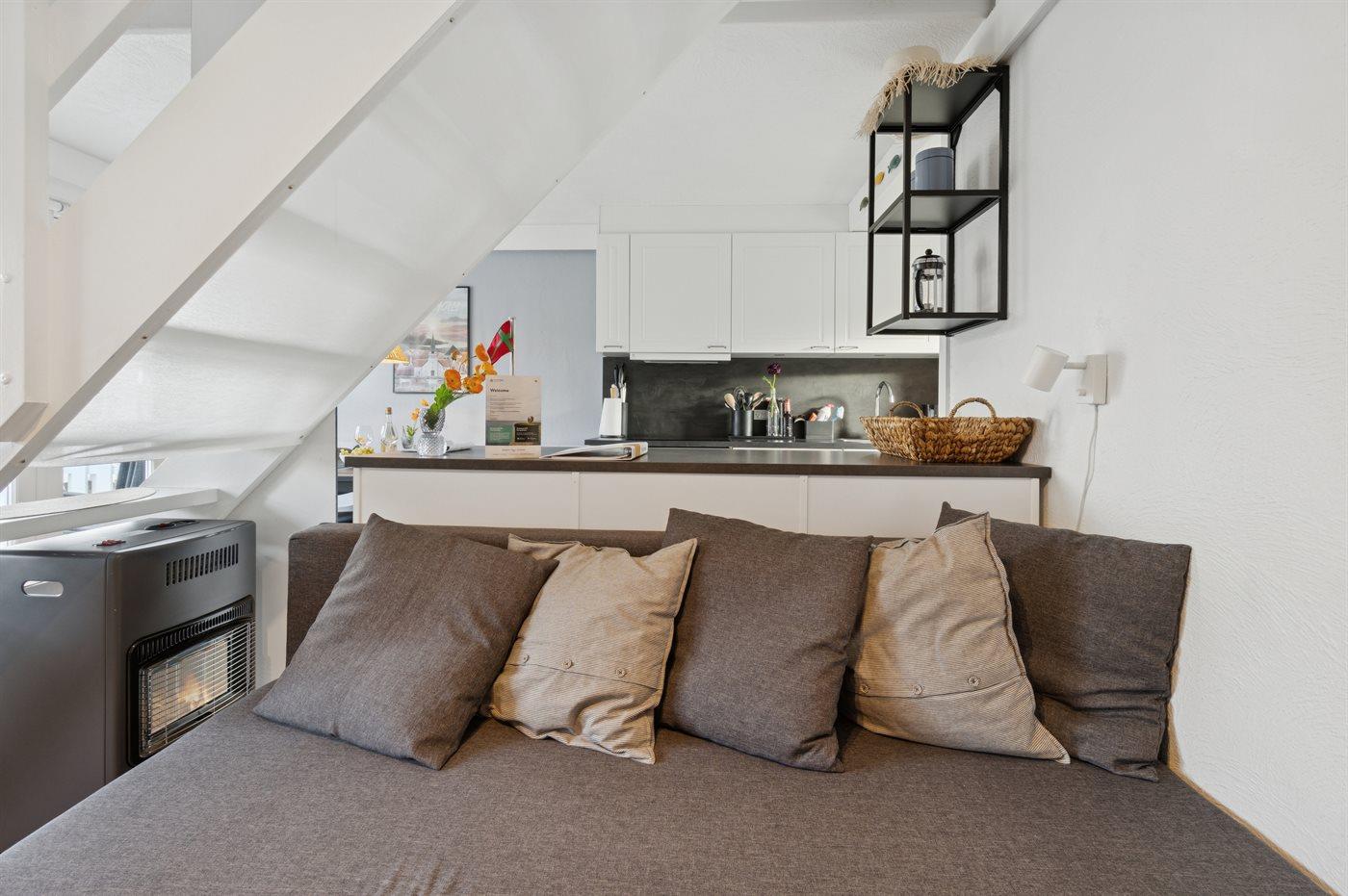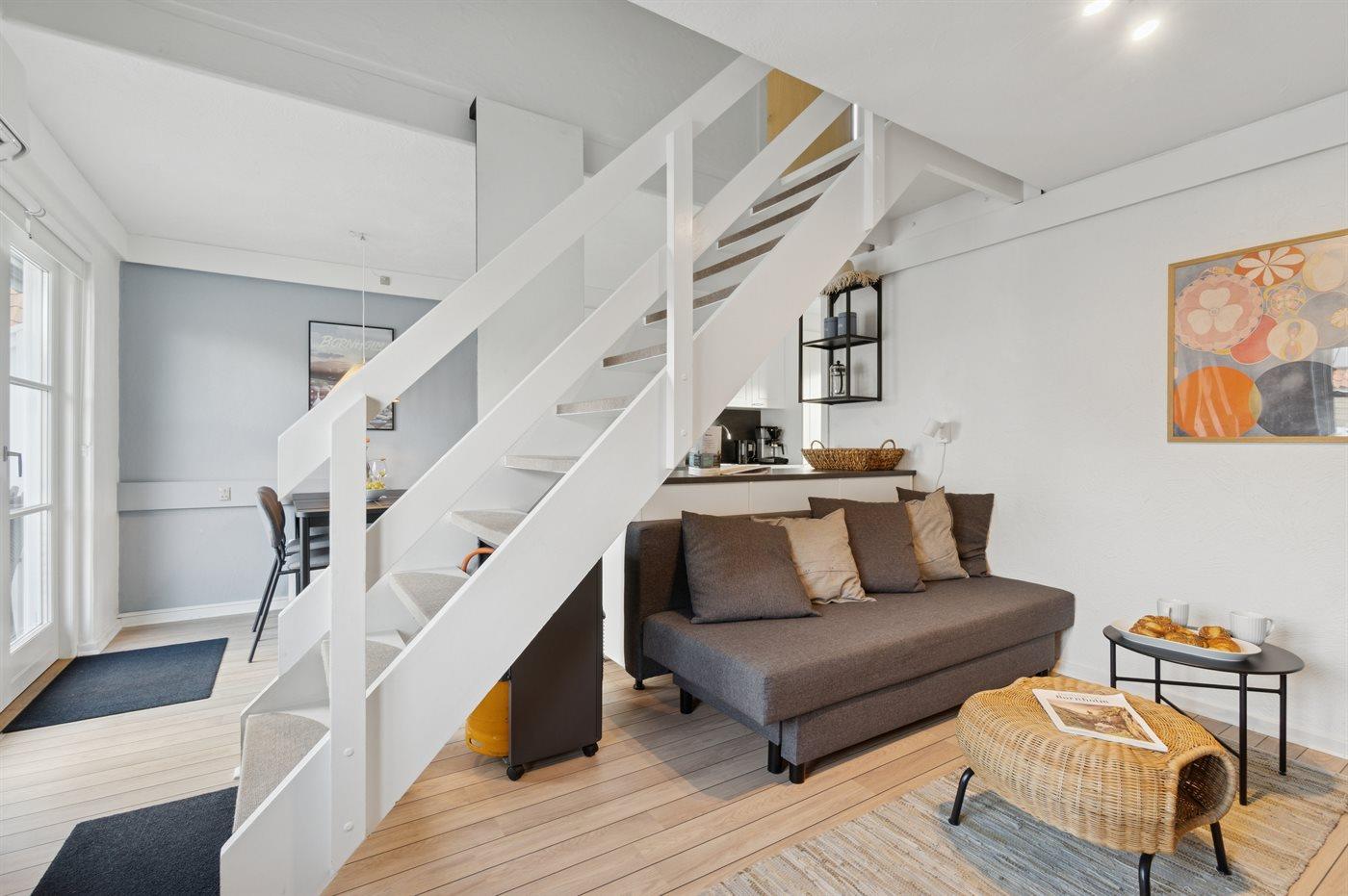 Som udgangspunkt for vandreture langs kysten og badeture ligger denne lejlighed perfekt. Der er kun få minutter til badestranden ved Næs. At besøge Allinge-Sandvig med krogede og stejle gader med et levende byliv hen over sommeren med restauranter, røgeri, caféer og en idyllisk småbådehavn ved Folkemødepladsen er oplagt.