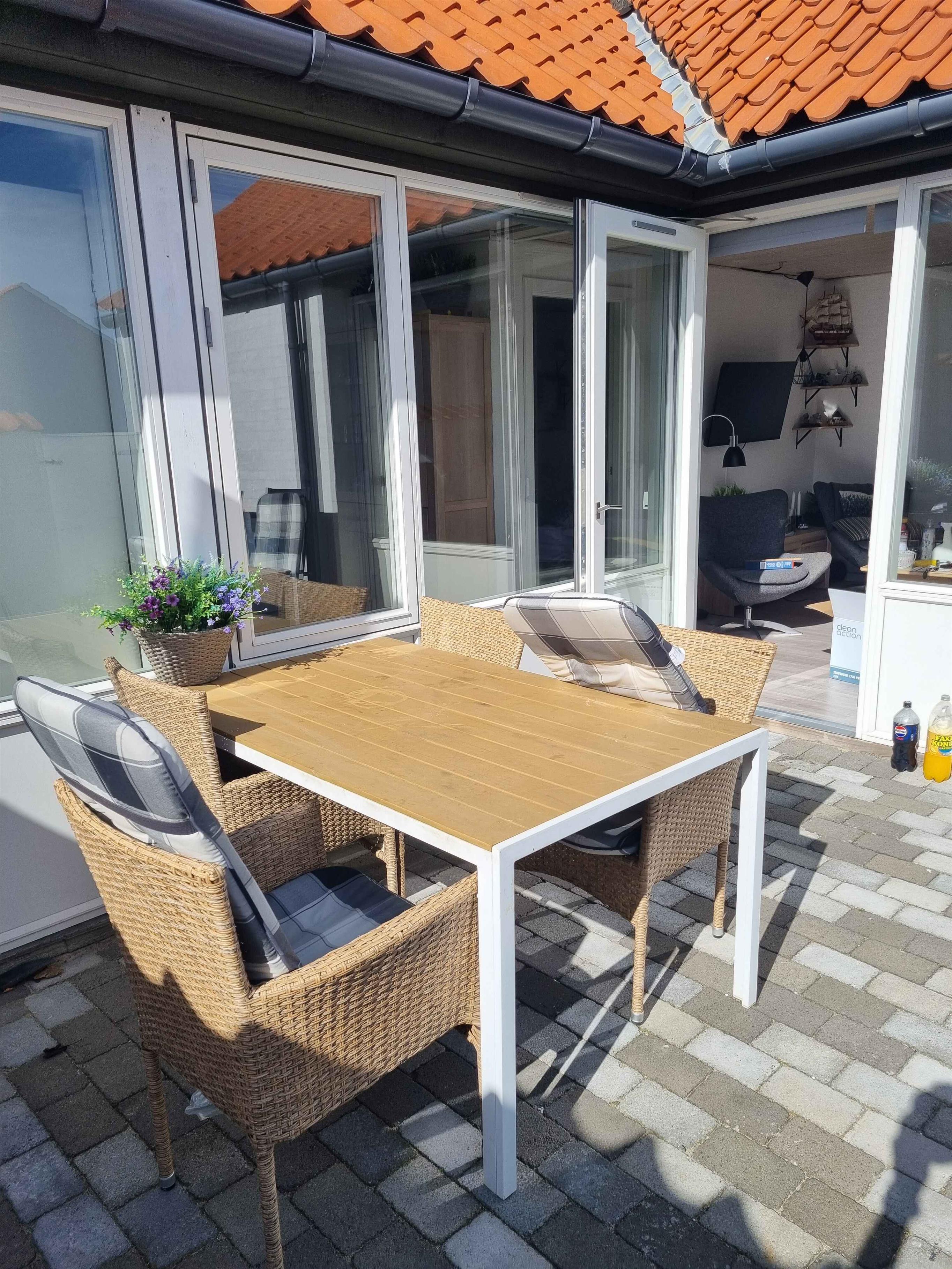 Drømmer du om en ferie midt i Bornholms magiske natur? Dette charmerende feriehus i Allinge byder på komfort, hygge og oplevelser i særklasse. Her er der plads til op til 6 personer – perfekt til familien, vennerne eller en romantisk get-away med lidt ekstra plads. Huset indeholder: 2 lyse og indbydende soveværelser Veludstyret køkken med spiseplads, opvaskemaskine, mikrobølgeovn og Airfryer Hyggelig stue med TV, Internet, Radio, Musiksøjle og direkte adgang til privat solgård Anretningsbord med både gas- og kulgrill - (overdækning fjernet) Udenfor venter oplevelserne: Fælles svømmehal Opvarmes fra 1. maj til 31. oktober Gratis adgang til vaskemaskine og tørretumbler i fællesbygningen Gåtur 600 meter til badebugten “Næs” og den historiske kystredningssti (5 min.) Nærhed til klippeformationer, strandpartier og kyststier – oplagt til vandring og naturoplevelser. Kort afstand til Allinge Havn og Bornholms kulturelle perler. Tag morgenkaffen med ud i solgården, grill under stjernerne og oplev solnedgangen over Østersøen – her får du den perfekte kombination af natur, komfort og charme.