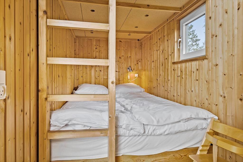 Huset er indrettet med rigtig dejligt køkken og spiseplads. Lys venlig stue med store vinduer. Ovenpå en fantastisk hems og alkove hvor børnene kan gemme sig og man har den skønneste udsigt over Kattegat. 2 soveværelser med dobbeltseng, alkove med dobbeltseng og hems. Skønt badeværelse med spabad og sauna.