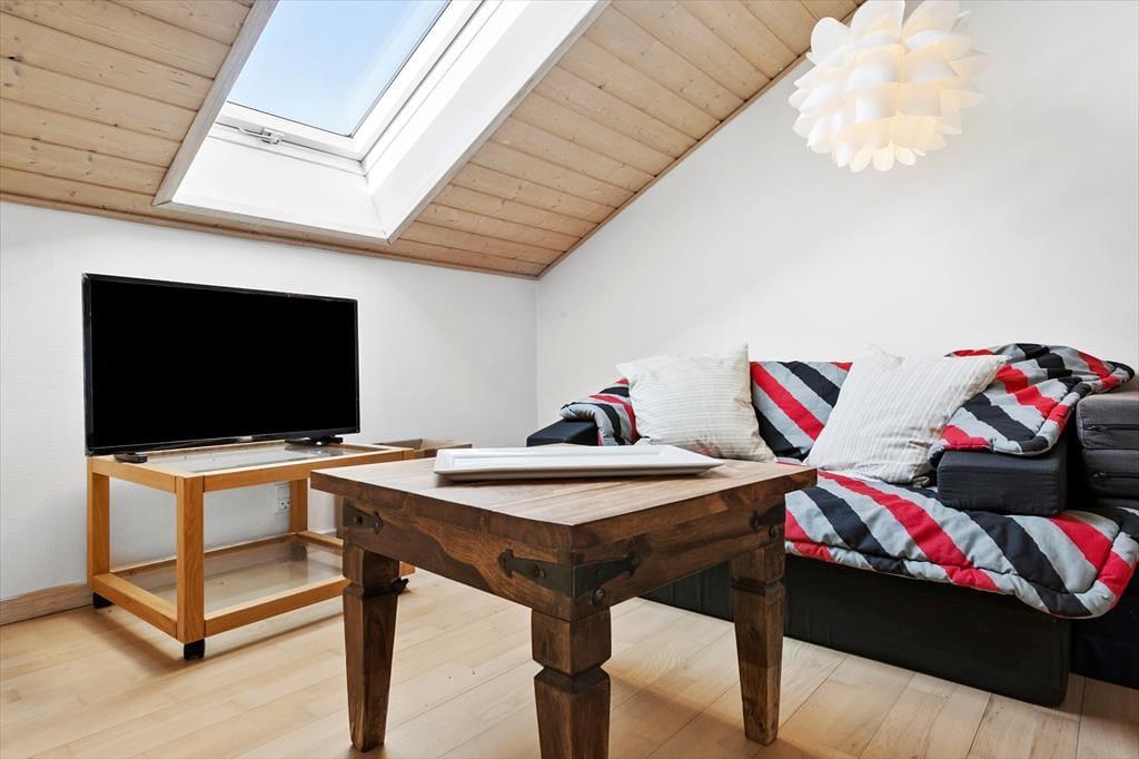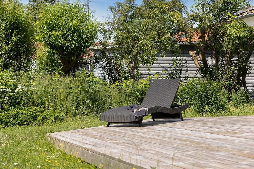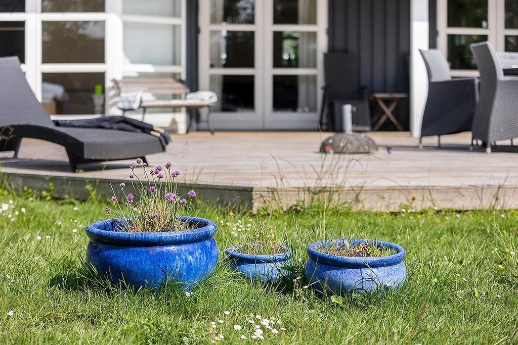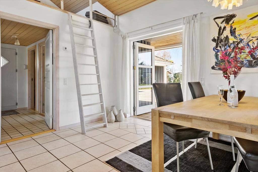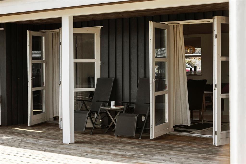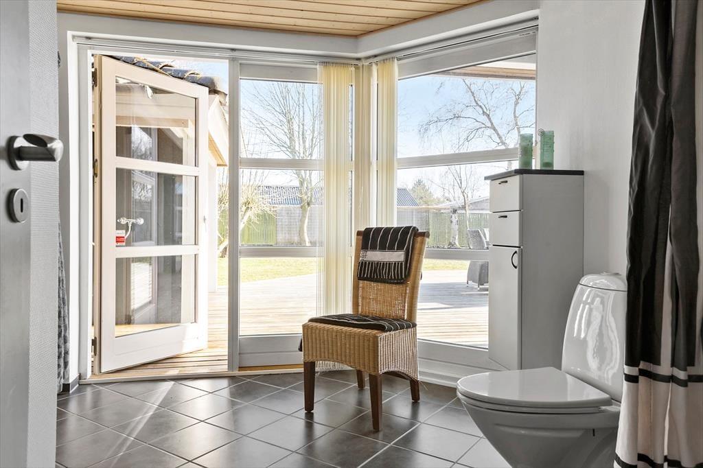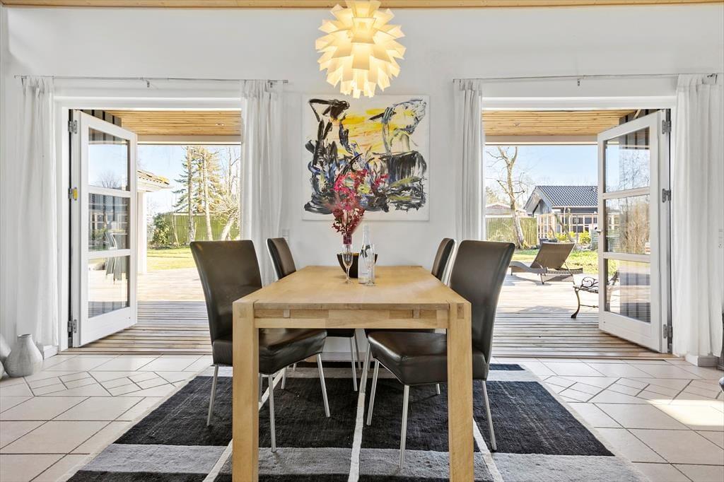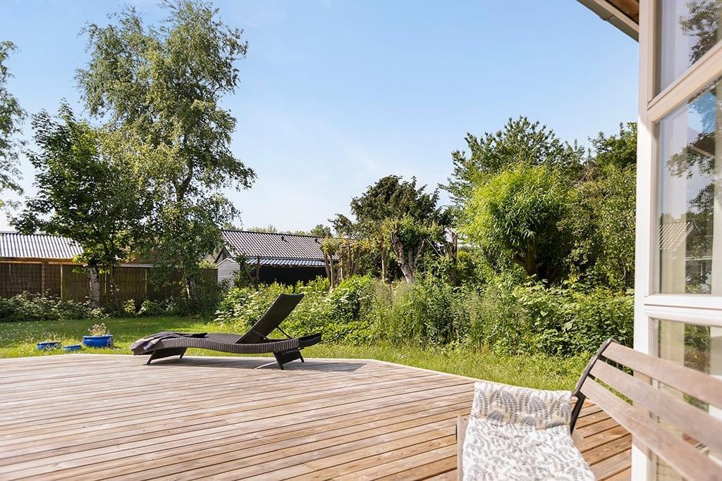Udenfor venter en dejlig have med en stor træterrasse, hvor du kan nyde solen hele dagen. Terrassen er delvist overdækket, hvilket giver mulighed for at sidde ude, selv når vejret er lidt ustadigt. Den grønne plæne er ideel til leg og afslapning, og den rolige beliggenhed sikrer en fredfyldt atmosfære. Om aftenen kan du tænde grillen og nyde et måltid under åben himmel, mens du lytter til fuglesang og mærker den friske luft.