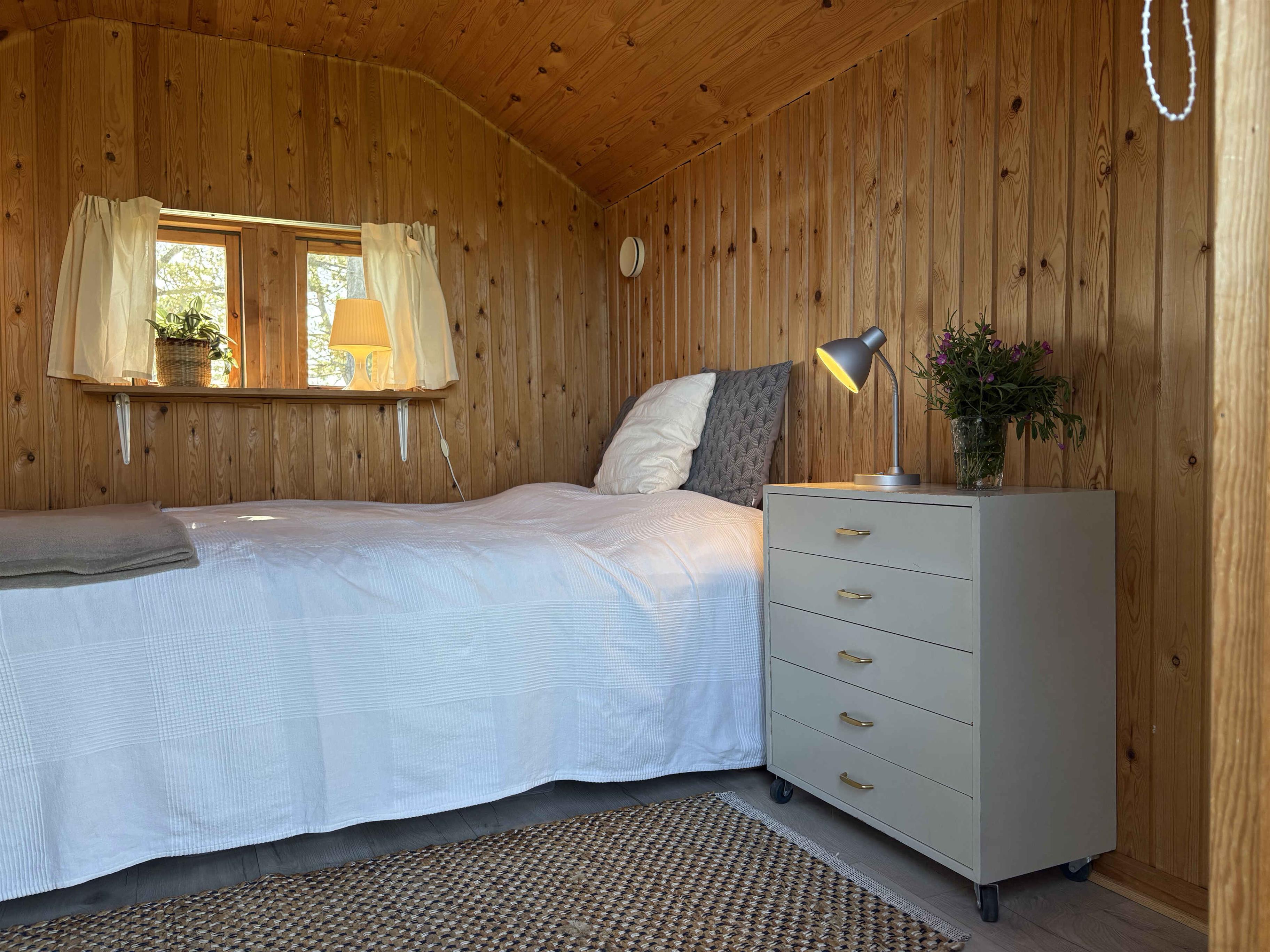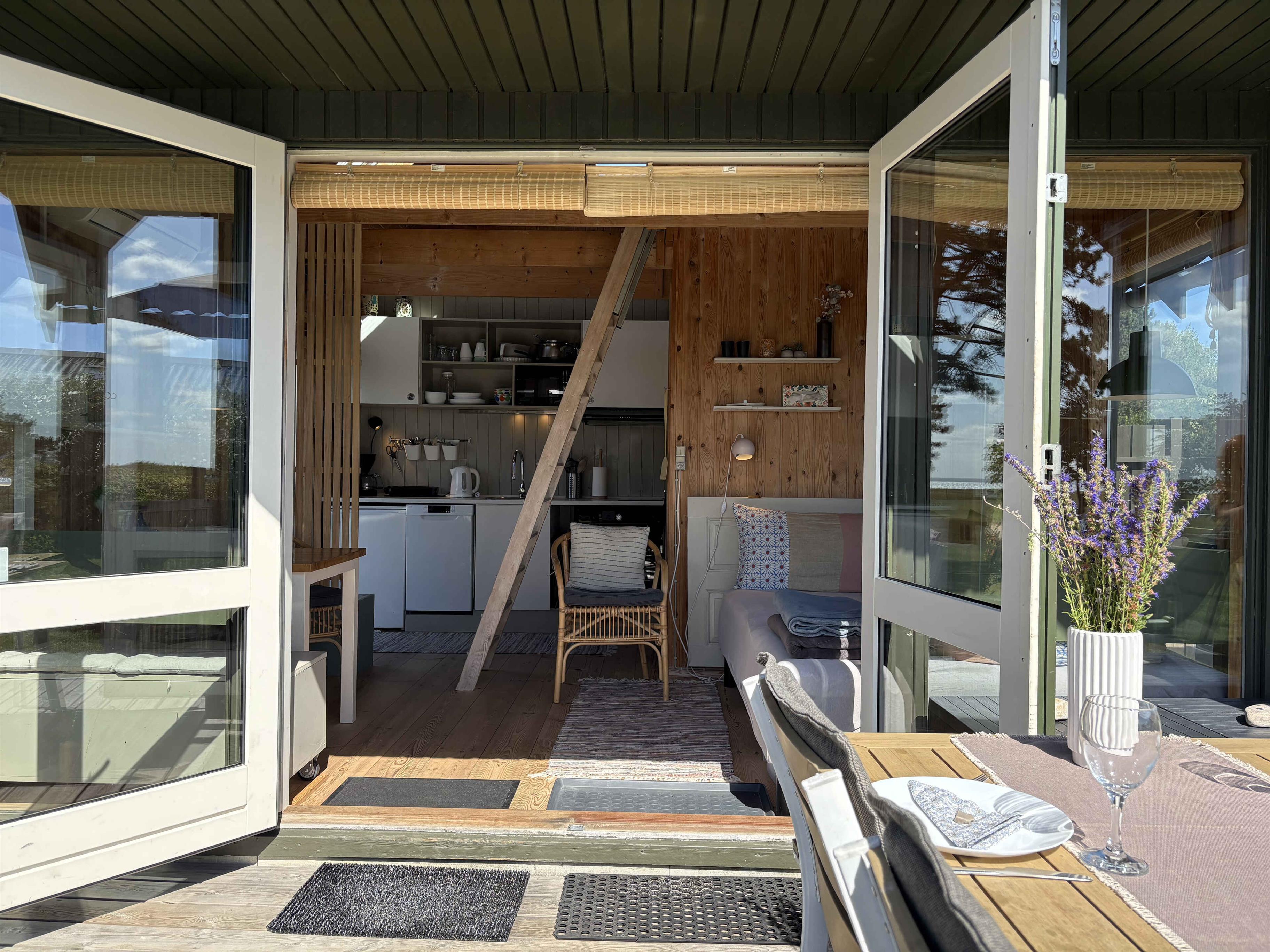 Denne lille hytte på 18 m² rummer alt, hvad der skal til for en ferie tæt på kysten. Med sin kompakte indretning får man en enkel, men funktionel base, der er let at bruge som udgangspunkt for afslapning og oplevelser. Indenfor finder du plads til fire personer. To sovepladser er placeret i stueplan, mens hemsen rummer yderligere to. Det gør hytten velegnet både til parret eller den lille familie, som ønsker at bo tæt og hyggeligt, men stadig med god komfort. Fra stuen åbner udsigten sig direkte mod vandet. De store vinduespartier giver et panorama, der gør, at man hele tiden har naturen som baggrund – uanset om dagen bruges indenfor eller på terrassen. Afstanden til kysten er blot 100 meter. Grunden er rummelig og giver plads til leg, boldspil og ophold i det fri. Her er let adgang til både sol og skygge, og uderummet kan nemt blive familiens naturlige samlingspunkt. Området omkring hytten er særligt attraktivt for feriegæster. Kysten på Sydals indbyder til badeture, kajak eller lange gåture langs stranden. Vandet er ofte roligt og velegnet til børn. Der er også gode muligheder for cykelture gennem landskabet, hvor marker, skove og små landsbyer skaber variation. Naturen er ikke det eneste trækplaster. I nærheden findes hyggelige havnemiljøer, lokale spisesteder og små butikker. Fra sommerhuset kan man hurtigt tage på udflugter til historiske seværdigheder, eller man kan vælge en dag i ro, blot med udsigten som underholdning. Kombinationen af den enkle hytte, den store grund og nærheden til vandet gør dette sted til en feriebolig, hvor både ro og oplevelser er inden for rækkevidde.