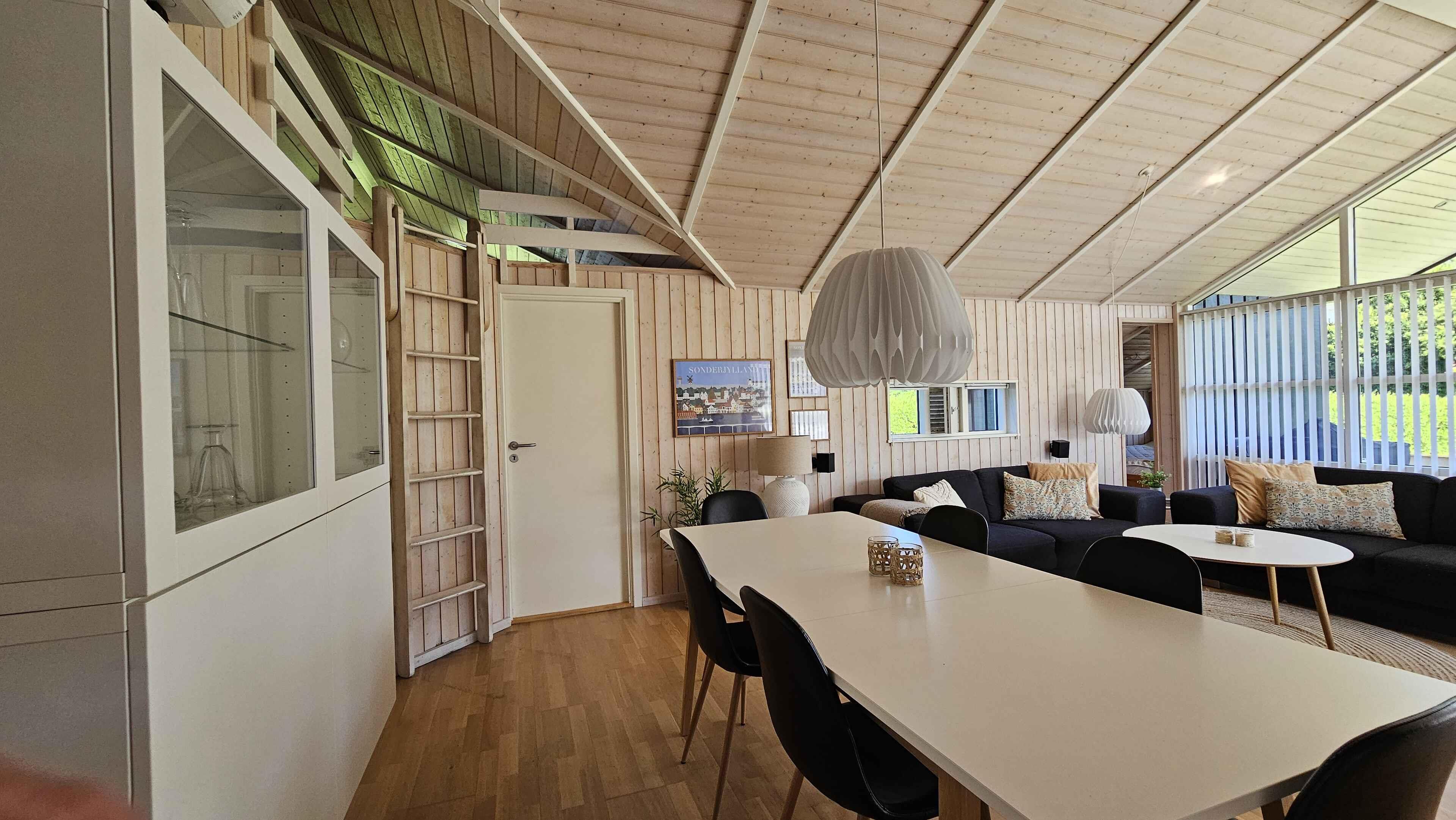 Lyst og moderne sommerhus med spabad i det populære sommerhusområde ved Skovmose der er kendt for den dejlige børnevenlige sandstrand. Sommerhuset er smagfuldt indrettet og egner sig til den kræsne lejer, der sætter pris på kvalitet - dit hjem udenfor hjemmet. Der er en pæn entre med vaskemaskine og tørretumbler, stort, lyst og åbent køkken/alrum med lofter til kip og direkte udgang til den store, delvist overdækkede terrasse. Opholdsstue med tv, der har både danske og tyske kanaler. Her kan I også streame en god film via den installerede Chromecast, der er nemlig 1Gbit internetforbindelse i huset. Alternativt kan I slukke tv-et og hygge jer med en god bog foran den knitrende brændeovn. Der er tre gode soveværelser med rigelig skabsplads samt en hyggelig alkove i opholdsstuen og hems hvor ungerne kan boltre sig og indrette deres eget "hjem". Der er to badeværelser med bruseniche, hvoraf et også har et lækkert spabad til to personer og direkte adgang til husets sauna. I den store have er der god plads til boldspil og leg, og der er sandkasse. Huset opvarmes af en økonomisk og energibesparende varmepumpe. HUSET LEJES IKKE UD TIL UNGDOMSGRUPPER! Obs, udlejes ikke til erhversmæssigt brug.