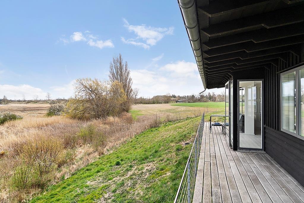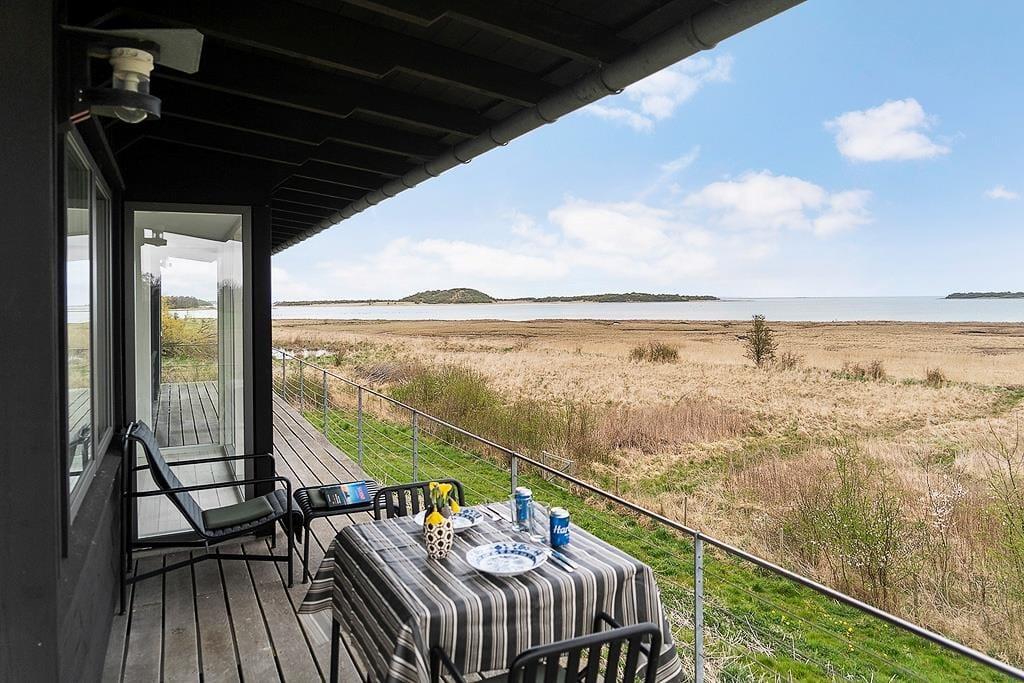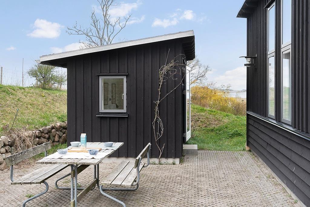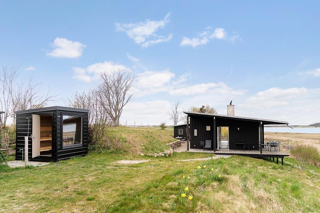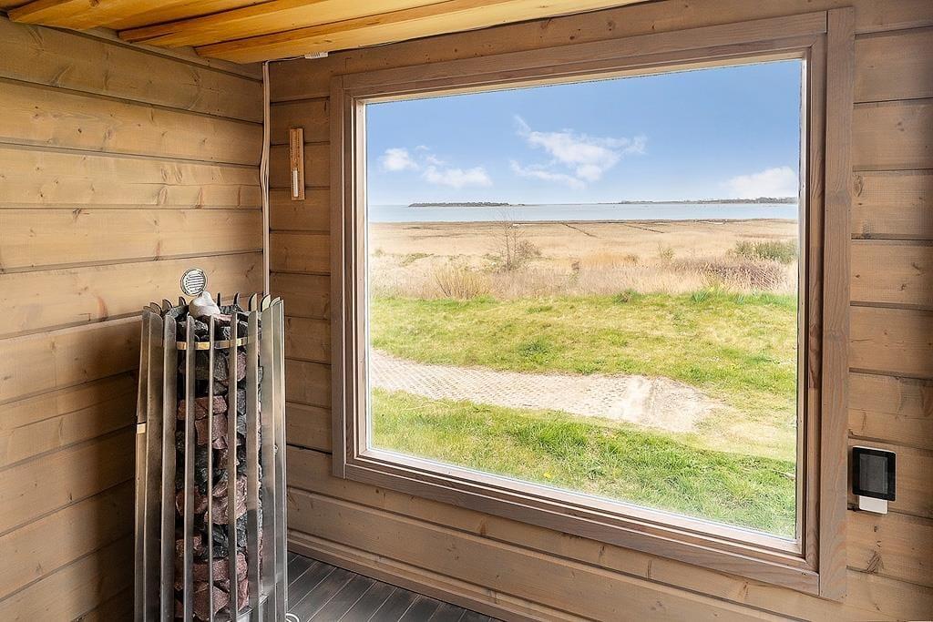 Når solen skinner, kalder det fri liv udenfor. Start dagen med en frisk dukkert i havet eller under den udendørs bruser eller forkæl jer selv med en stille stund i den lune udendørs sauna. Når du sidder i saunaen, kan du også nyde en udsigt udover det sædvanlige. Den ene side er glas, så her kan du nyde udsigten og Stauns Fjord, mens du bliver varmet helt igennem. Terrassen inviterer til lange, afslappede timer med udsigt over det vidunderlige og unikke landskab – her er rig mulighed for at lade roen sænke sig og nyde de små, store øjeblikke under åben himmel.