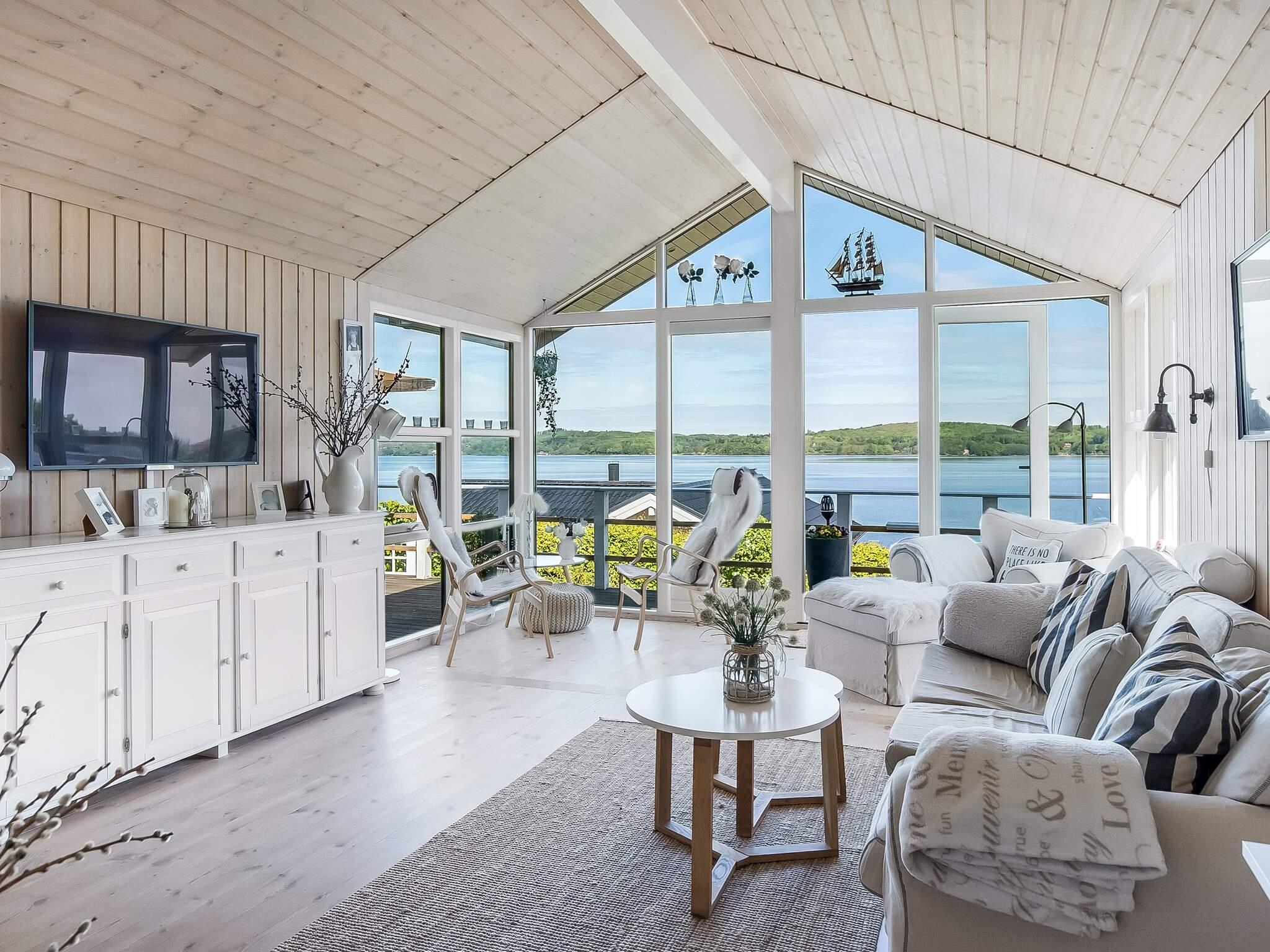 Og: Terrasse, el-varme, luft/luft varmepumpe, kuperet grund 290 m2, moderne møblering, panoramaudsigt over vand