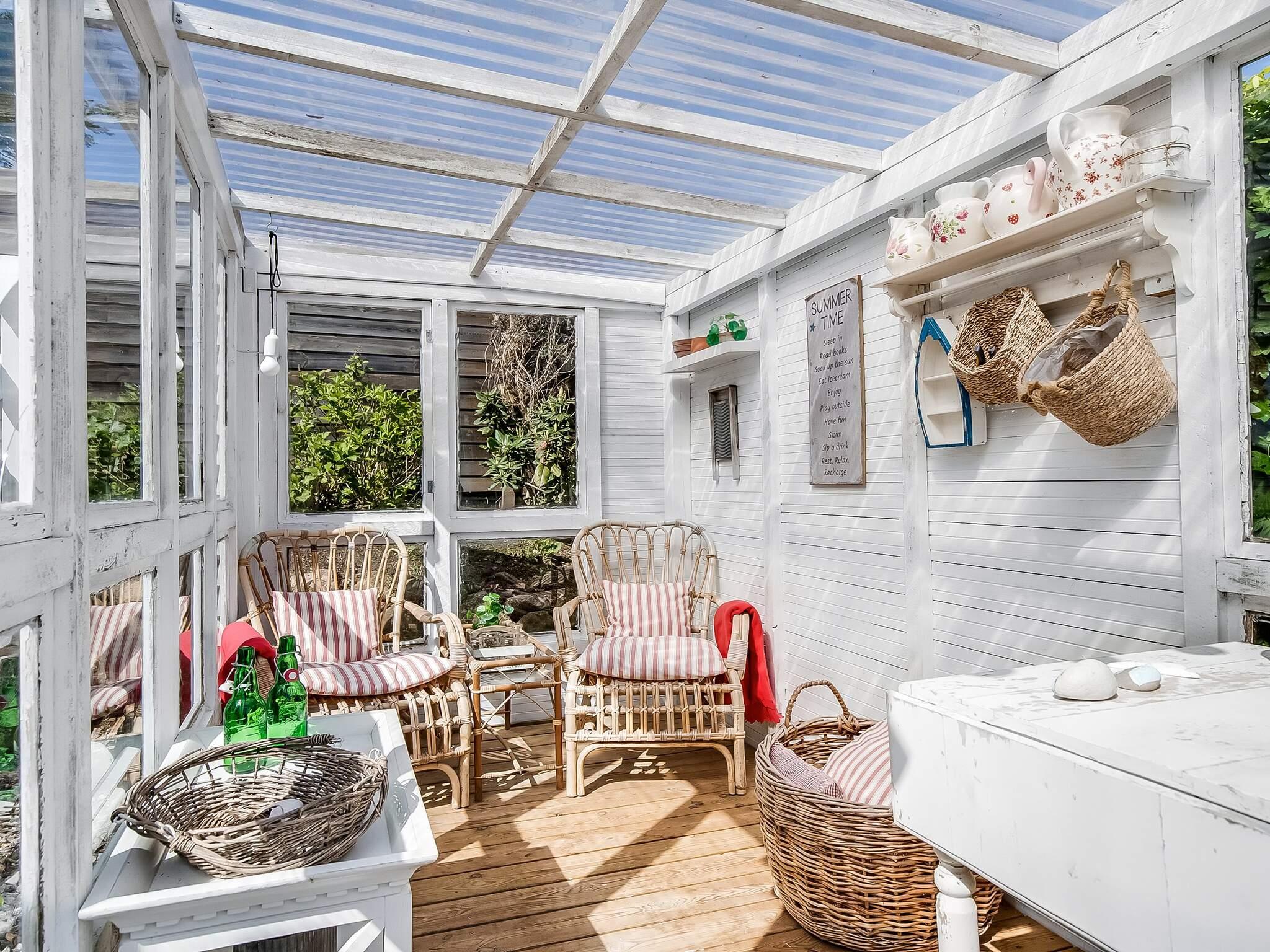 Huset er udstyret med et Smart TV og Google Chromecast, så du kan streame dine yndlingsprogrammer via dine egne konti. En energieffektiv luft-til-luft-varmepumpe holder hjemmet behageligt, samtidig med at den hjælper med at reducere elomkostningerne. Udendørs er den anlagte have fuld af charmerende små steder at slappe af med blomstrende blomster og hyggelige siddepladser overalt på ejendommen.