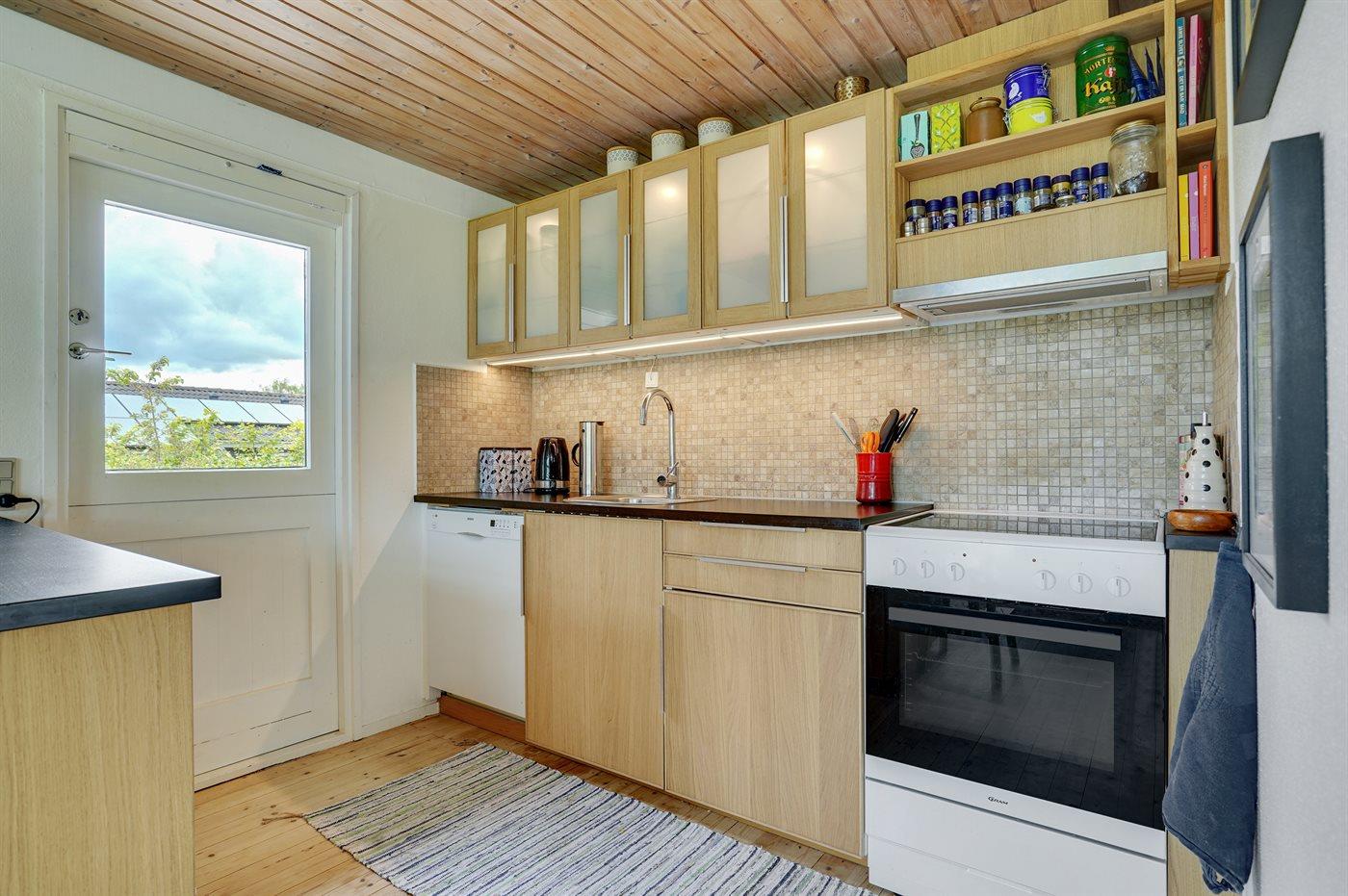 Køkkenet er udstyret med 1 køleskab. Der er 4 keramiske kogeplader, varmluftovn samt opvaskemaskine.