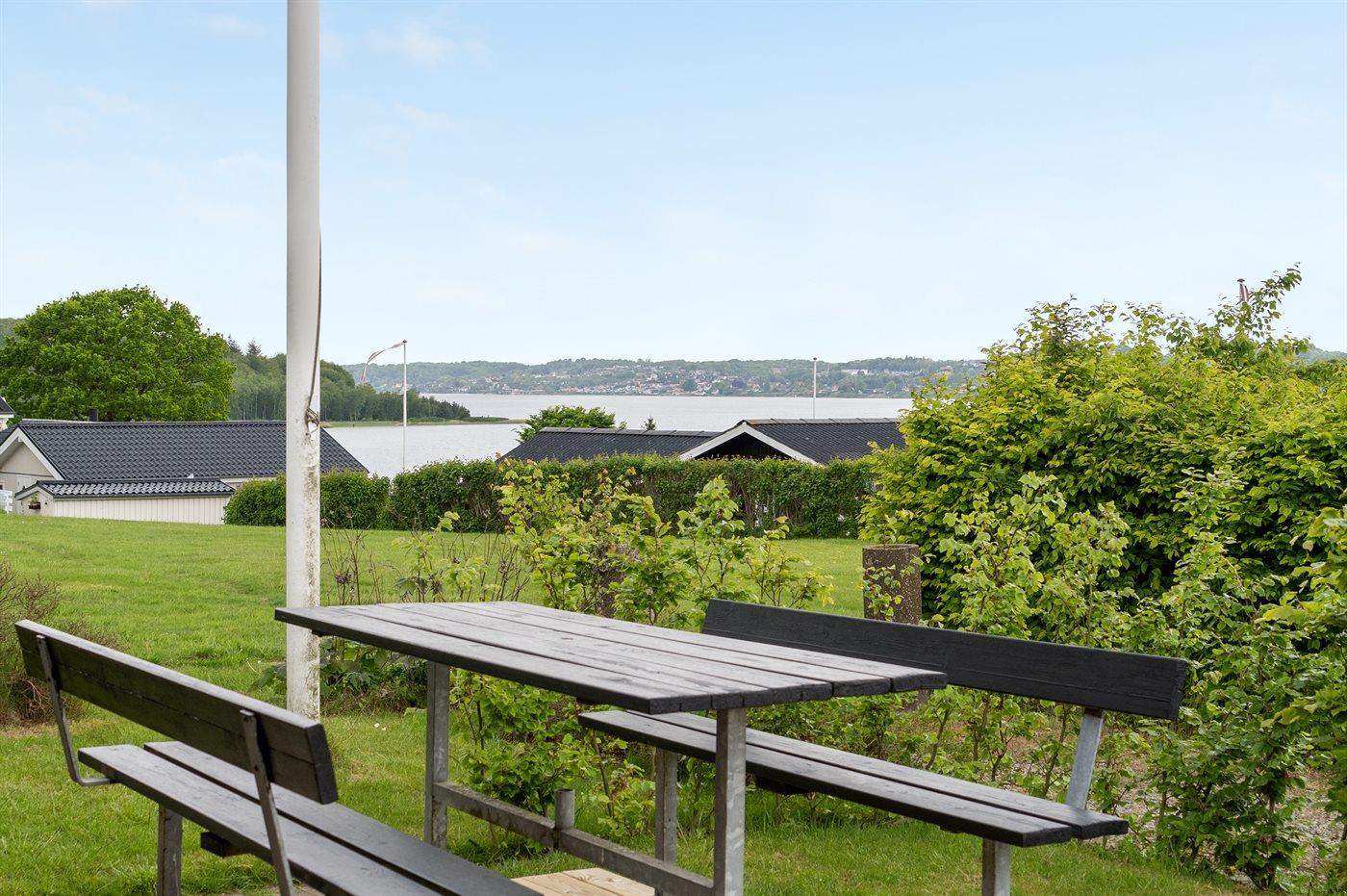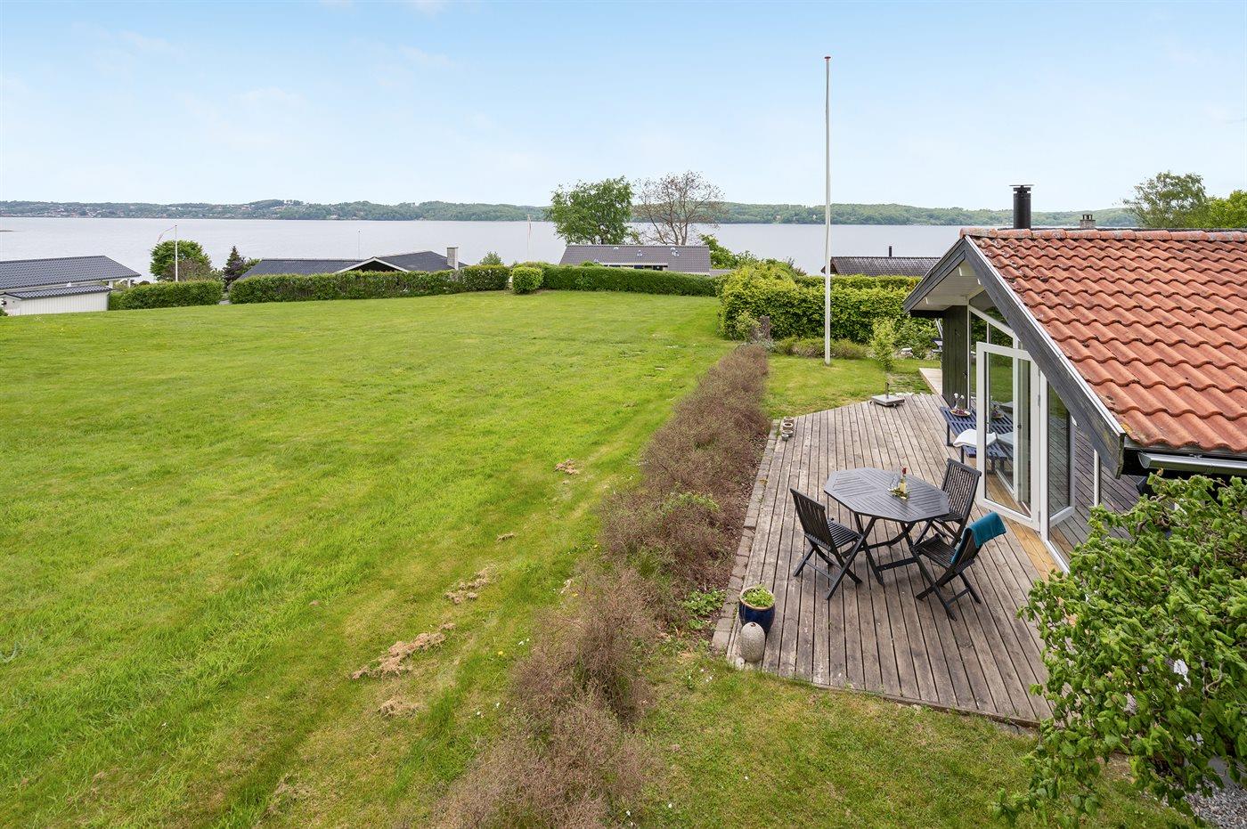 Hyggeligt sommerhus ved Andkær Vig med fjordudsigt, terrasse og roligt naturområde.