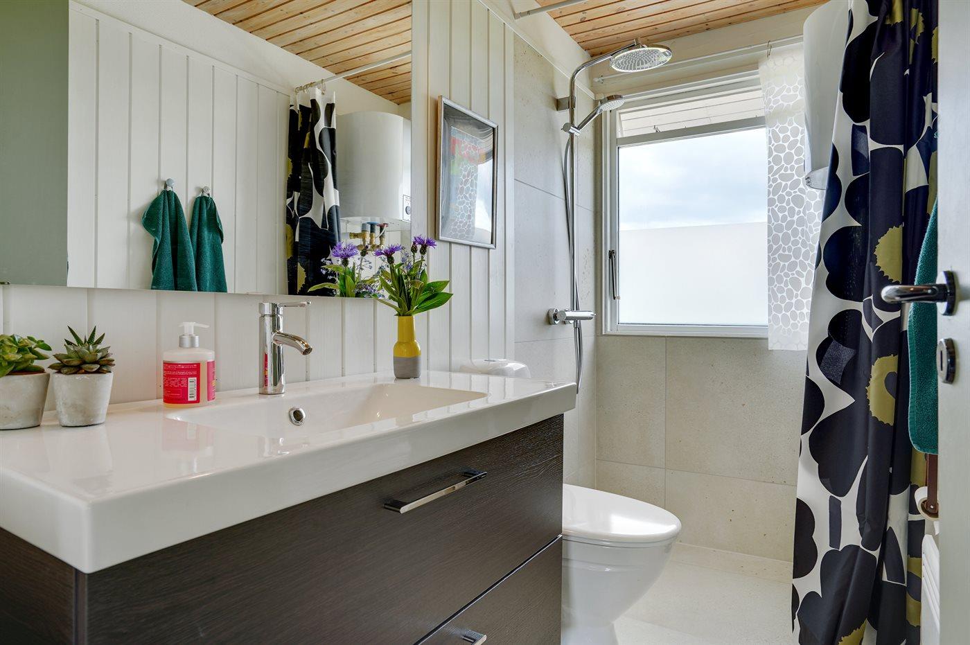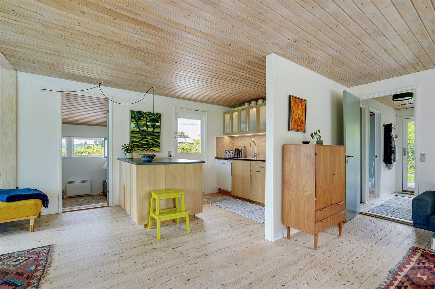 Et virkelig skønt sommerhus med en hyggelig indretning beliggende i et roligt og naturskønt omåde lige ved vandet med udsigt til fjorden fra såvel hus som grund. Huset ligger for enden af blind vej, ud til grønt fællesareal, på en dejlig og delvis lukket grund med skønne terrasser rundt om huset.