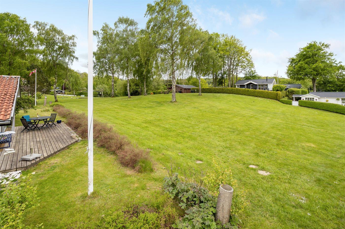 Ferieboligen er beliggende på en 500 m² stor havegrund. Der er 100 m til fjorden. Nærmeste forretning er beliggende i en afstand af 3000 m. Til ferieboligen hører 32 m² terrasseareal. Desuden er der 33 m² overdækket terrasse. Der er redskabsrum. Parkering ved ferieboligen.