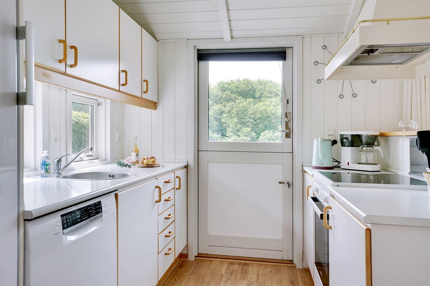Køkkenet er udstyret med 1 køleskab. Der er 4 keramiske kogeplader, varmluftovn, mikrobølgeovn samt opvaskemaskine.