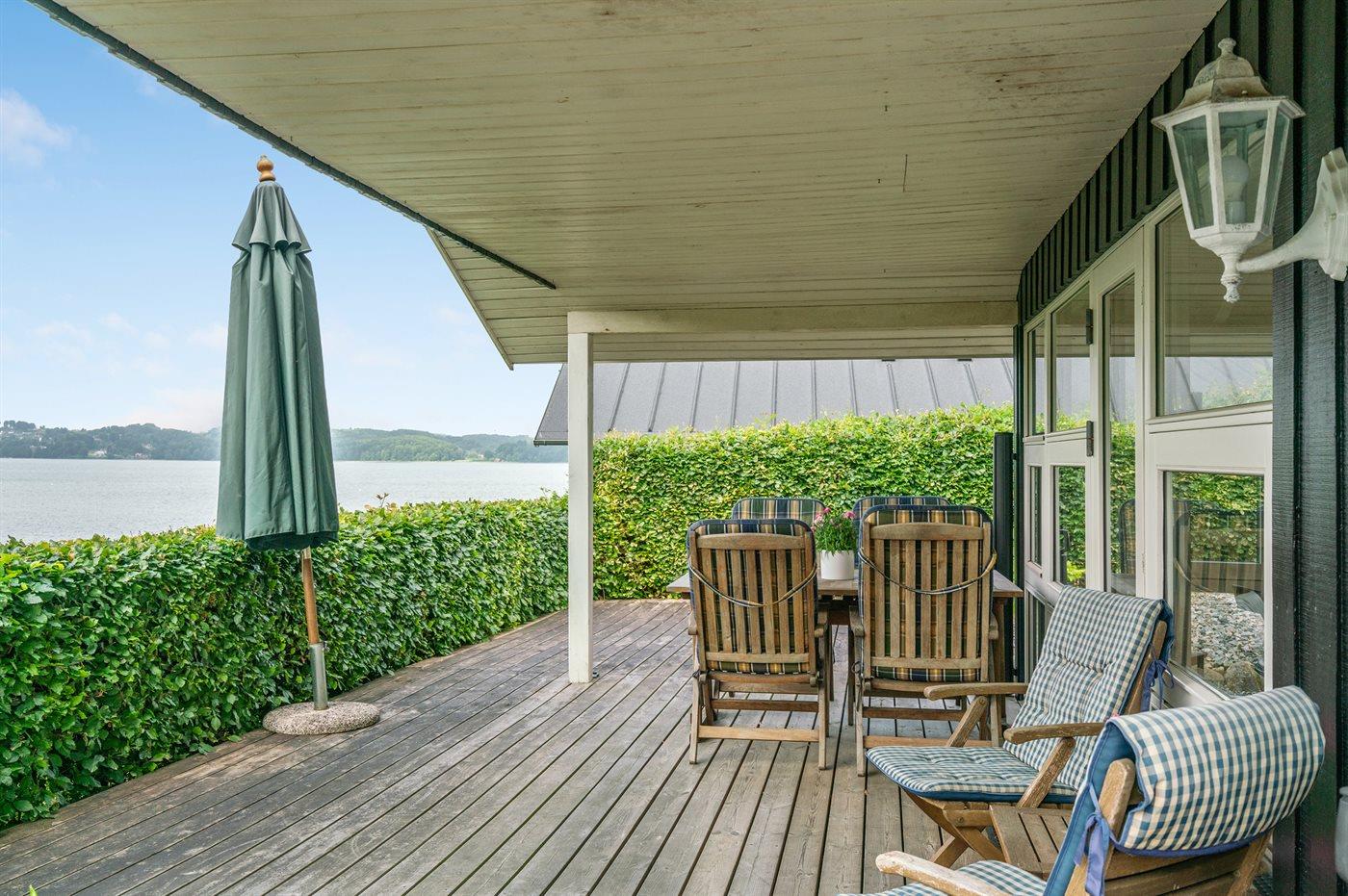 Ferieboligen er beliggende på en 719 m² stor naturgrund. Der er 100 m til fjorden. Der er en badebro i nærheden. Nærmeste forretning er beliggende i en afstand af 5000 m. Der er en golfbane i en afstand af 4600 m. Til ferieboligen hører 60 m² terrasseareal. Desuden er der 10 m² overdækket terrasse. Grill til rådighed. Parkering ved ferieboligen.