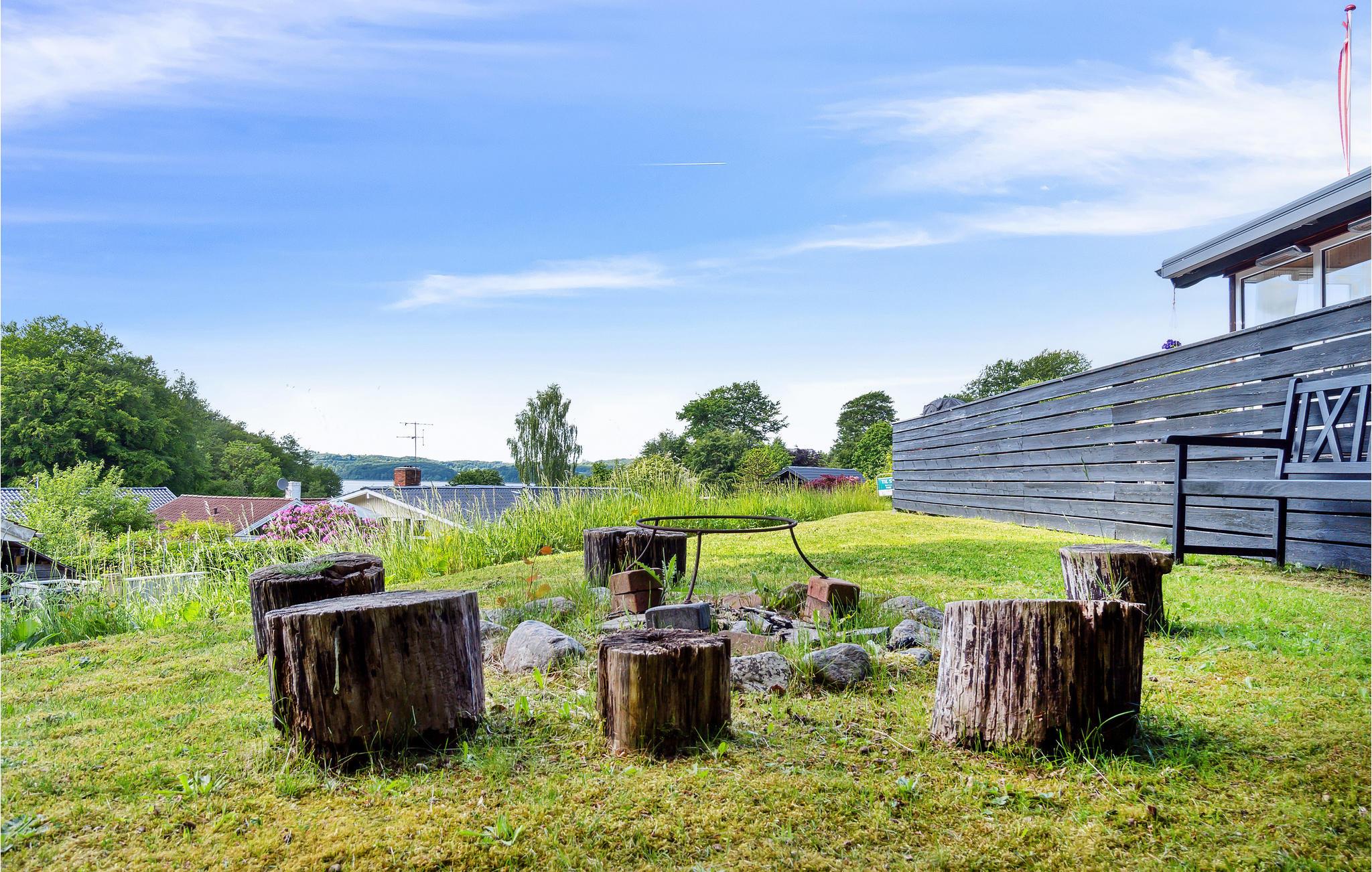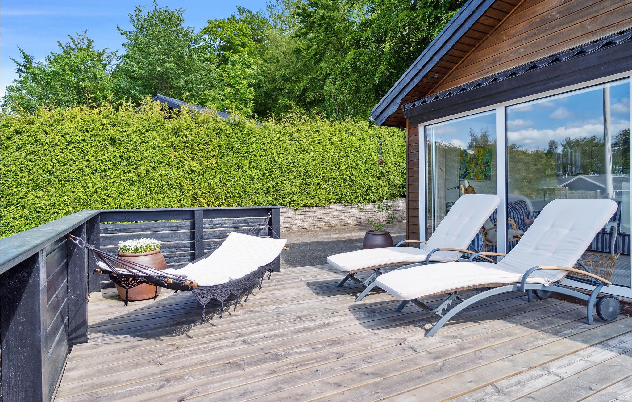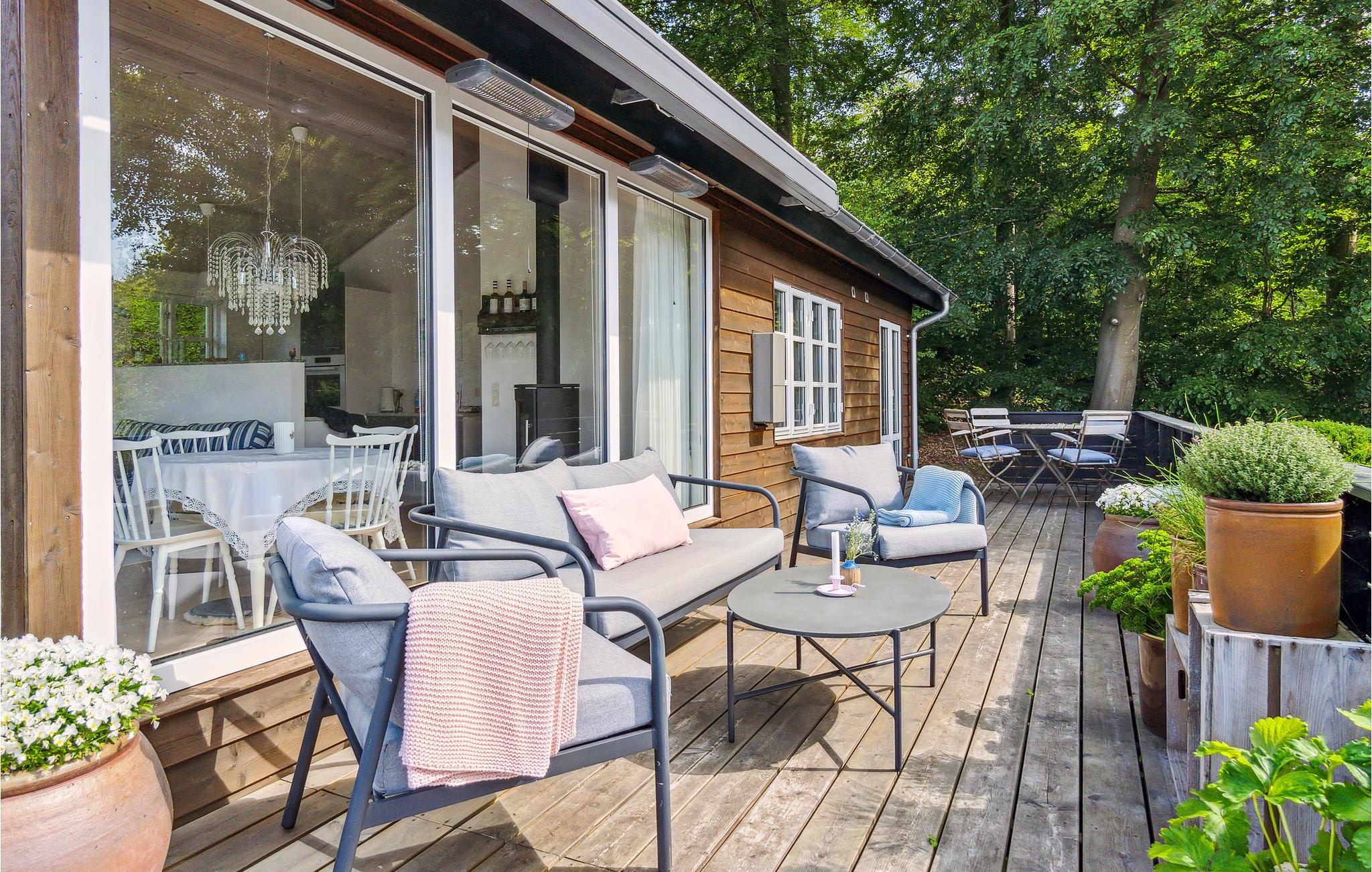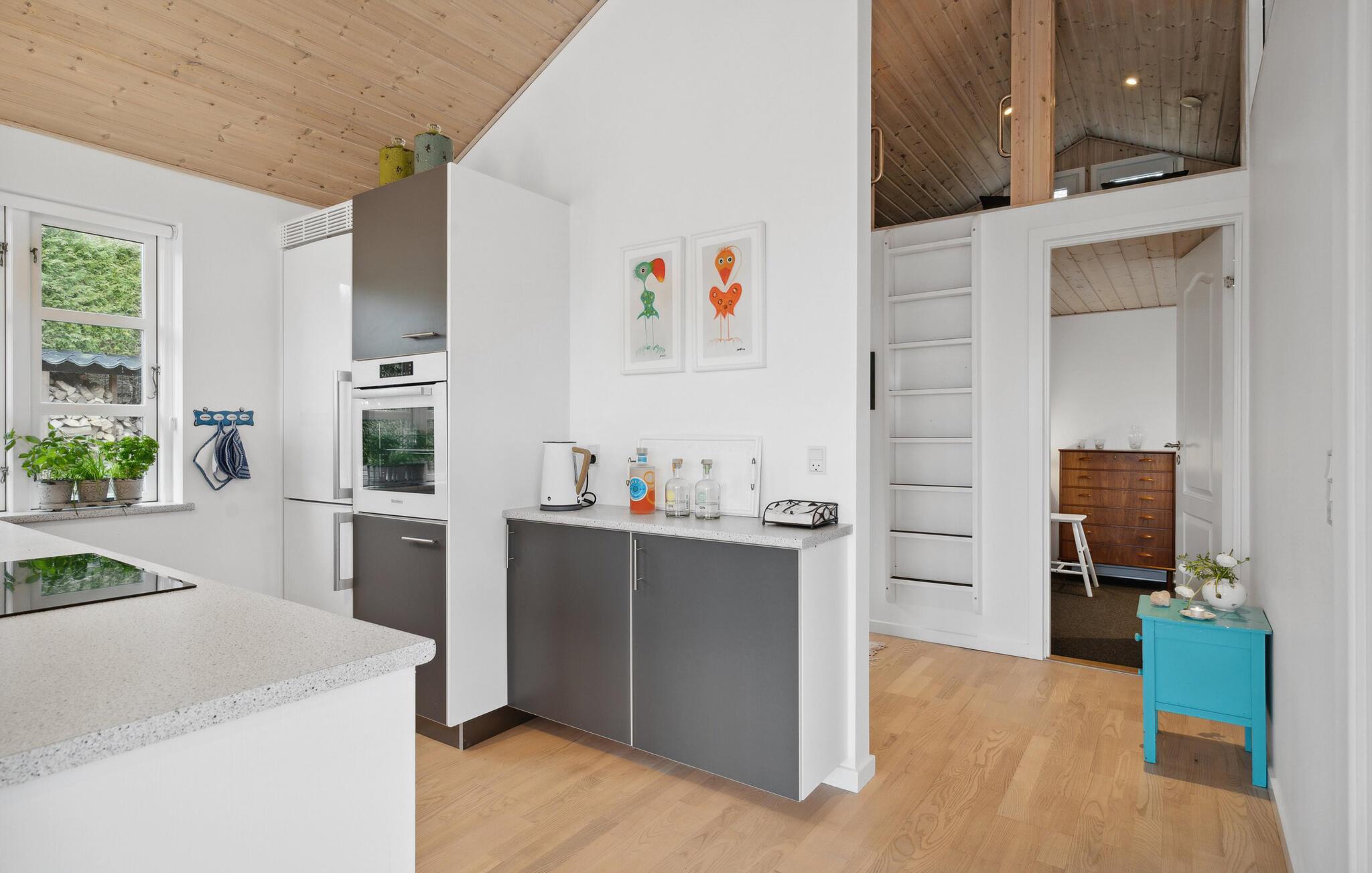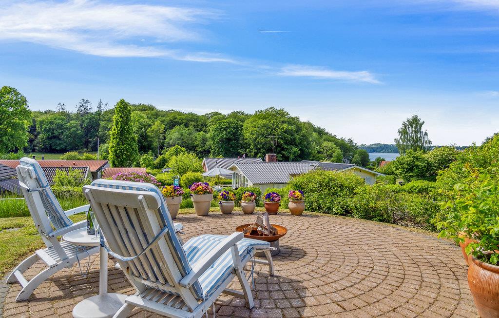 Senere kan I samles til lækker grillmad på den store terrasse, spille kort og nyde udsigten. For børnene er der kun 50 meter til det store grønne fælles område, hvor de kan boltre sig på legepladsen eller boldbanen. Når mørket falder på, og stjernerne langsomt lyser aftenhimlen op, kan I bage snobrød eller riste skumfiduser over ilden på bålpladsen. Næste morgen kan I tage jeres strandtaske og gå til Andkær Vigs sandstrand, hvor I kan bade eller hygge jer med en picnic med udsigt over fjorden.