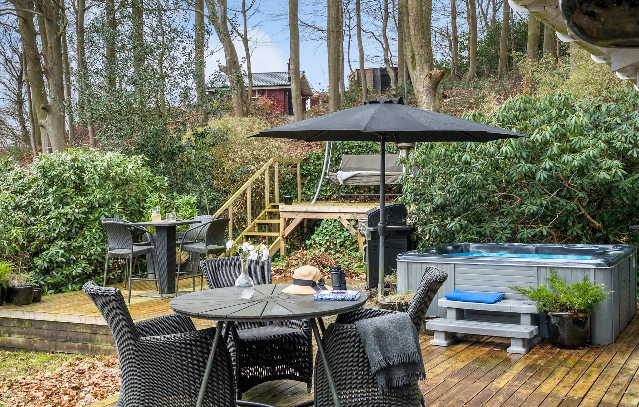 Til huset hører flere terrasseområder, så det handler egentlig bare om at finde jeres yndlingsspot i solen eller skyggen. Sæt en god podcast i ørerne, løs en svær krydsogtværs og nyd udsigten, inden I runder aftenen af i spabadet under stjernerne.