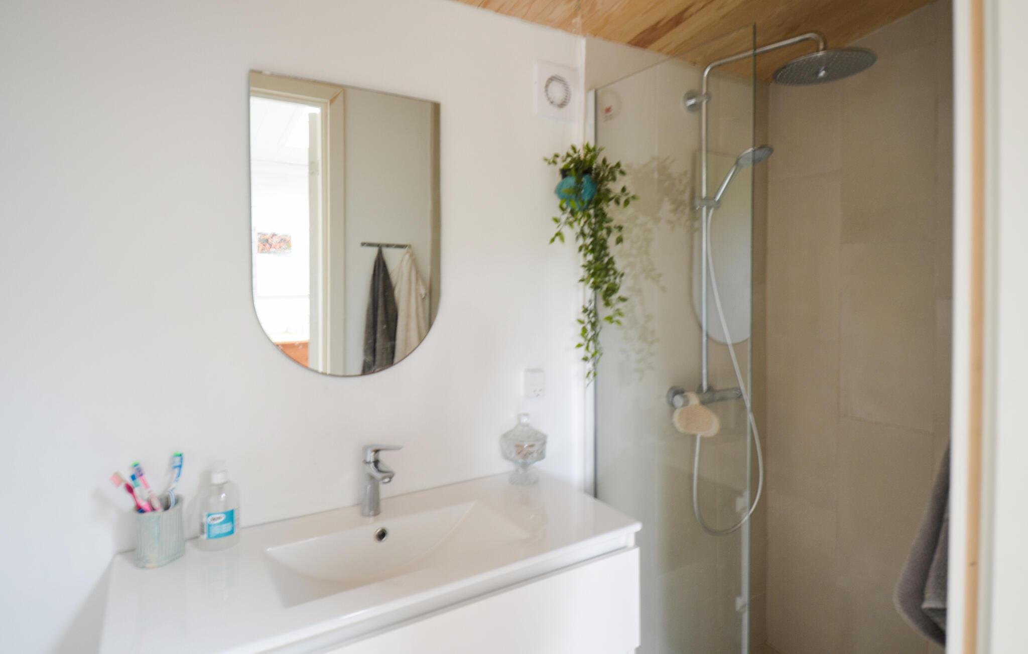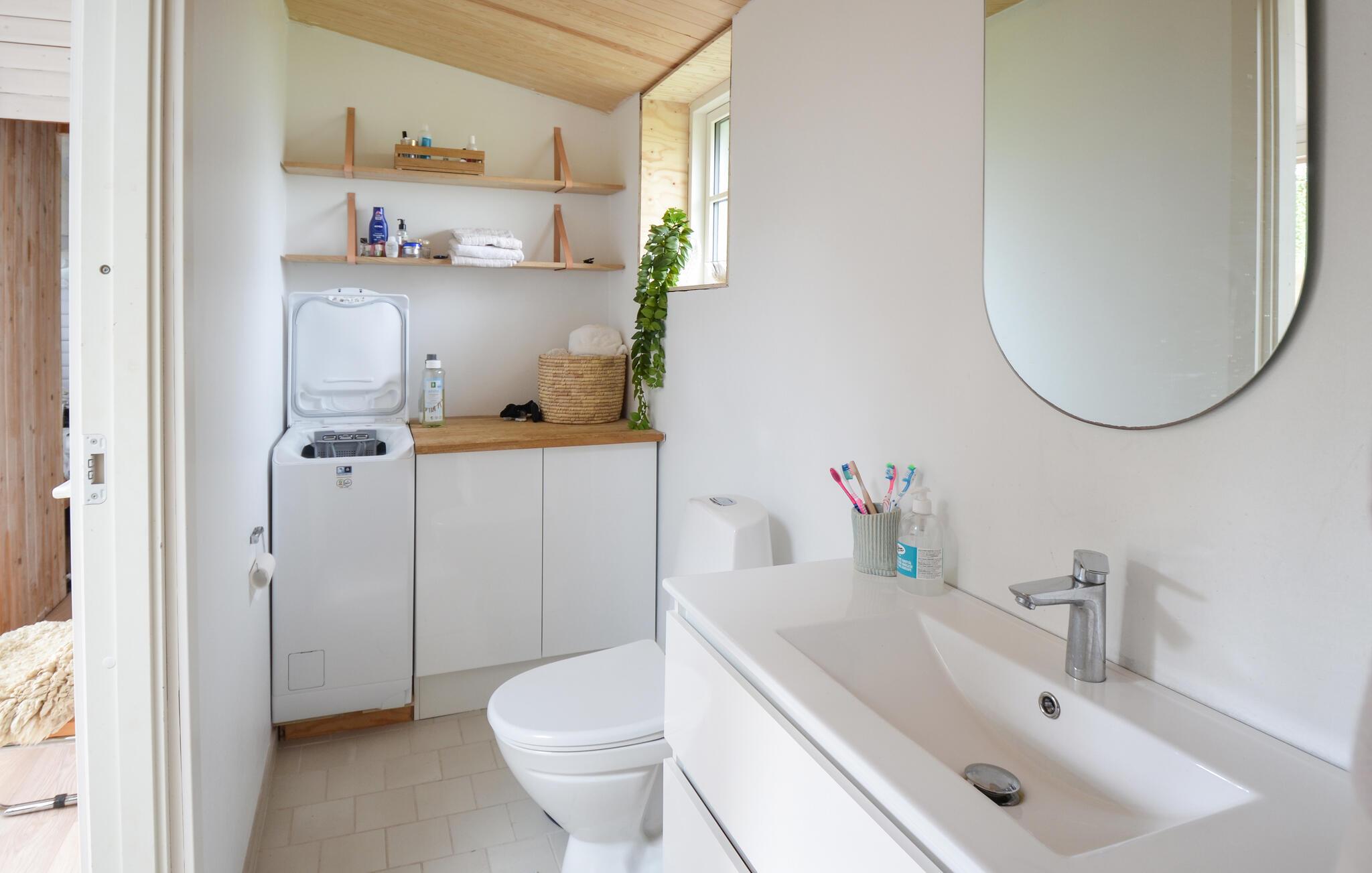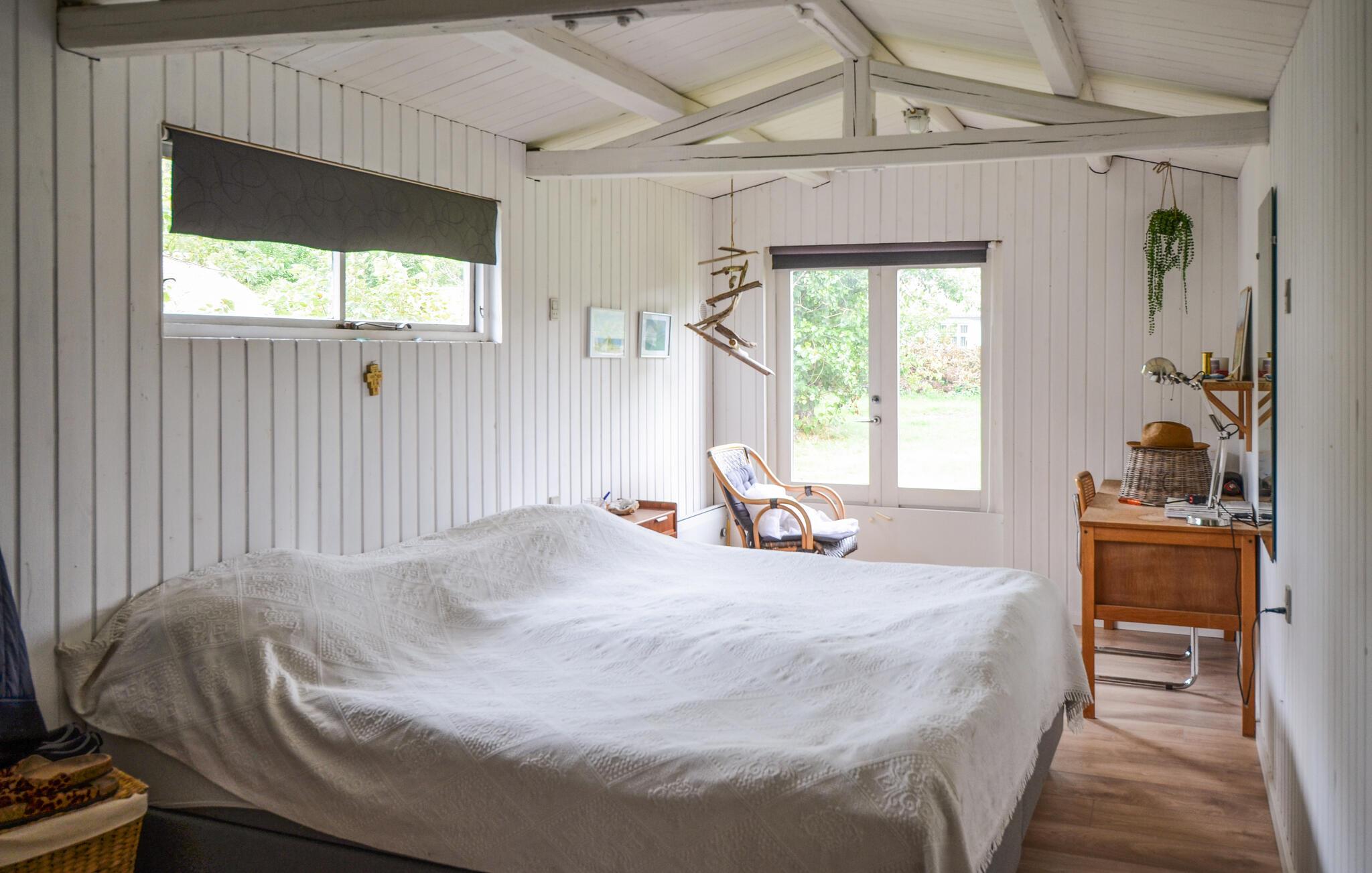Det skønne sommerhus byder indenfor med lyse farver og en hyggelig atmosfære. Hele familien vil elske en ferie her. Den store træterrasse bliver et naturligt samlingspunkt på de varmere dage. Tilbring mange afslappende timer i solen eller grill jeres yndlingsretter og spis udendørs.
