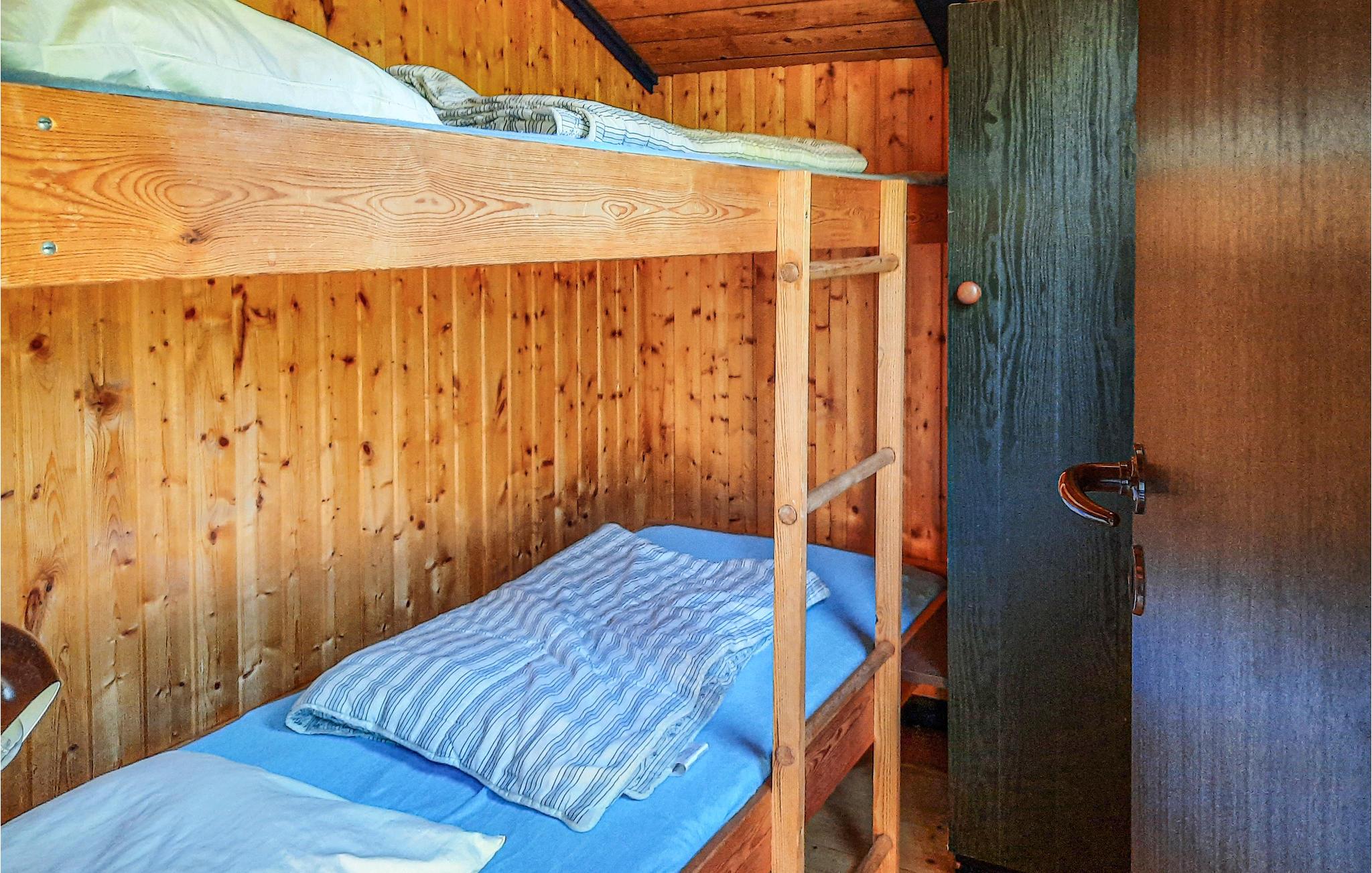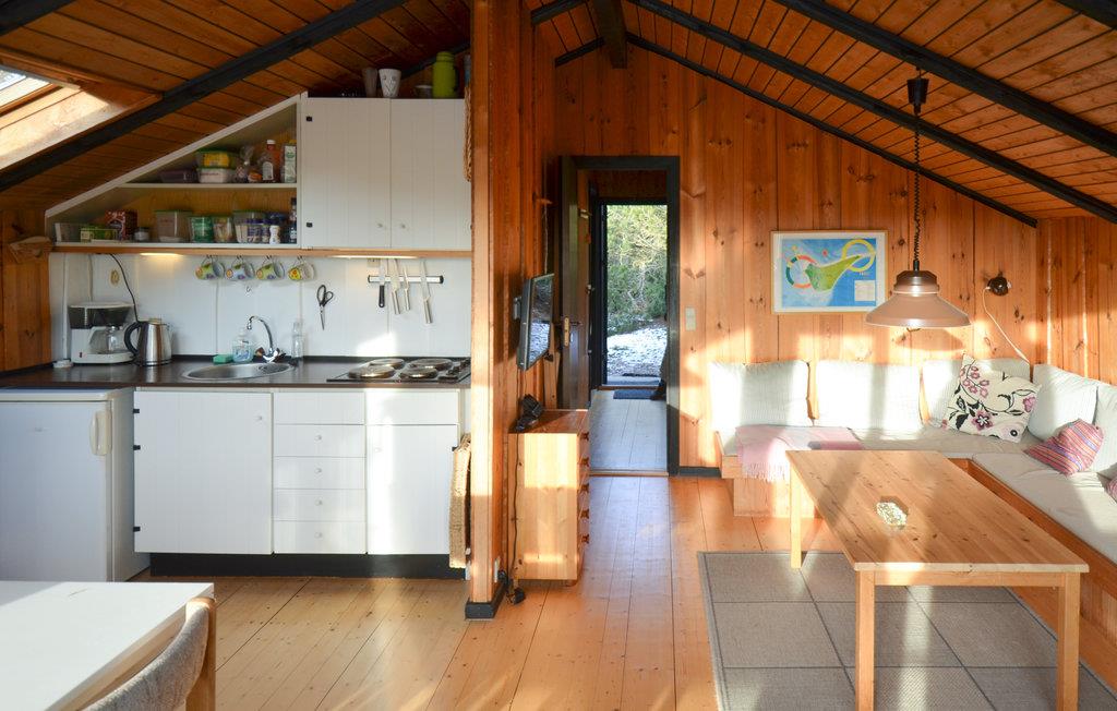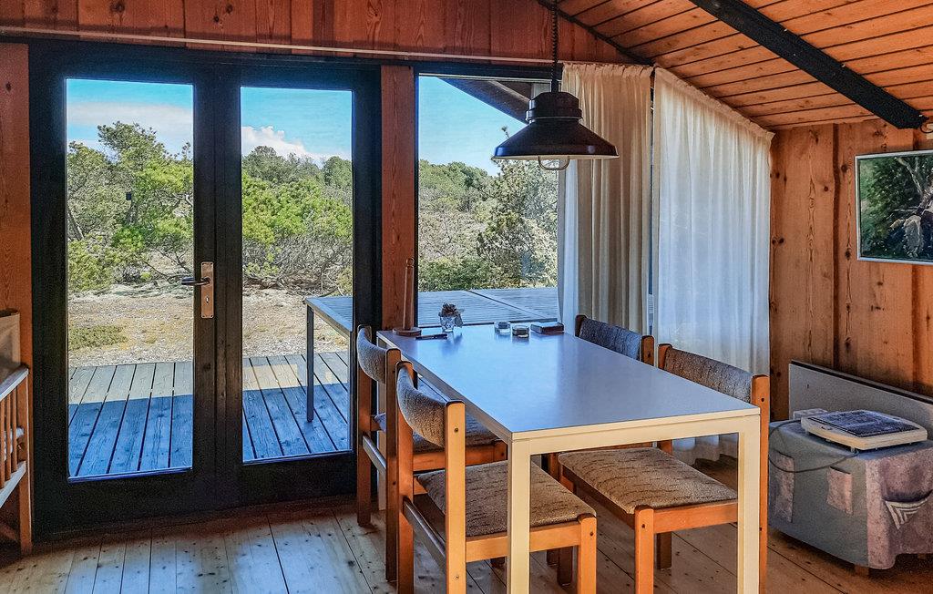 Dette sommerhus til 4 personer venter sine gæster i smuk natur og kun en kort gåtur fra havet. Nyd ferien med familien og find jer godt til rette i de træbeklædte værelser når som helst på året. Her har I 2 soveværelser til rådighed. Sæt jer ned på de bløde sofaer i stuen, vinduesfronten giver jer en vidunderlig udsigt over naturen.